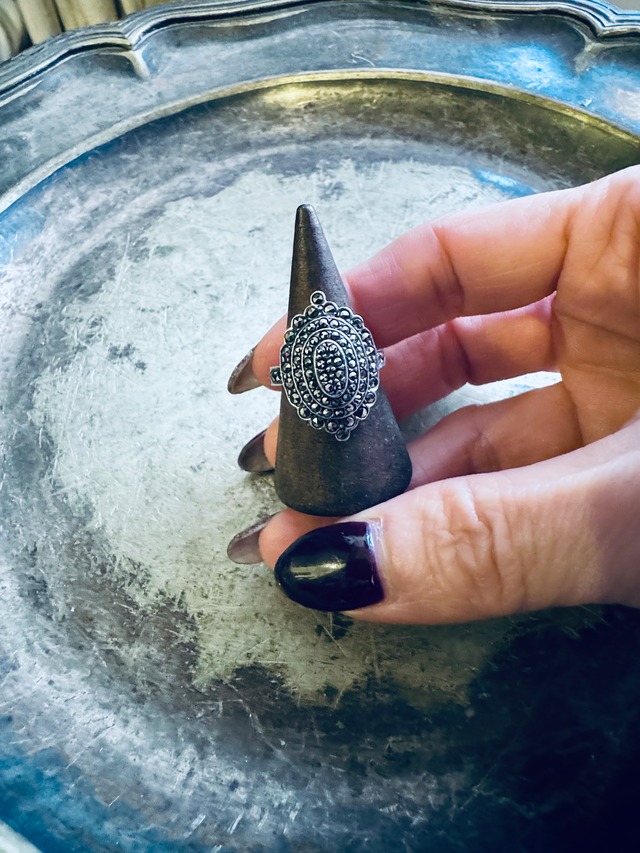 ⚫︎PRODUCT 60s フレンチ ヴィンテージ シルバー925 + マーカサイト リング マーカサイトは、18世紀にヨーロッパでダイヤモンドの代用品として使用された鉱石です。 コスチュームジュエリーとして愛用されてきた歴史があり、現在でも人気のある石です。 デザイン性の高いシャープな形状で、指にちょうど良い大きさです。 キラッとした輝きが手元を綺麗に見せてくれます。 ⚫︎COLOR シルバー ⚫︎MATERIAL シルバー925 刻印あり, マーカサイト ⚫︎SIZE サイズ : 15号 トップ 縦 : 約1.8cm 実寸のため若干の誤差はご了承ください。 ⚫︎PRICE ¥15,000 + tax ⚫︎CONDITION vintage condition マーカサイトが一粒取れている箇所がございます。 ⚫︎発送 レターパック ライト お買い上げ金額¥25,000以上で送料無料 梱包サイズにより最もお安く発送できる方法を設定しております。 ----- ✳︎ 当店は一点物のVintage、Used商品を中心とした商品を販売しております。 購入後の返品・交換は受け付けておりません。 Vintage、Usedは十分に検品しておりますが、記載の無い微細な汚れやダメージ等ある場合がございます。 Vintage、Used商品をご理解のうえで、よろしくお願いいたします。 -----