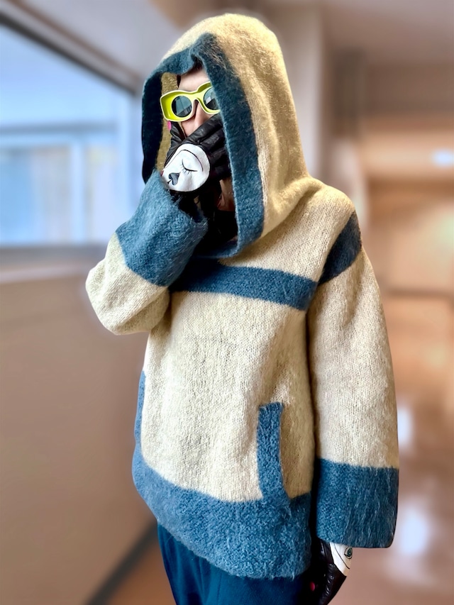 Euro Handmade vintage pullover Hoodie Mohair Knit