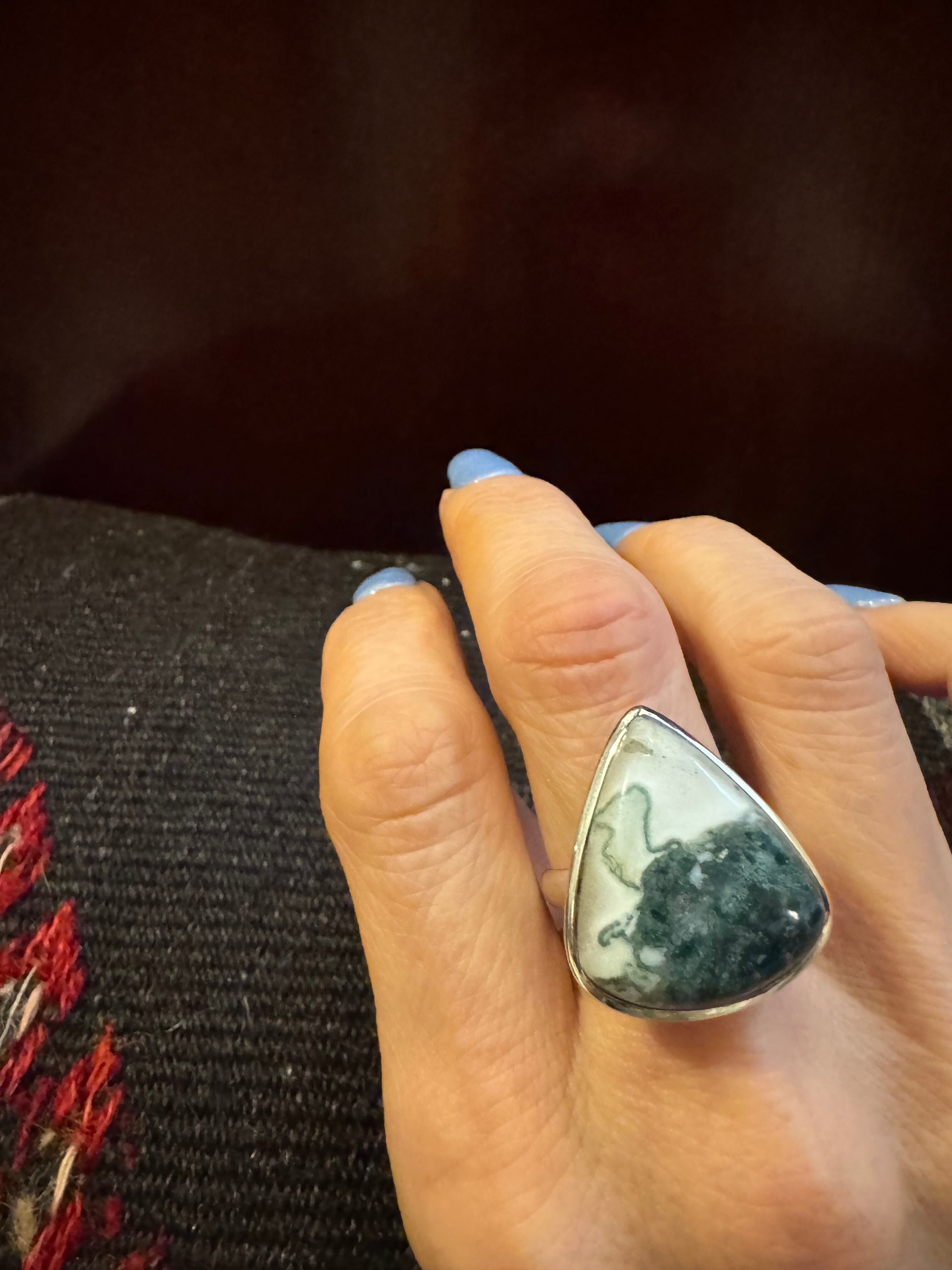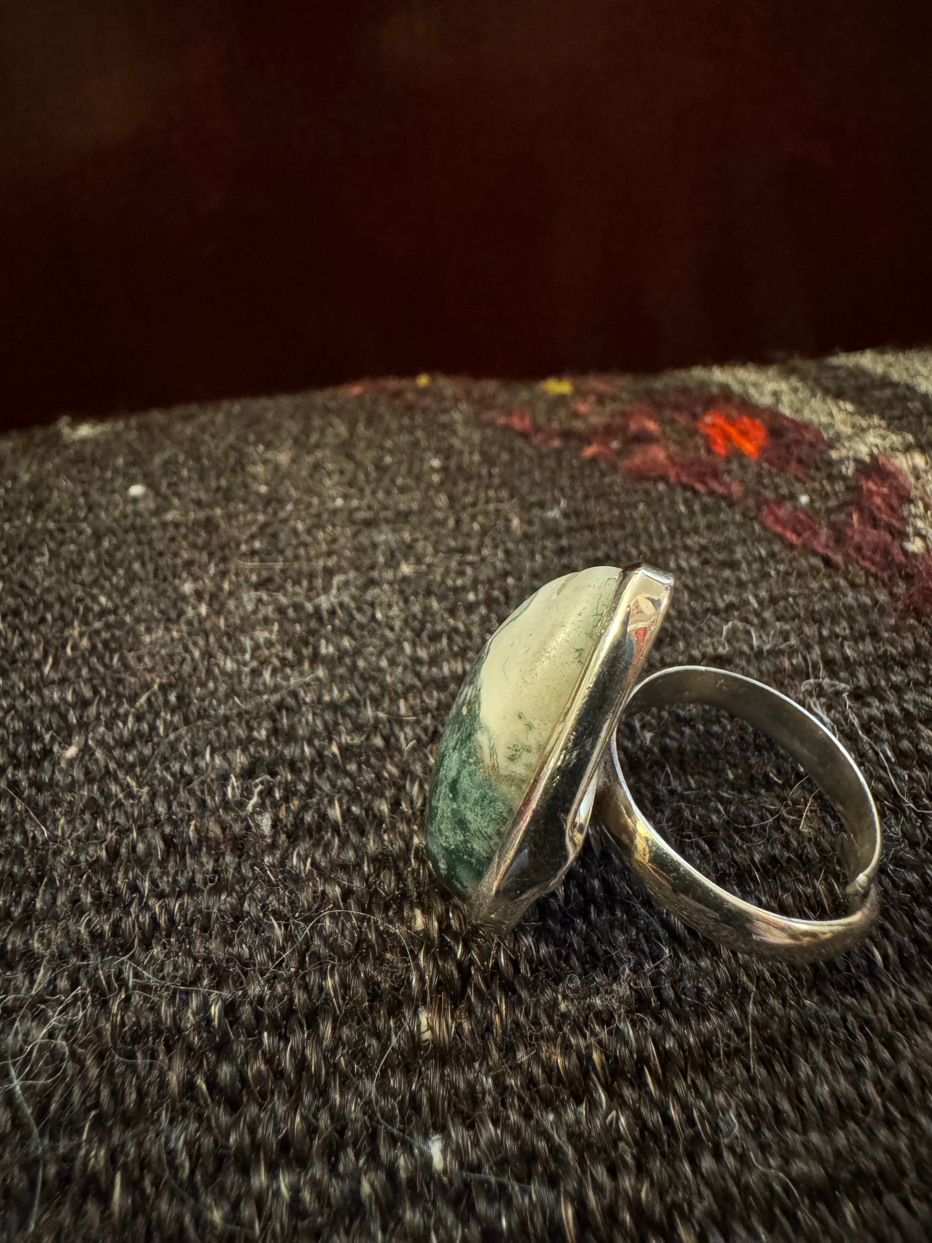 vintage 925silver × jasper triangle Big stone ring