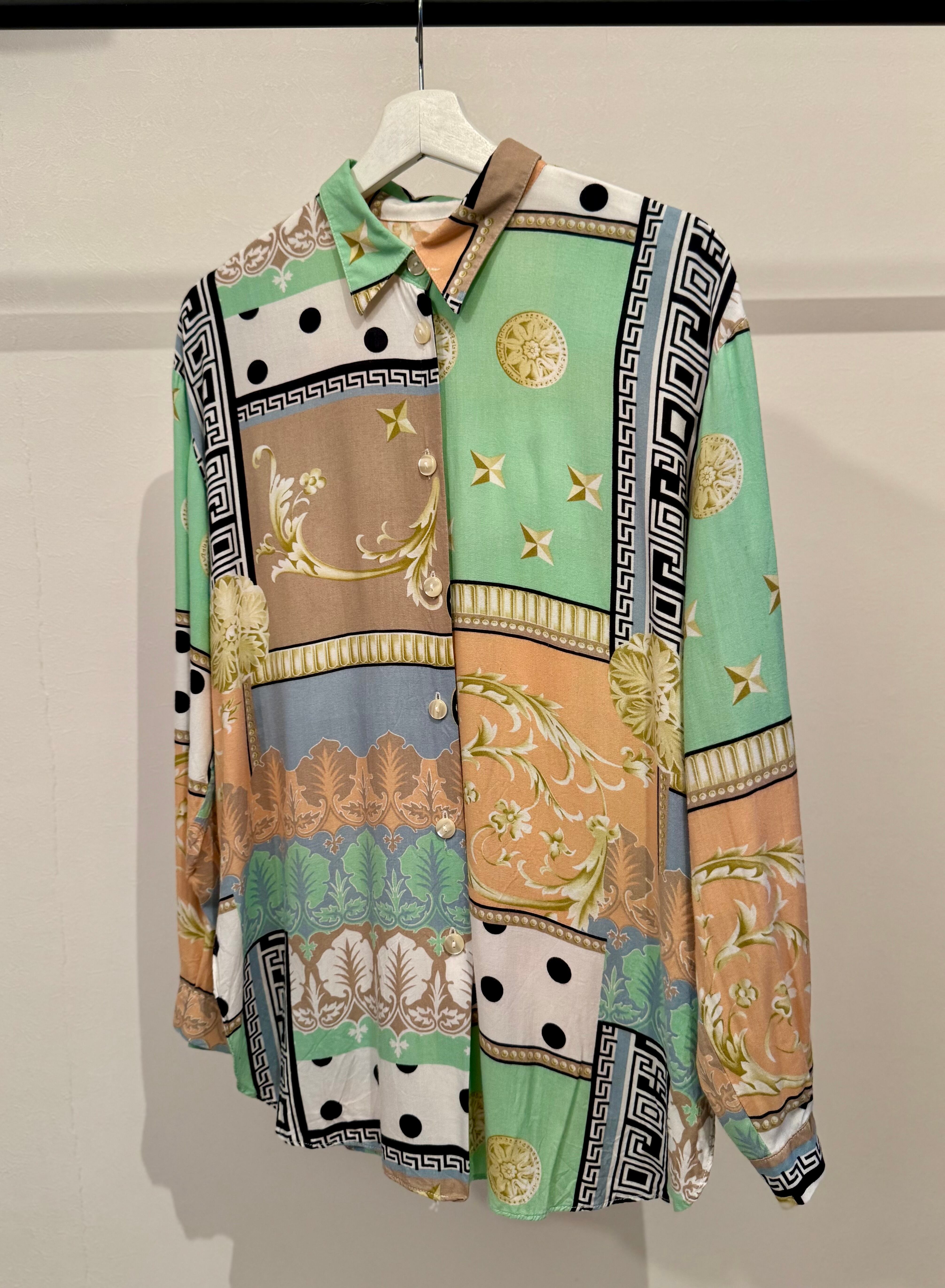 70s Italy vintage SILK scarf print blouse
