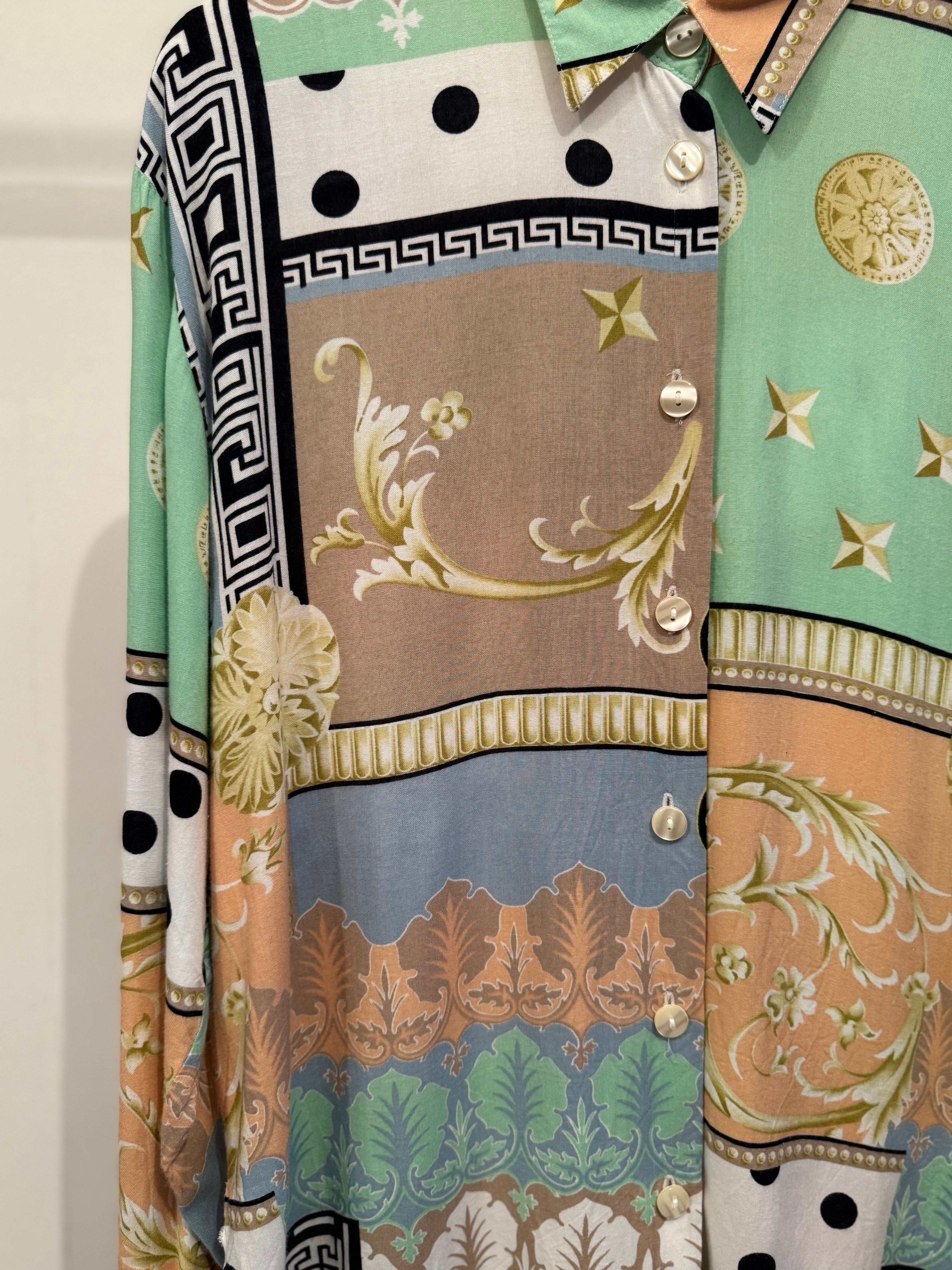 70s Italy vintage SILK  scarf print blouse