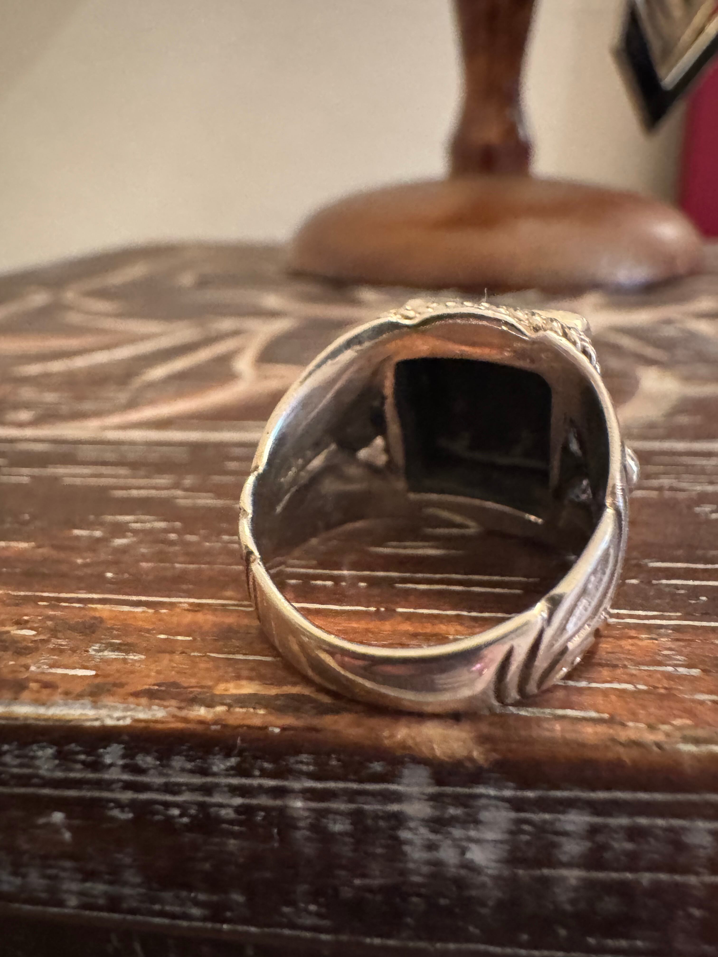 vintage silver 925 × square onyx ring