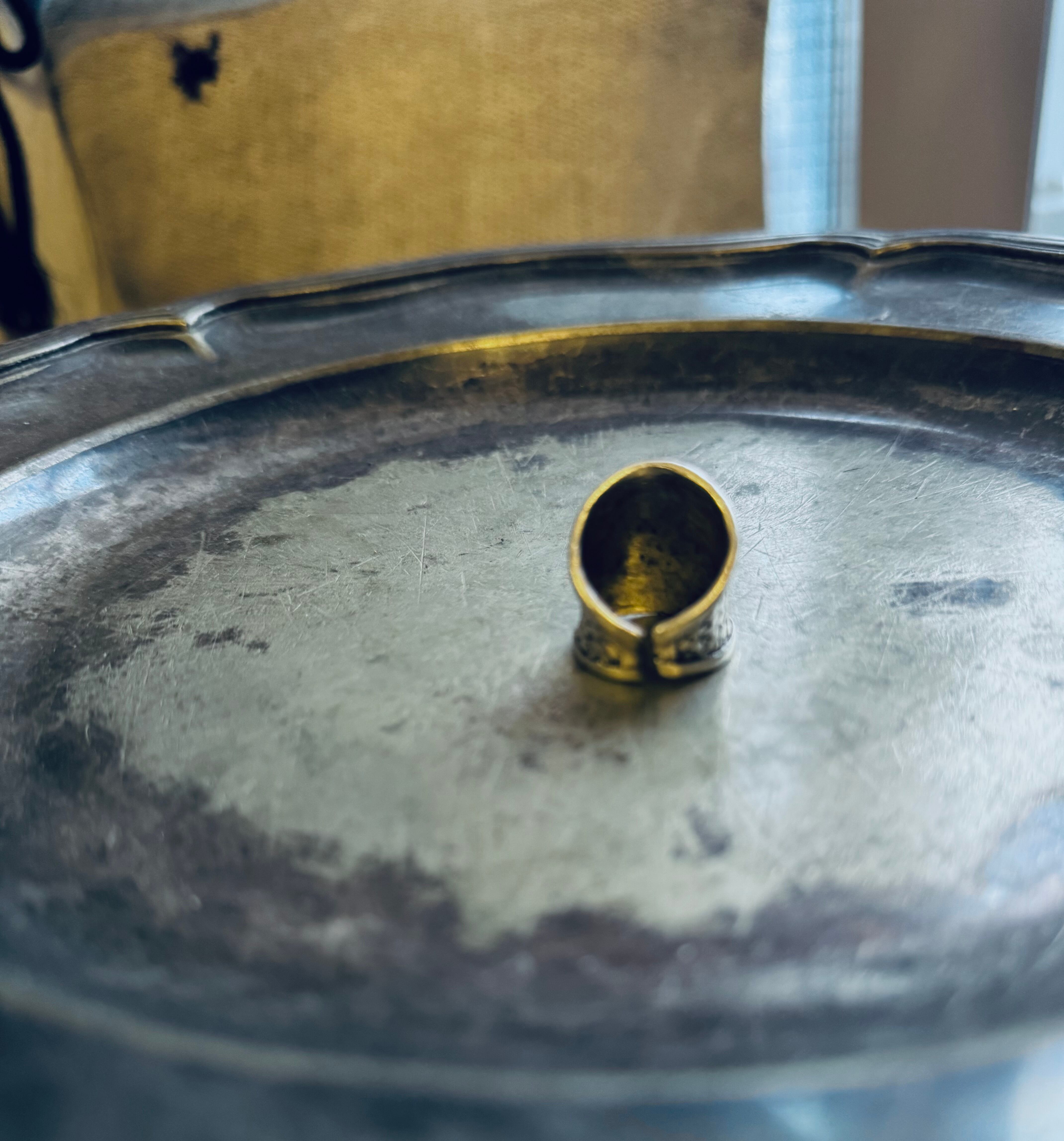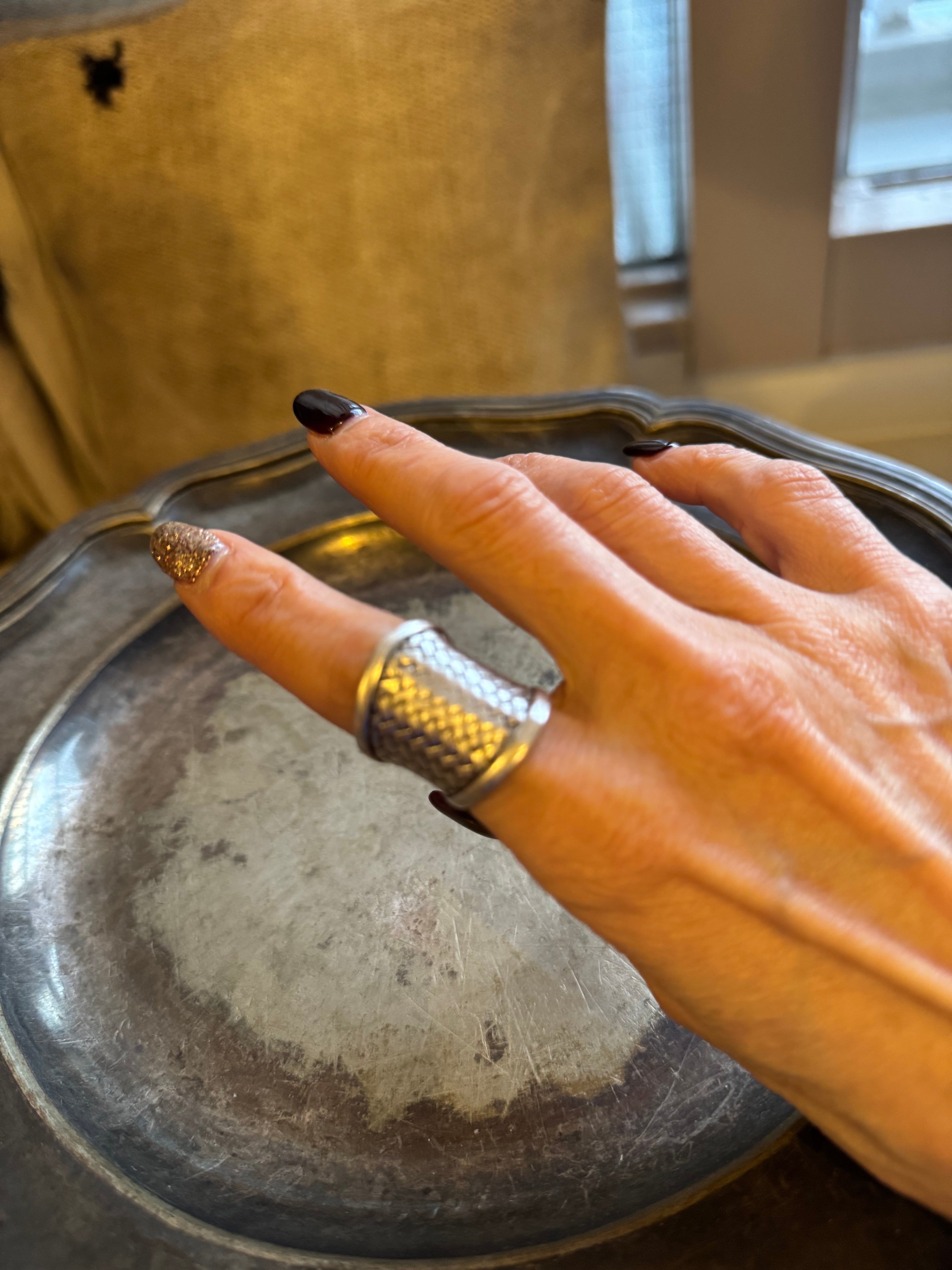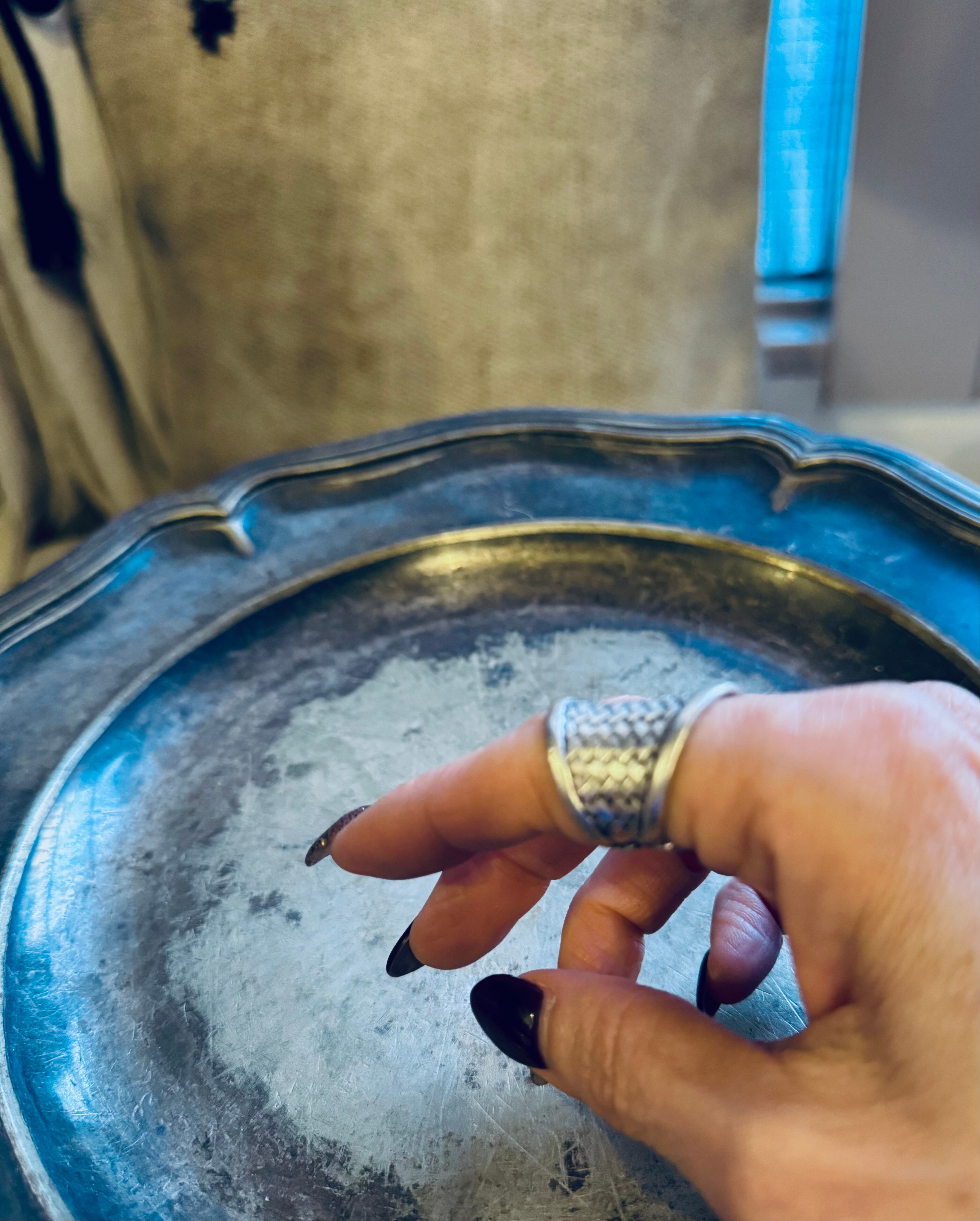 German vintage silver color basket wide ring