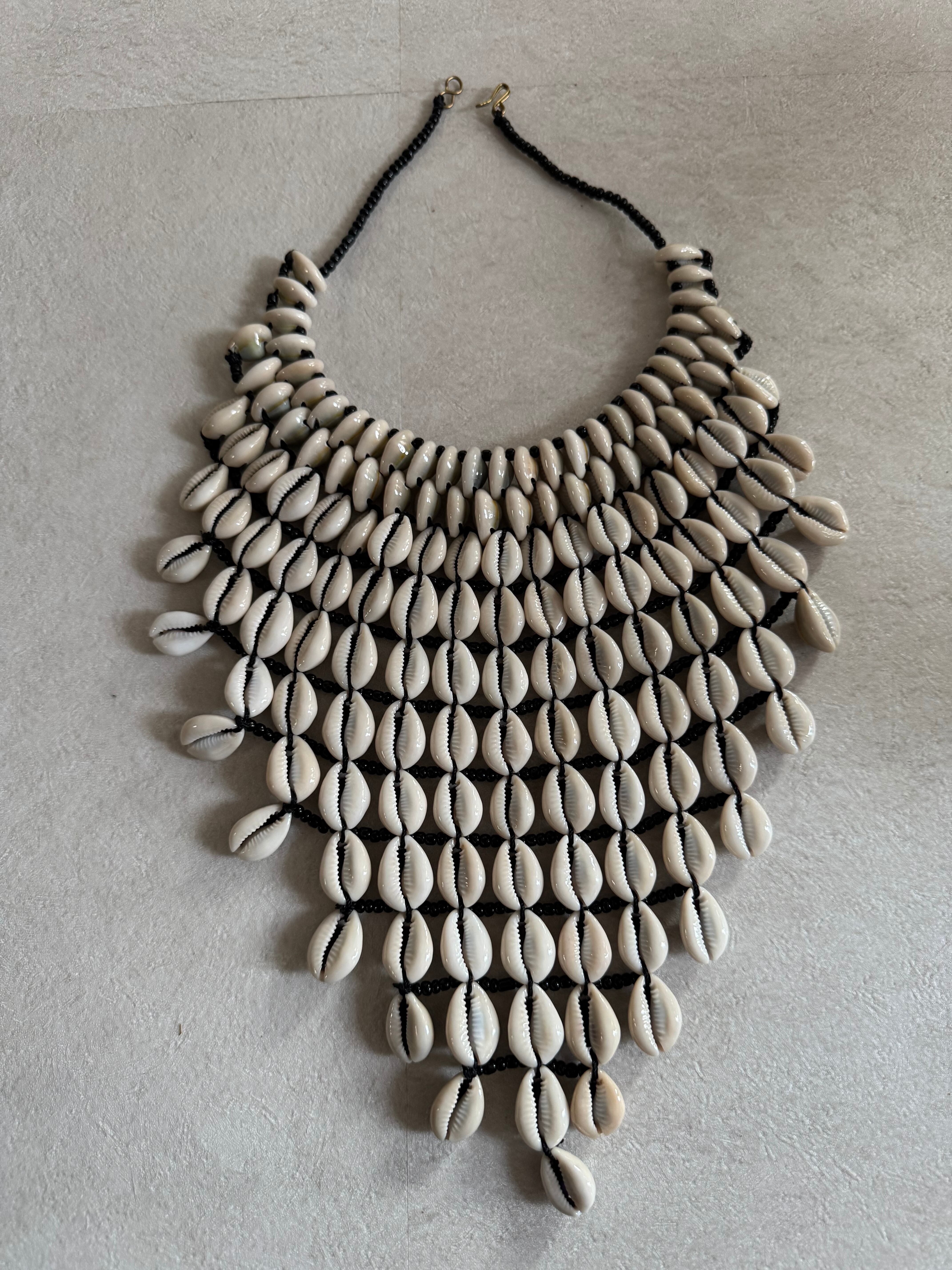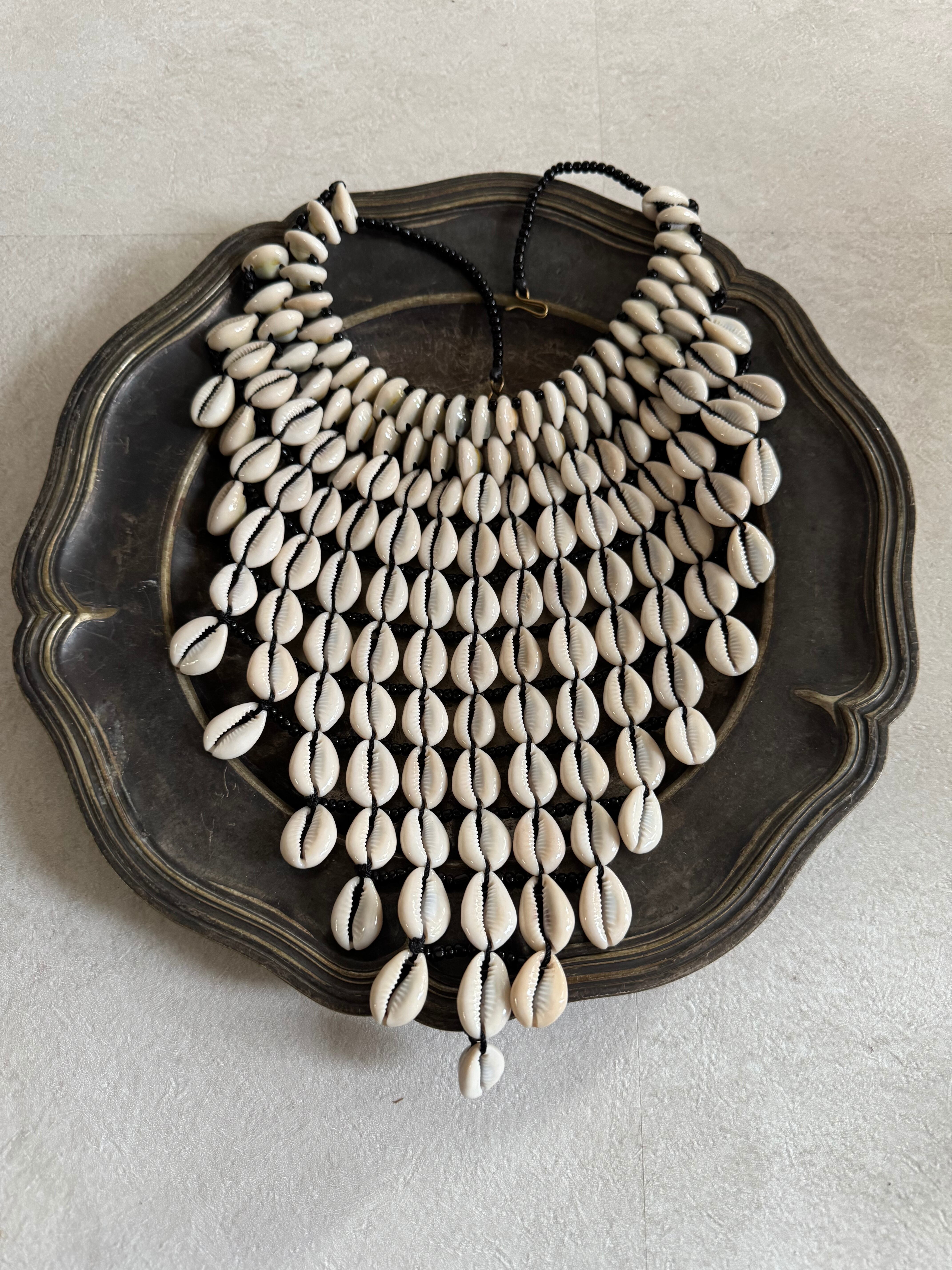 大粒で形の美しいリアル シェルだけを使用したハンドメイドのビブ ネックレスです。