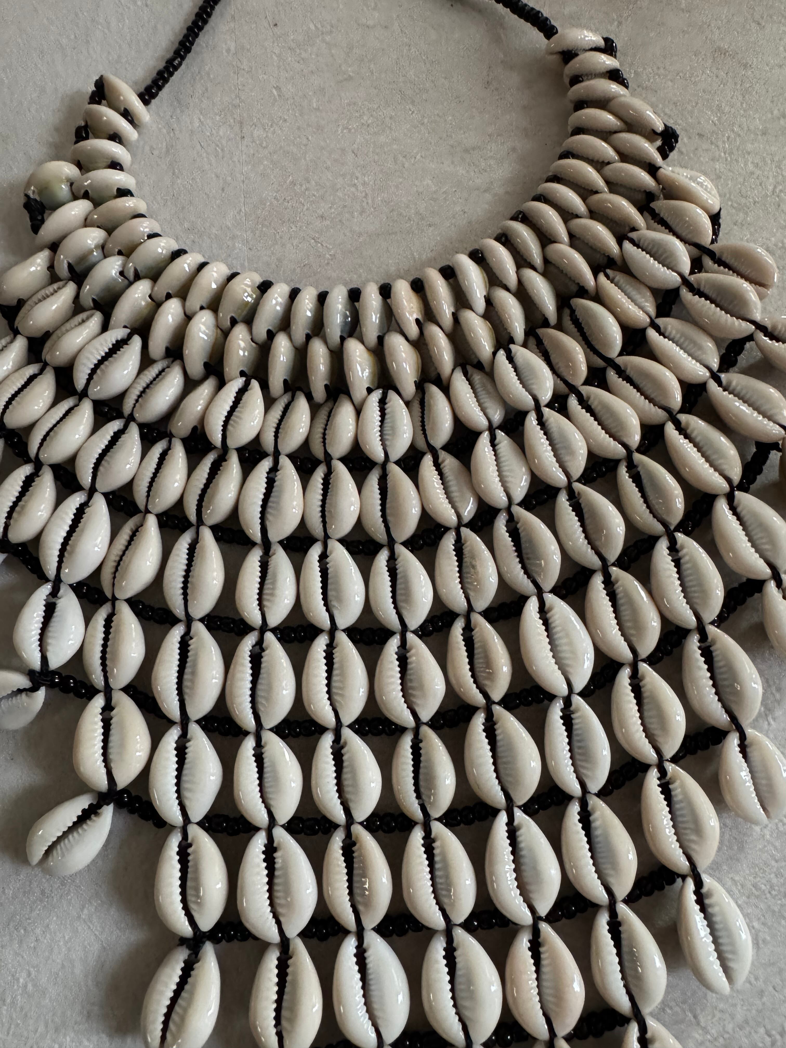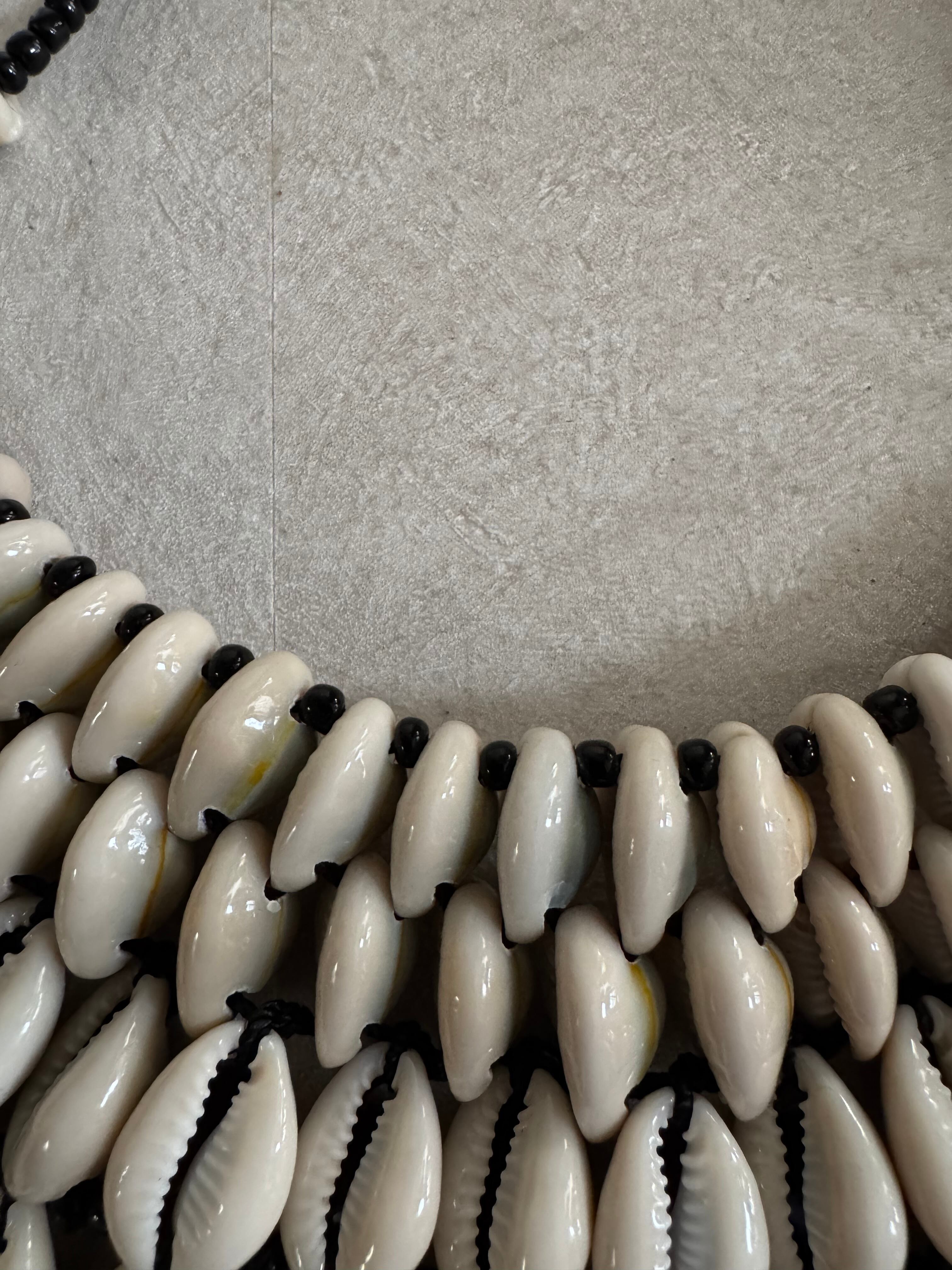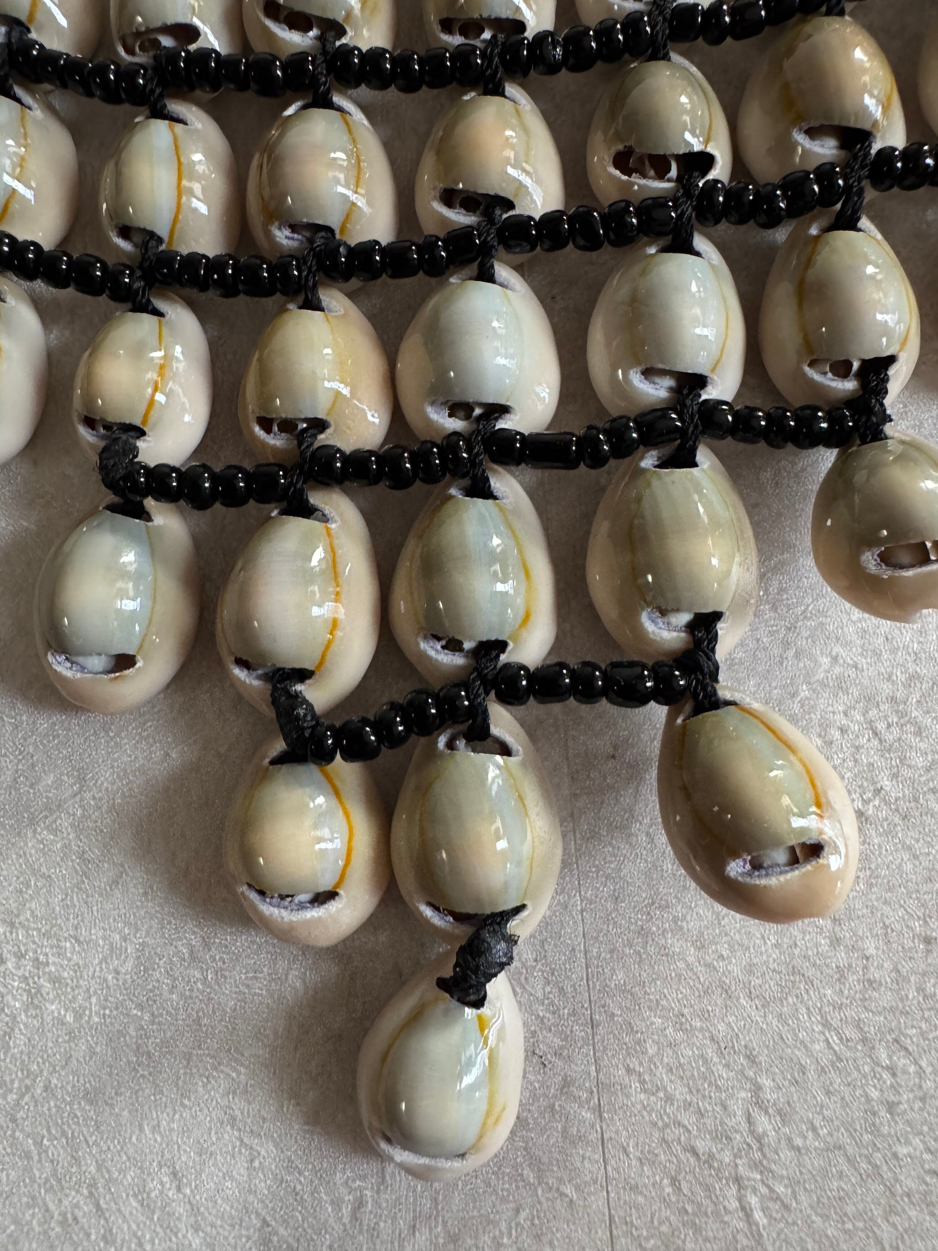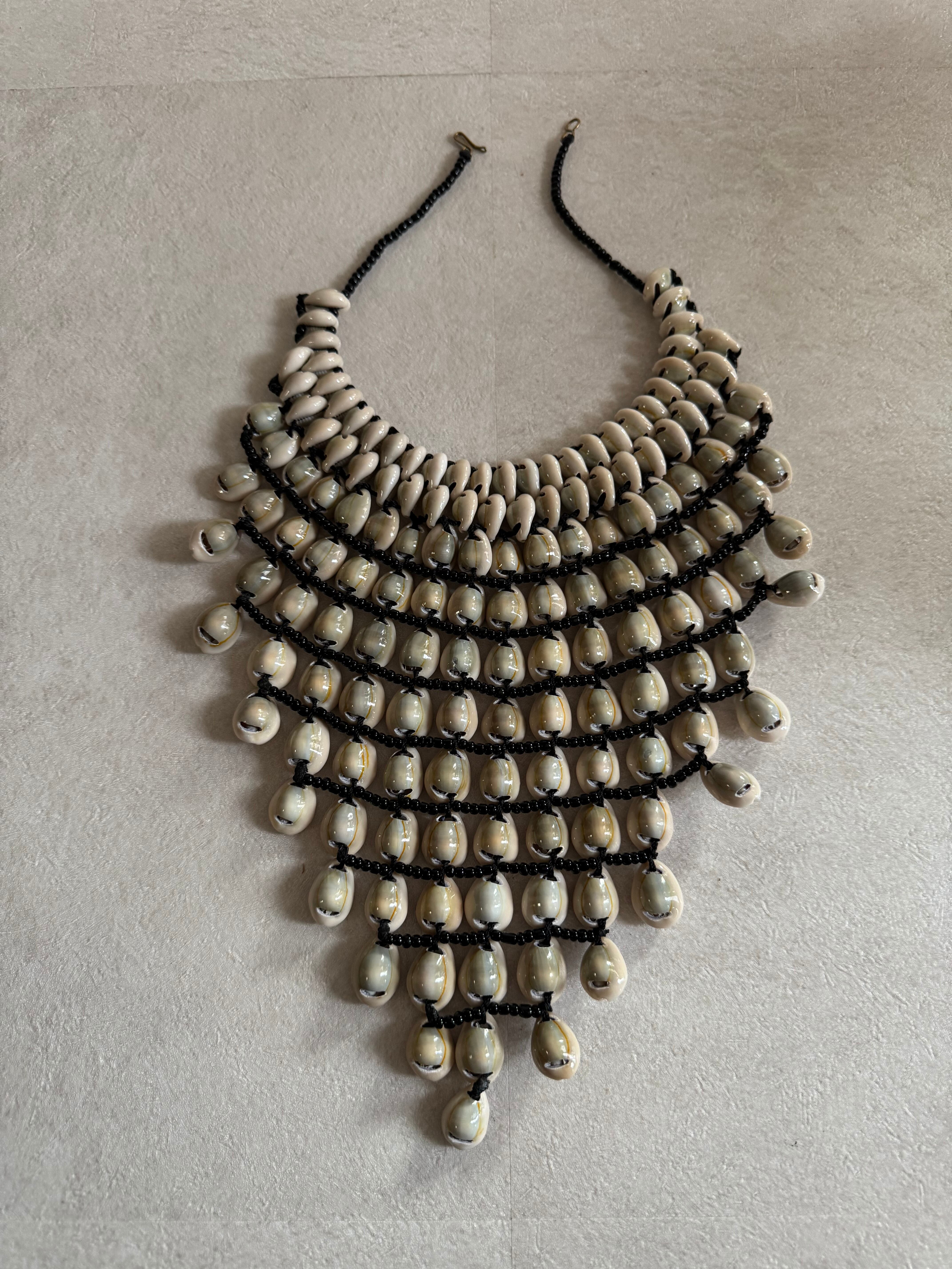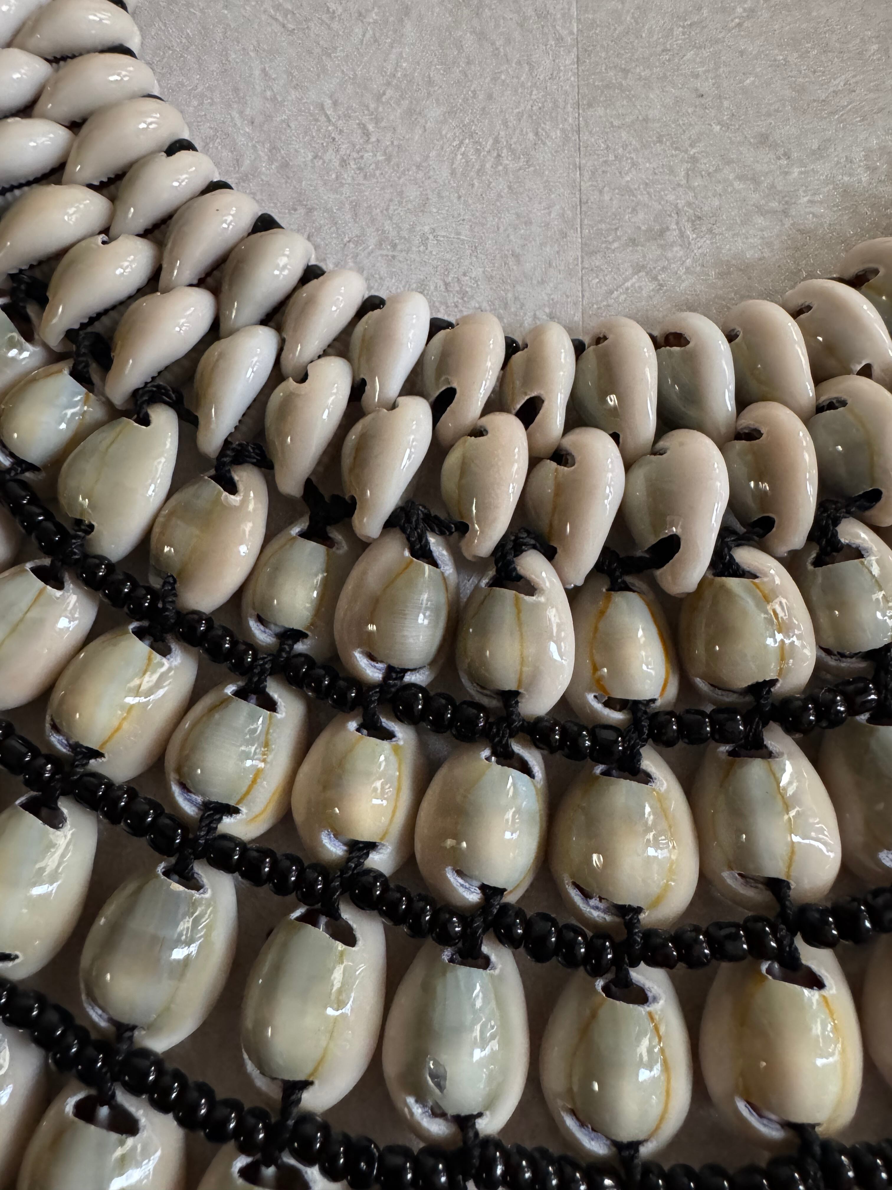 リアル シェルにホールを施し、かなりの数を繋ぎ合わせた見事なハンドクラフトのネックレス
