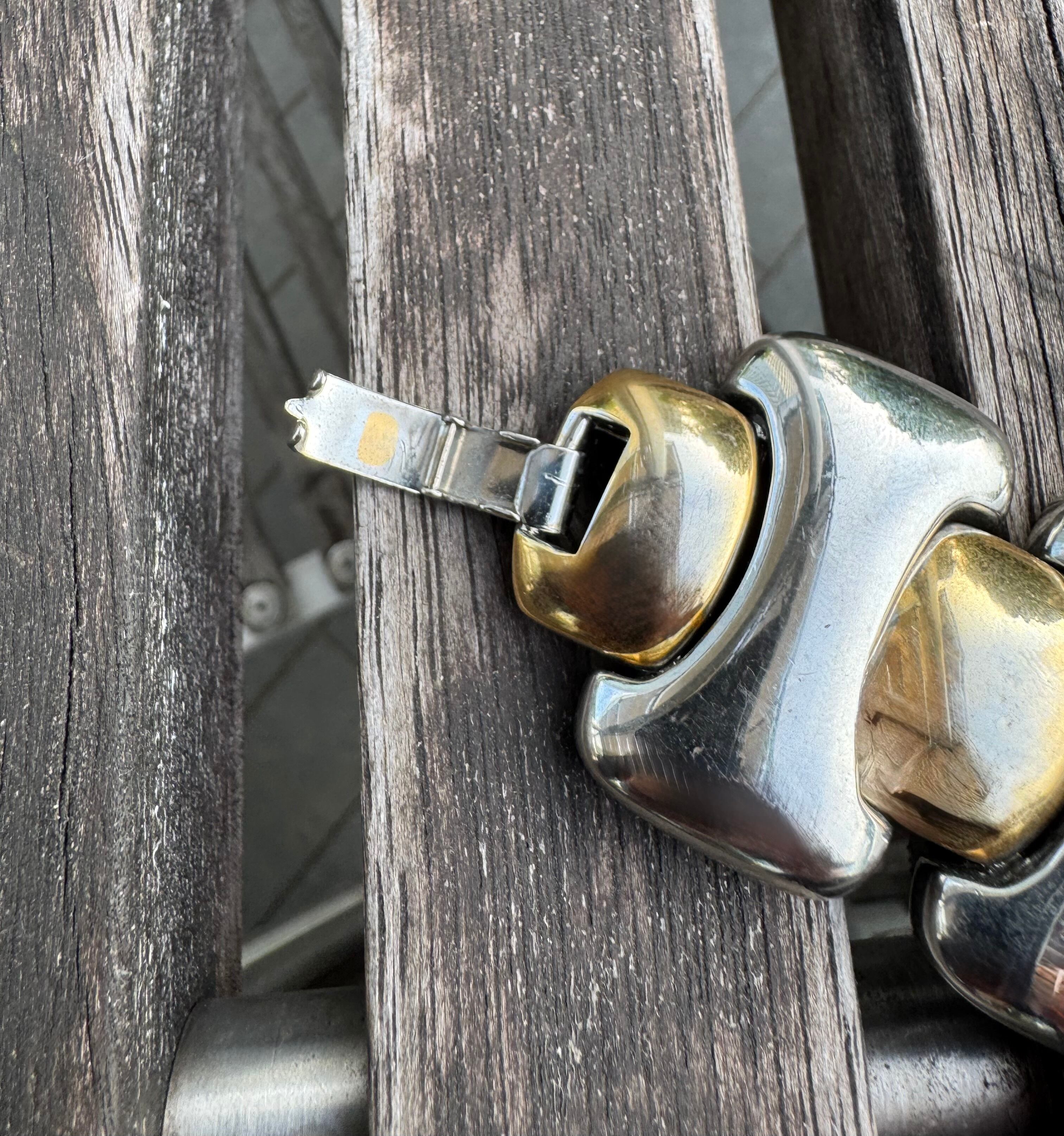ゴールド & シルバー なので、リング コーデも楽しめて、一本で存在感があります。