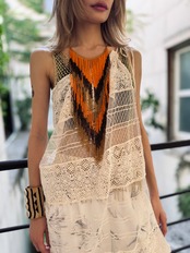 ハンドメイド フル ビーズ スーパー ロング ビブ ネックレス