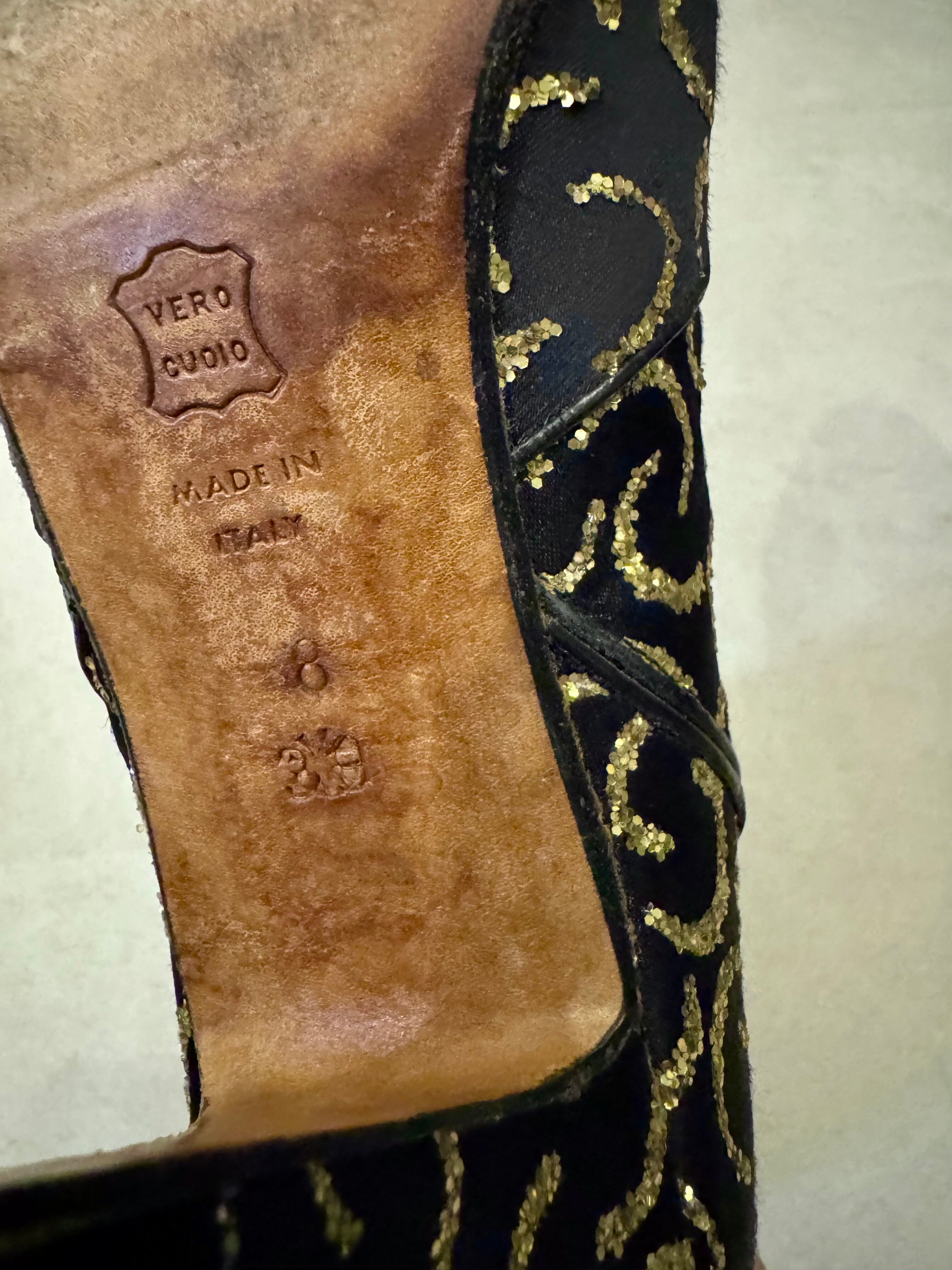 70s イタリー アーモンド トゥ グリッター ブーツ