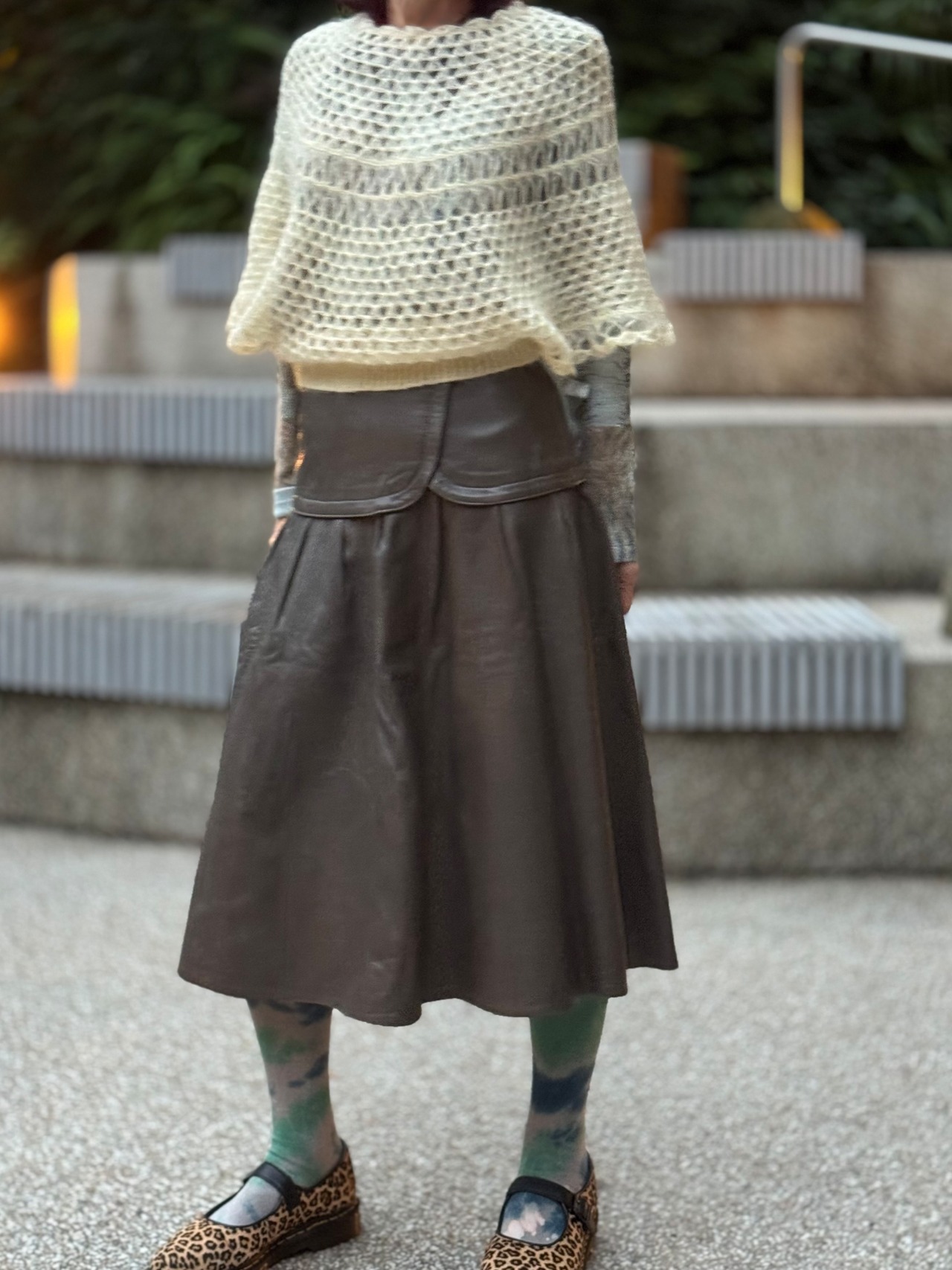 ✳︎80s フレンチ ヴィンテージ オーダーメイド レザー タック スカート