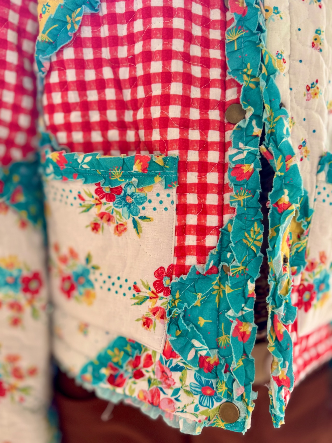 UK アーティスト メイド オールド ファブリック キルト 切り替え ジャケット
