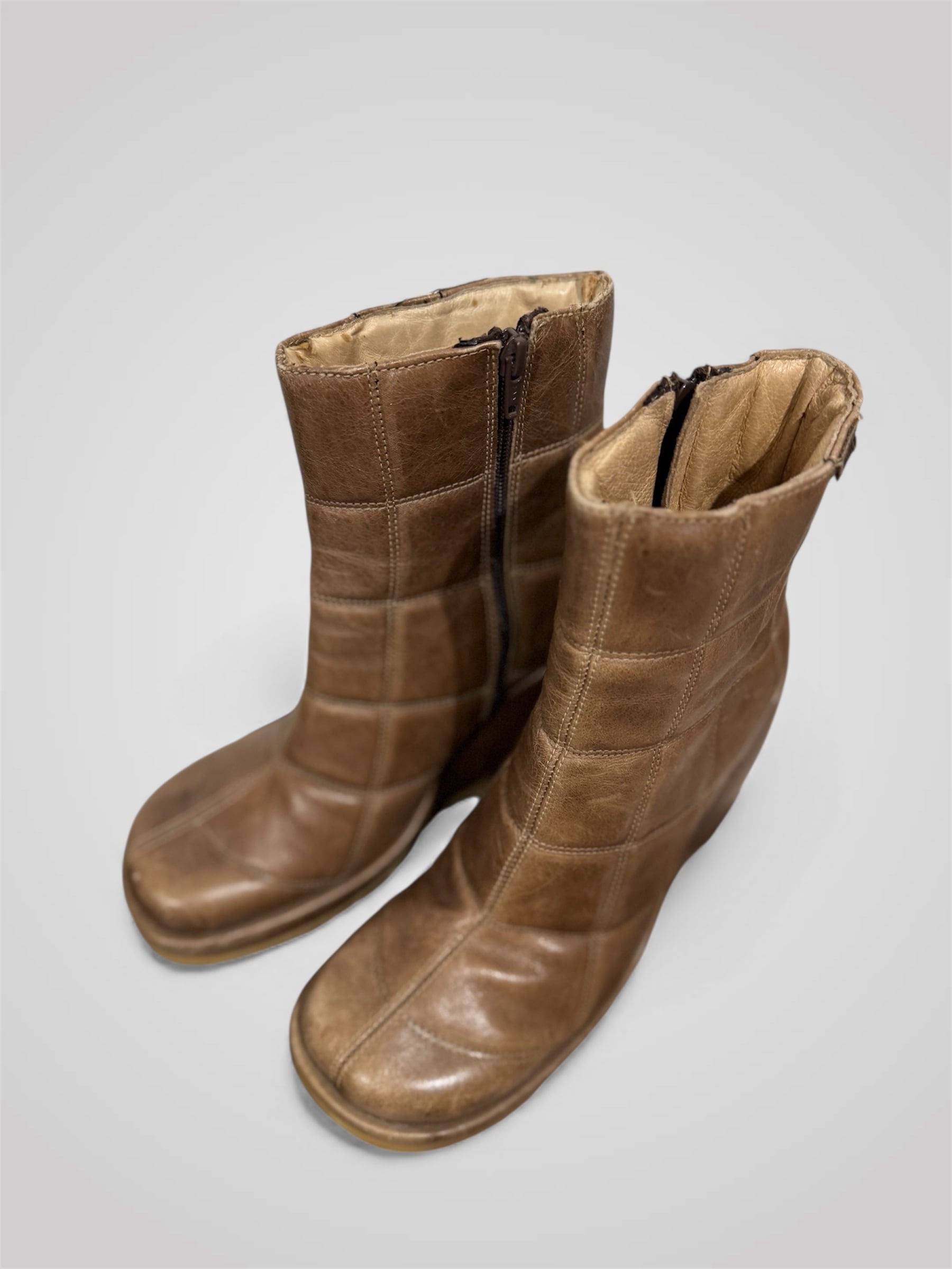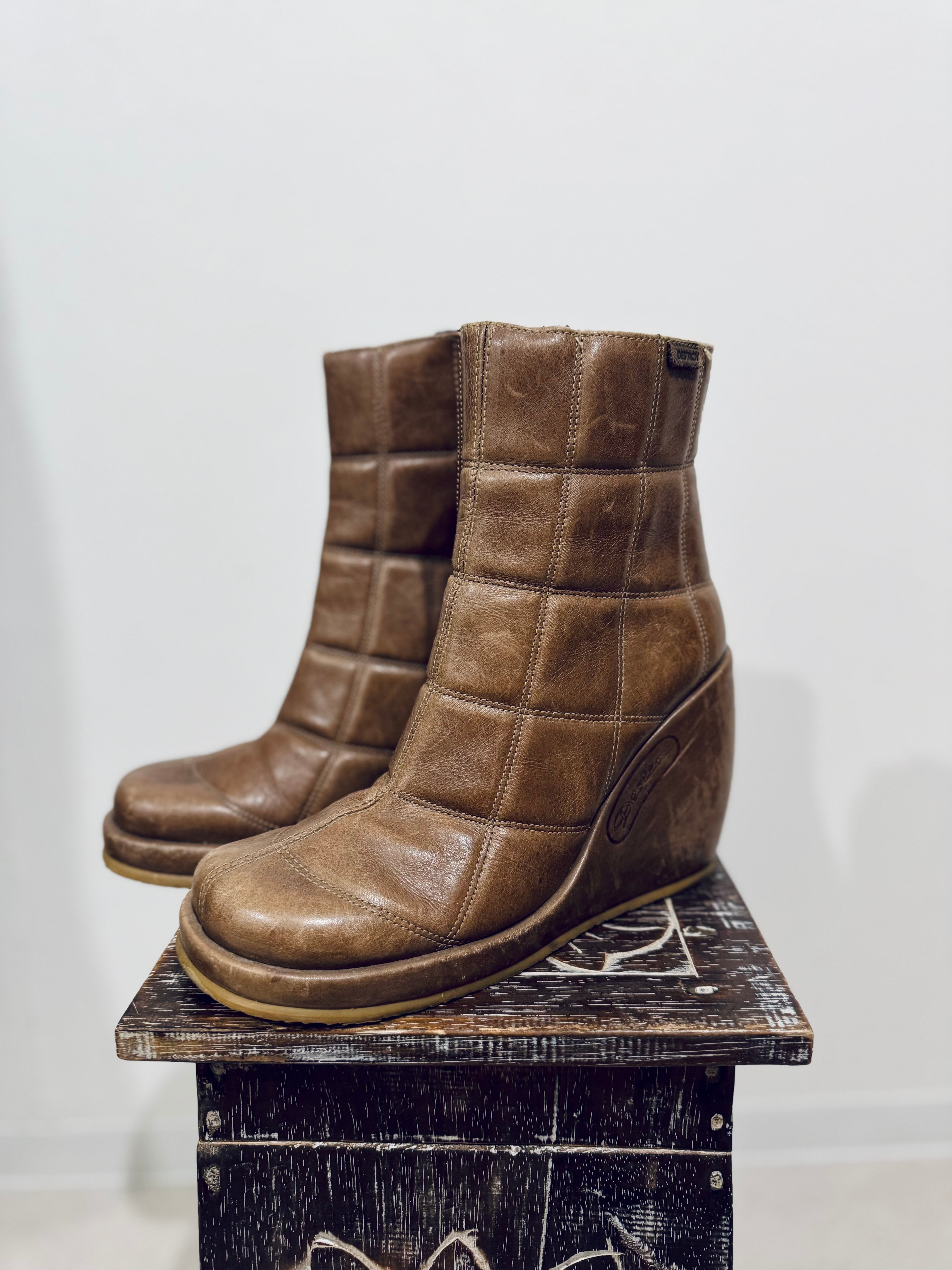スペイン ヴィンテージ キルト レザー ウェッジ ソール ブーツ