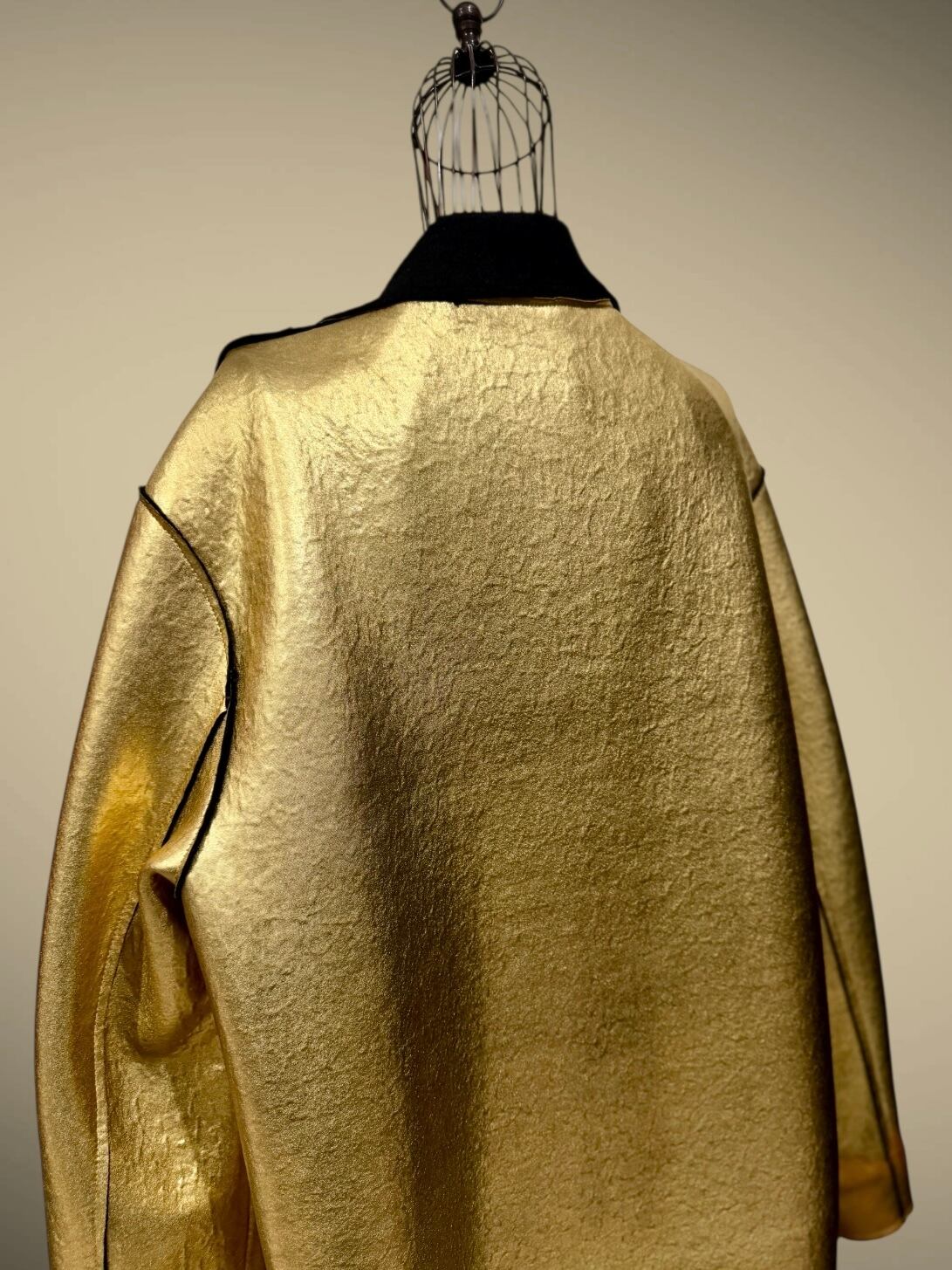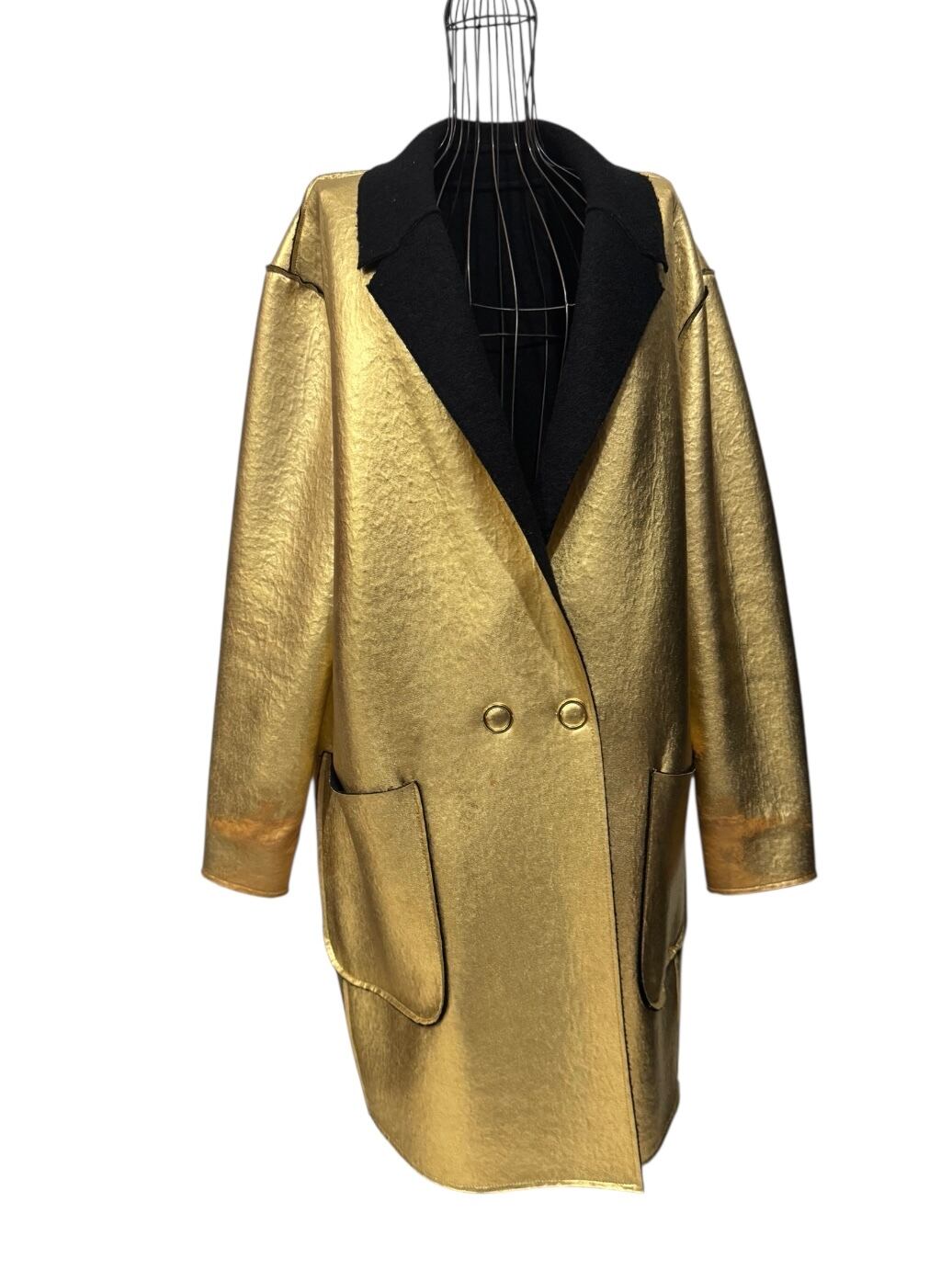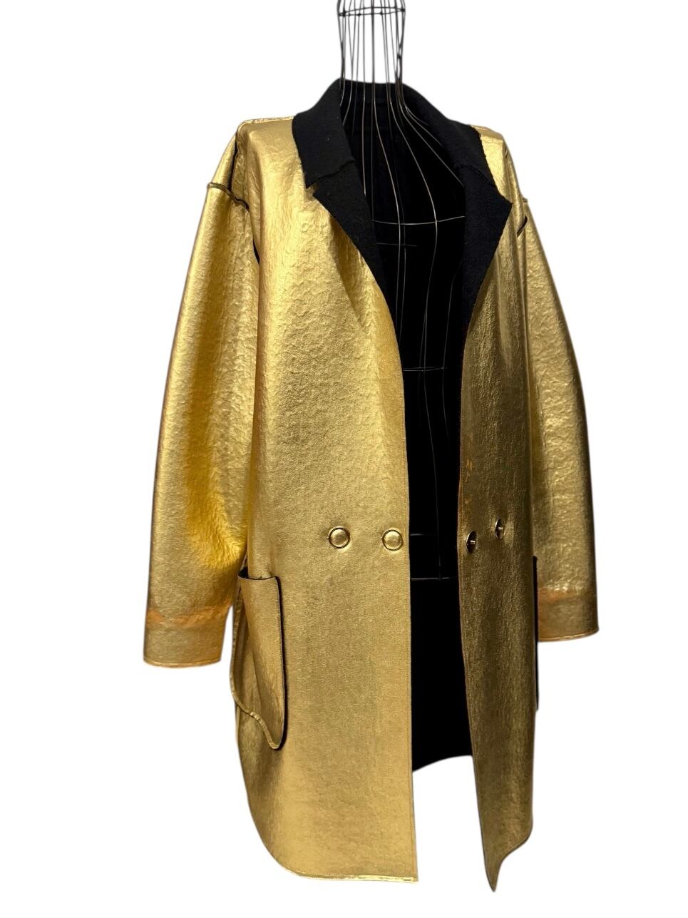 ブラック ウールとゴールド箔 ボンディングの完全リバーシブル コートです。