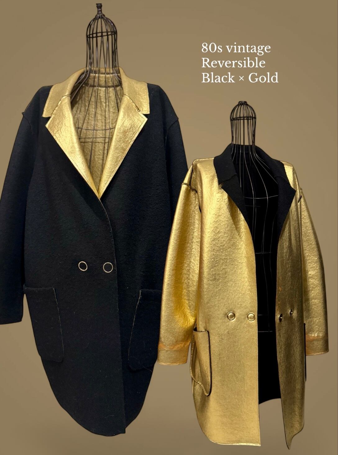 80s リバーシブル ブラック & ゴールド コクーン コート
