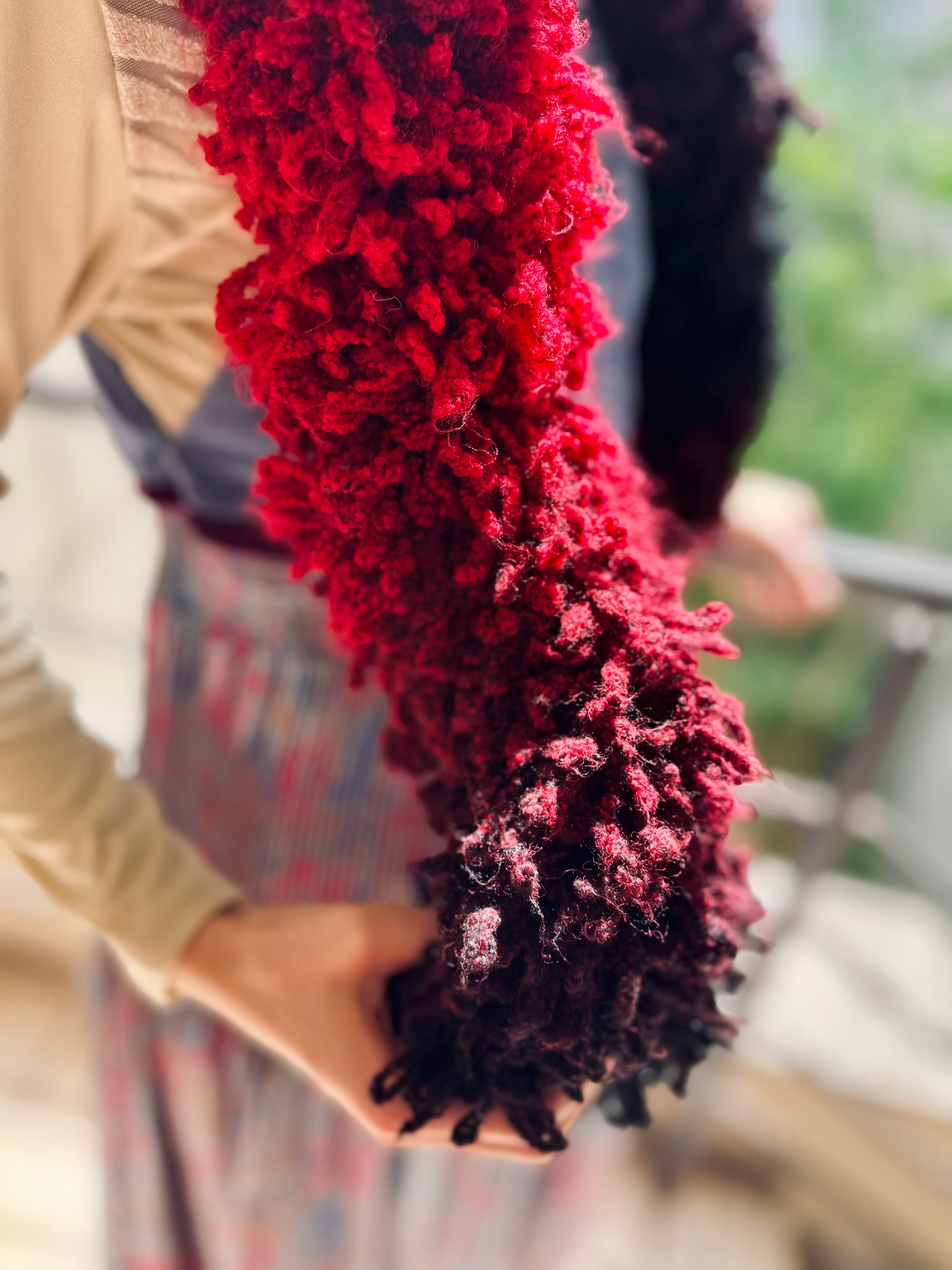良いアクセントになるモール ループ特有のボリュームがあるストールです。