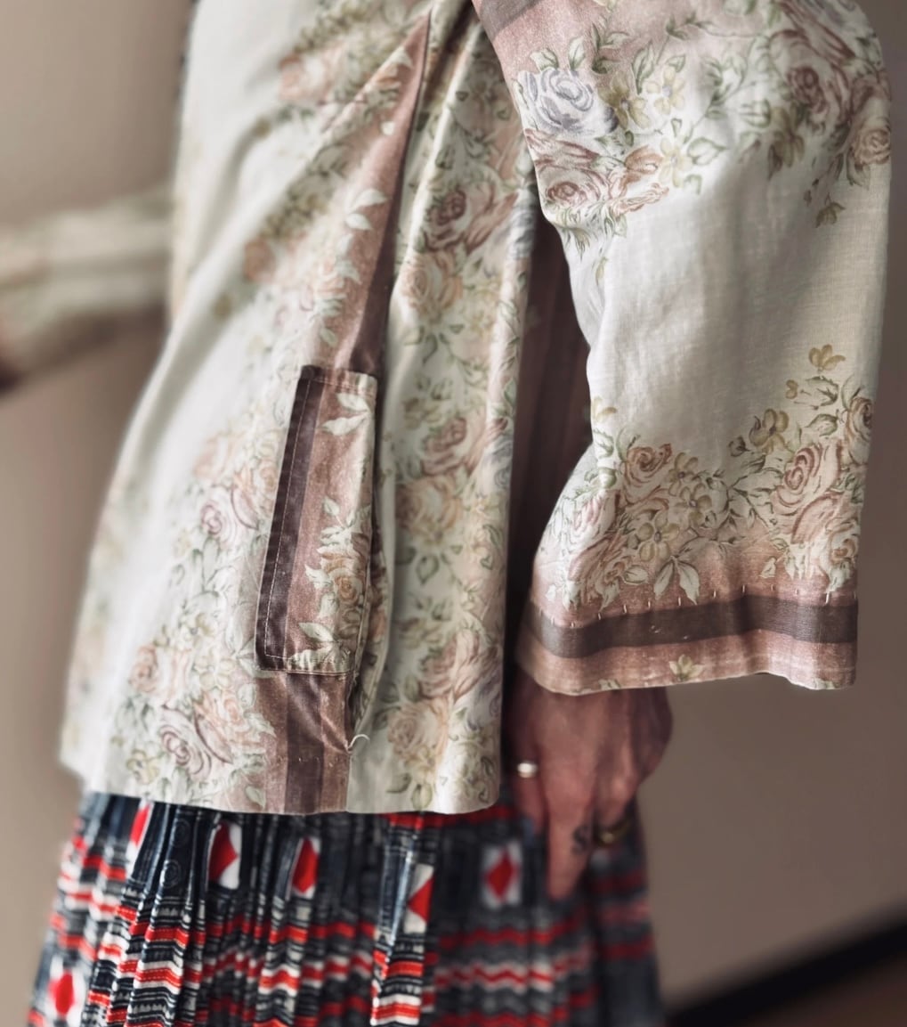 70s USA vintage Rose pattern Light jacket