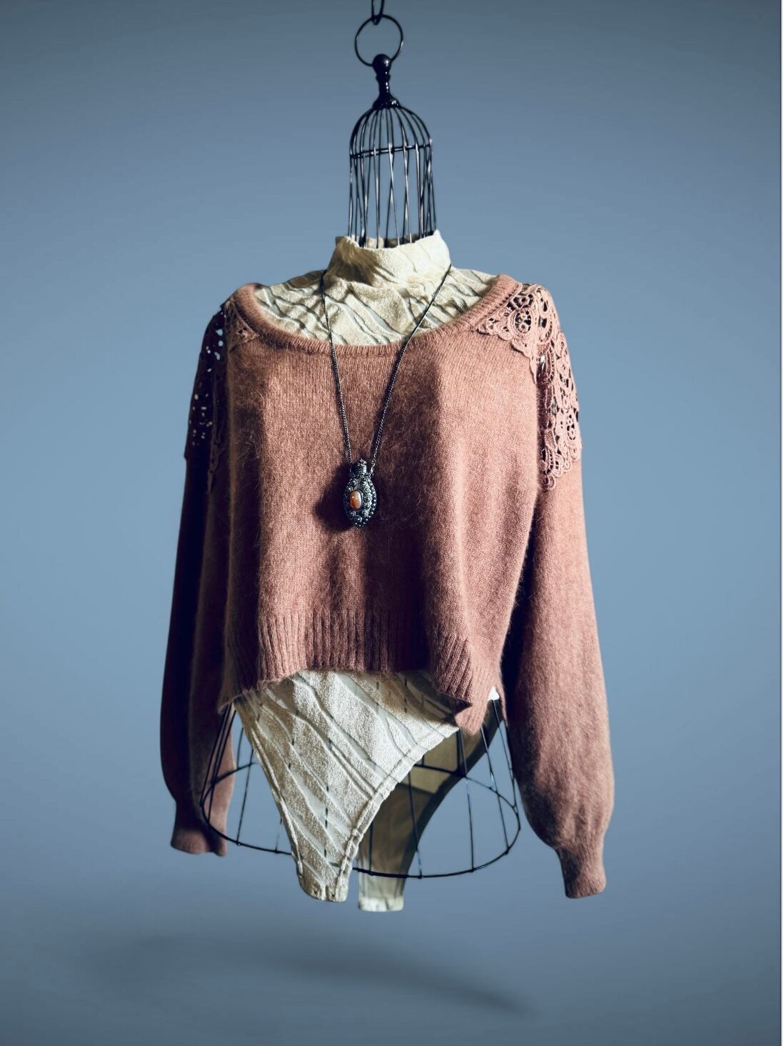 イタリー ヴィンテージ パワーネット & モール ハイネック オールインワン