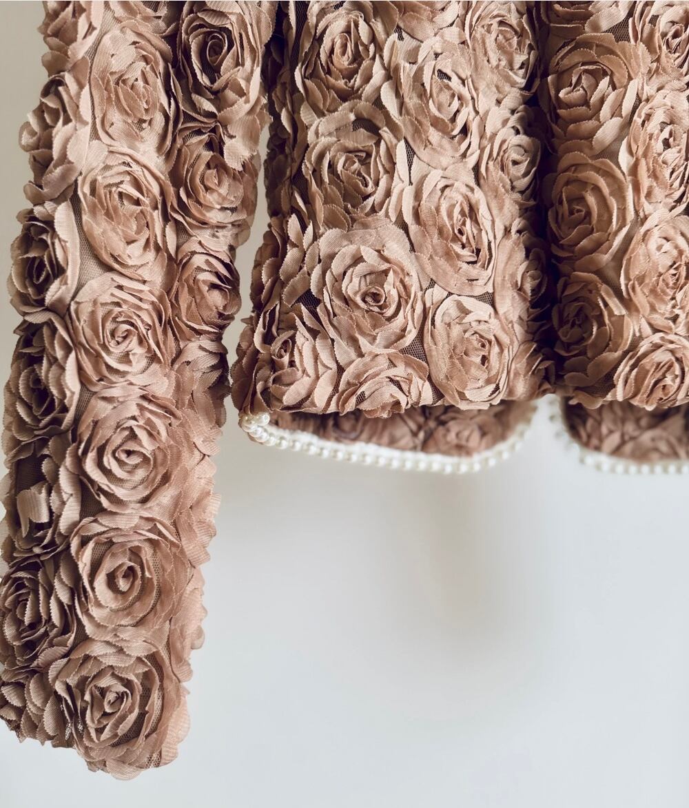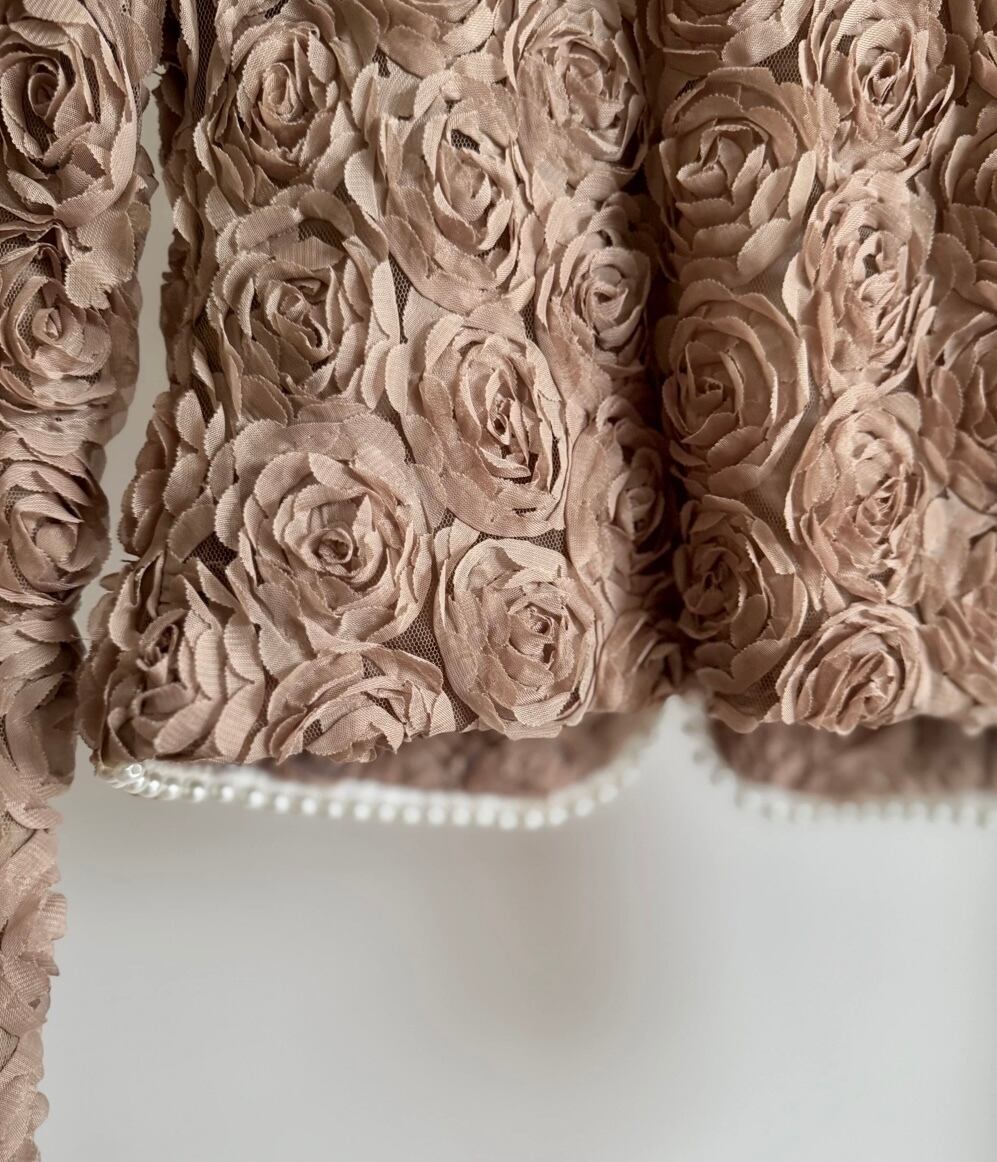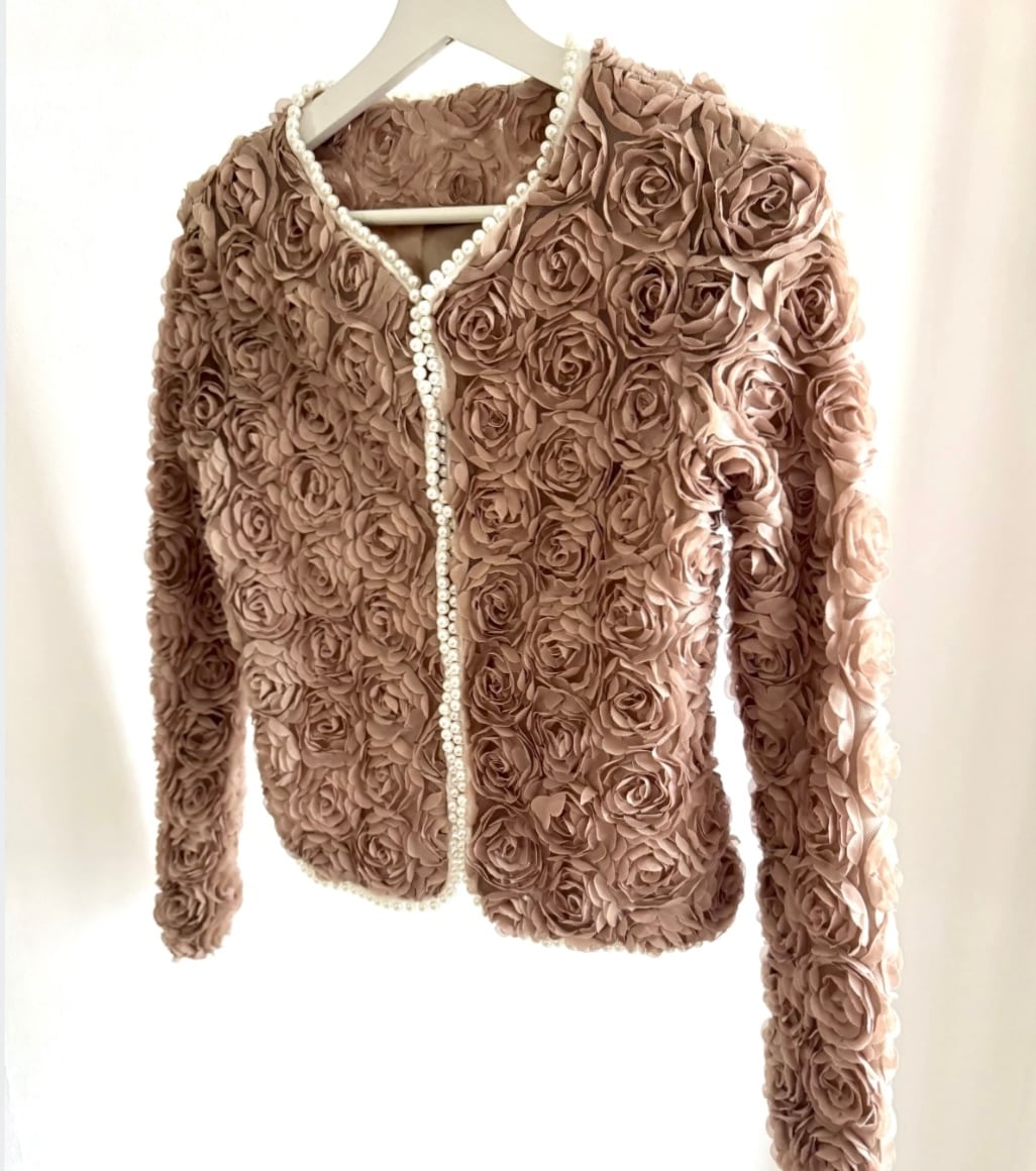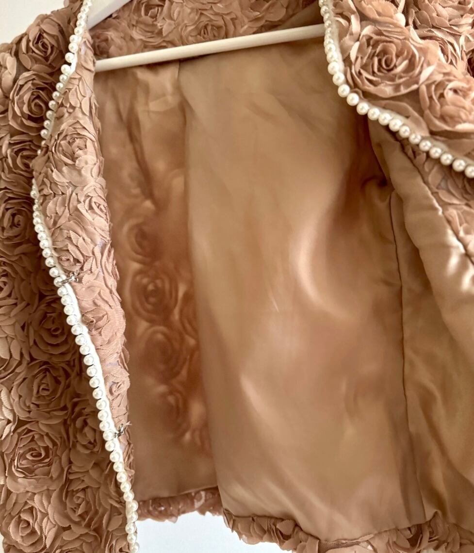 UK ヴィンテージ オーダーメイド パワーネット × ローズ , パール装飾 ジャケット