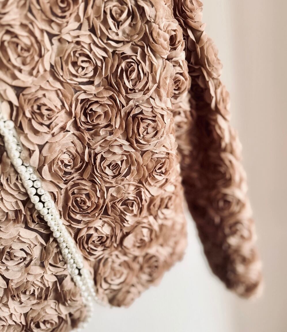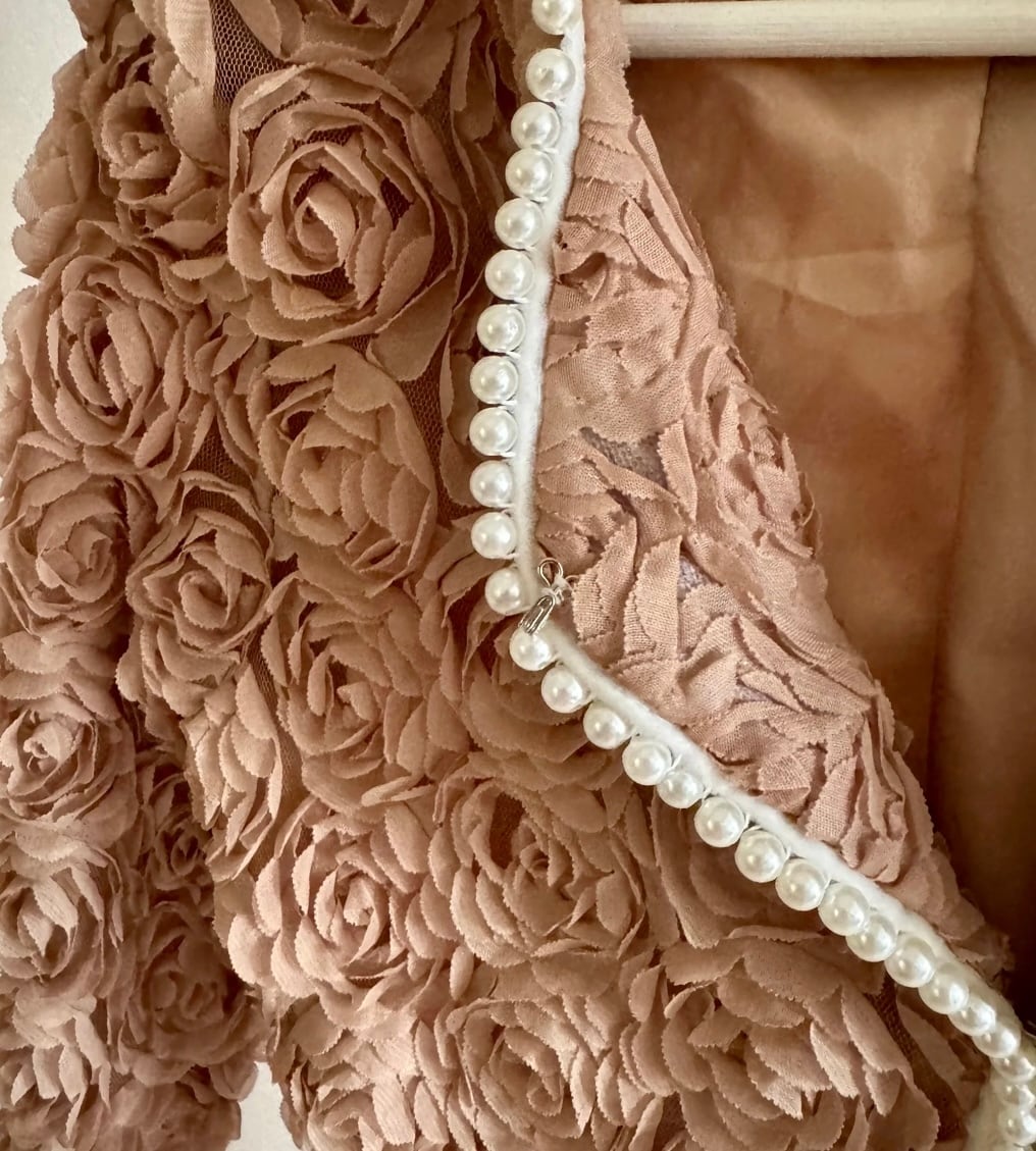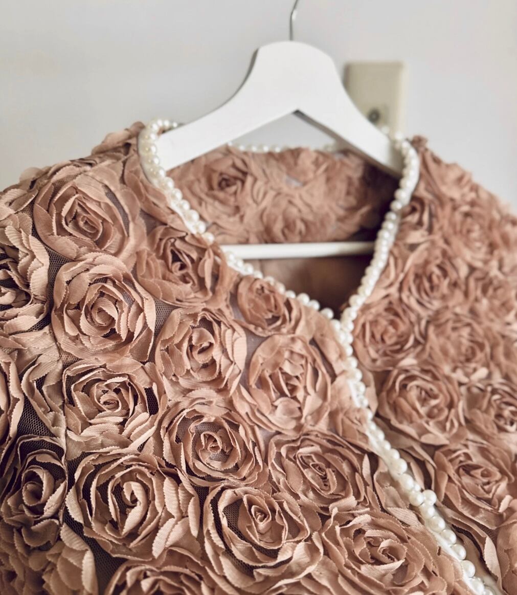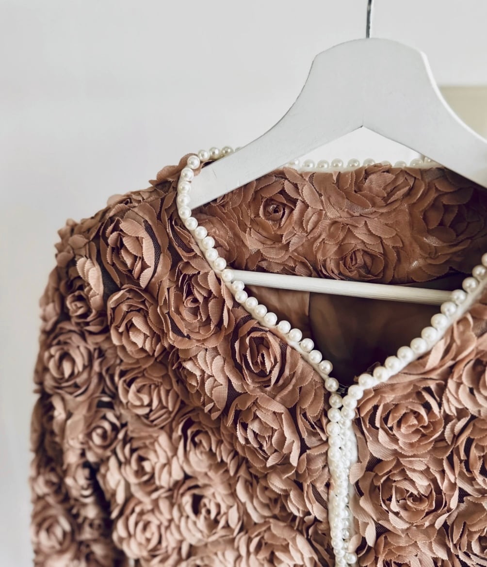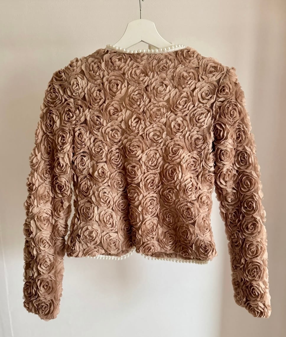UK ヴィンテージ オーダーメイド パワーネット × ローズ , パール装飾 ジャケット