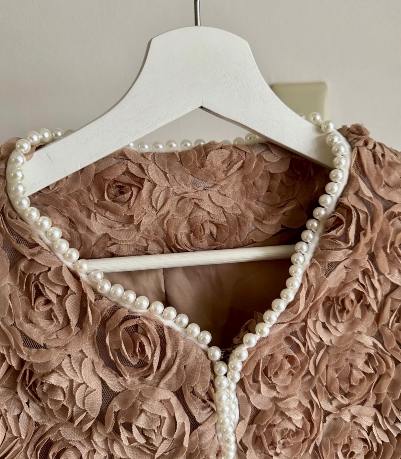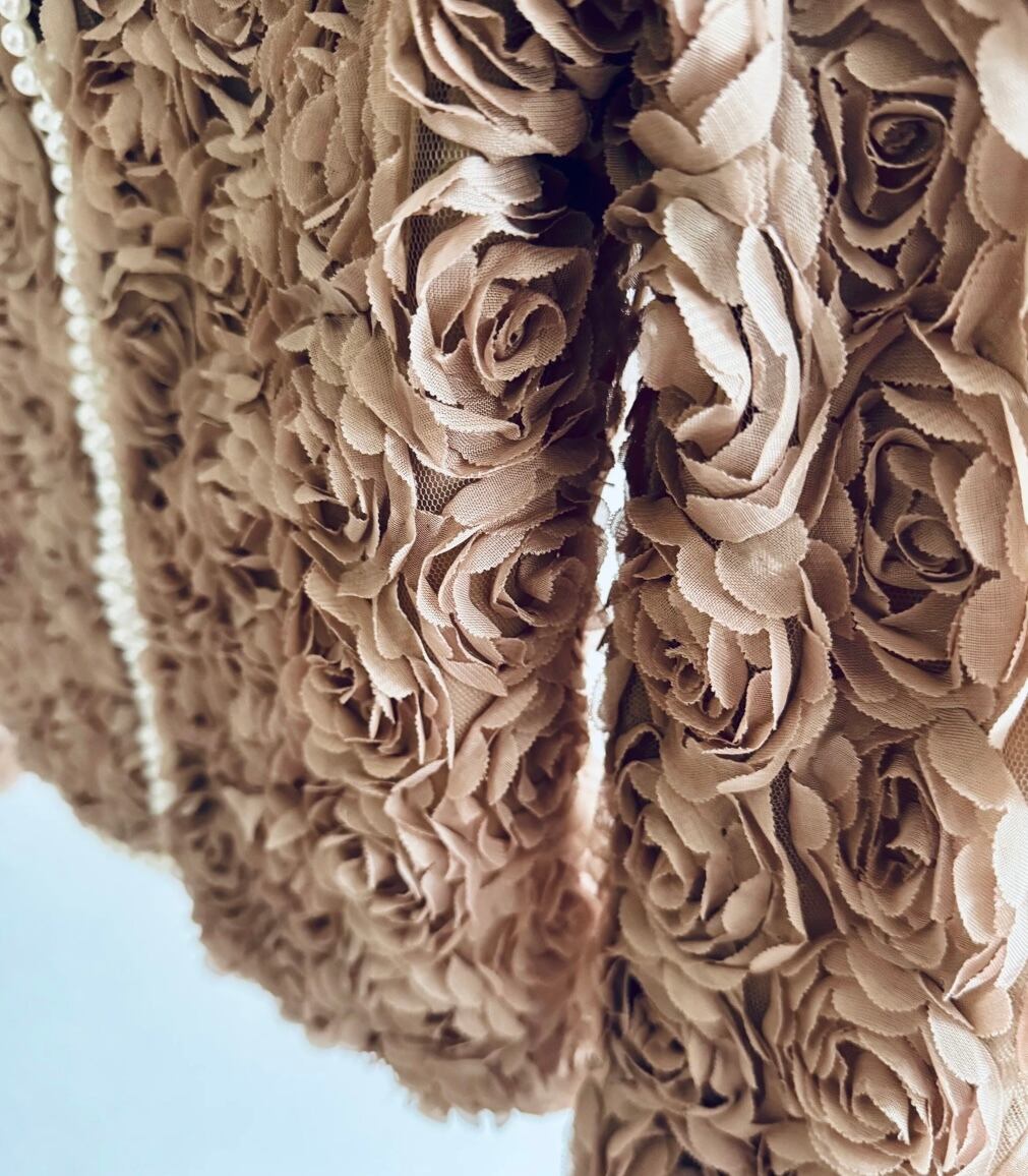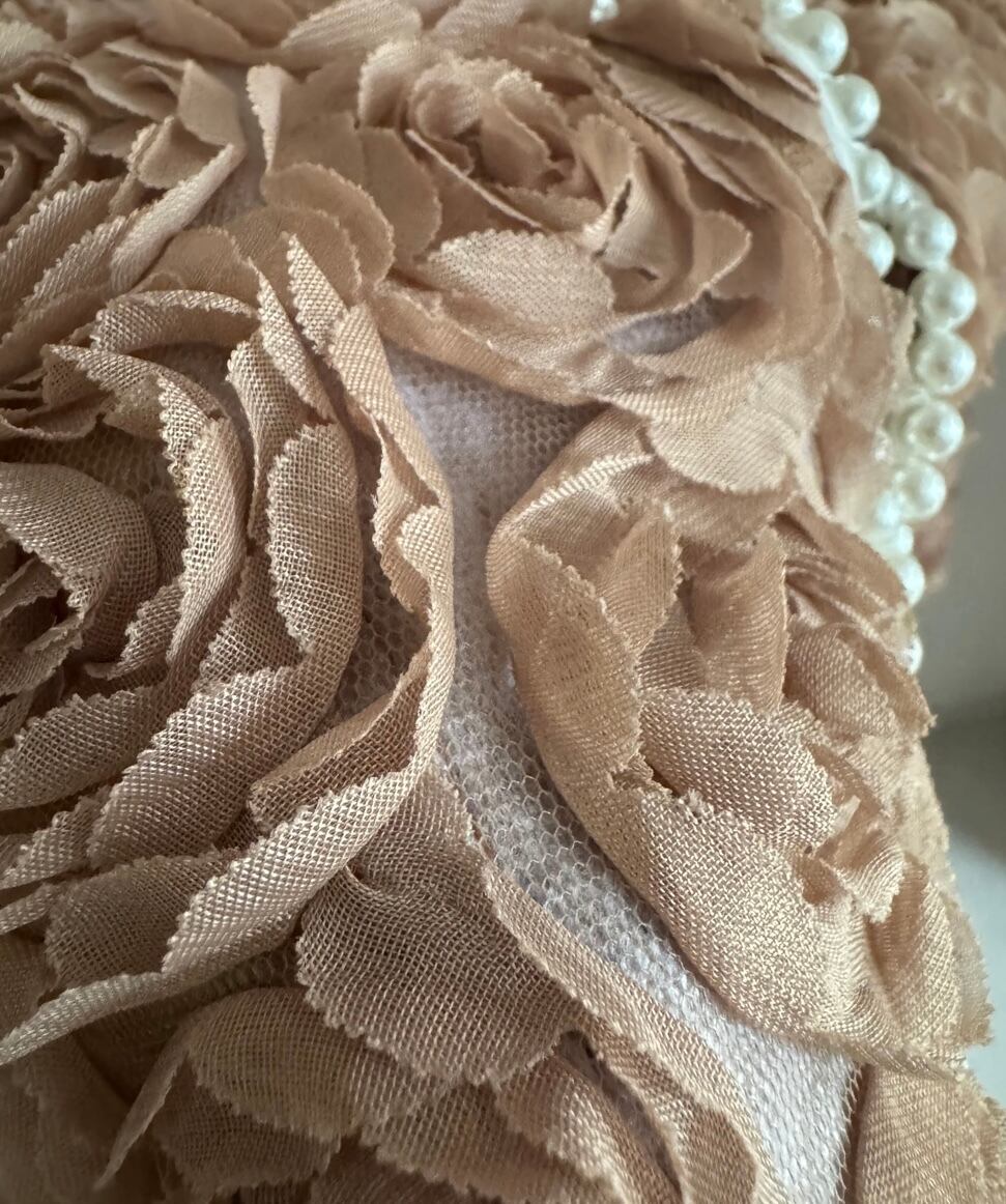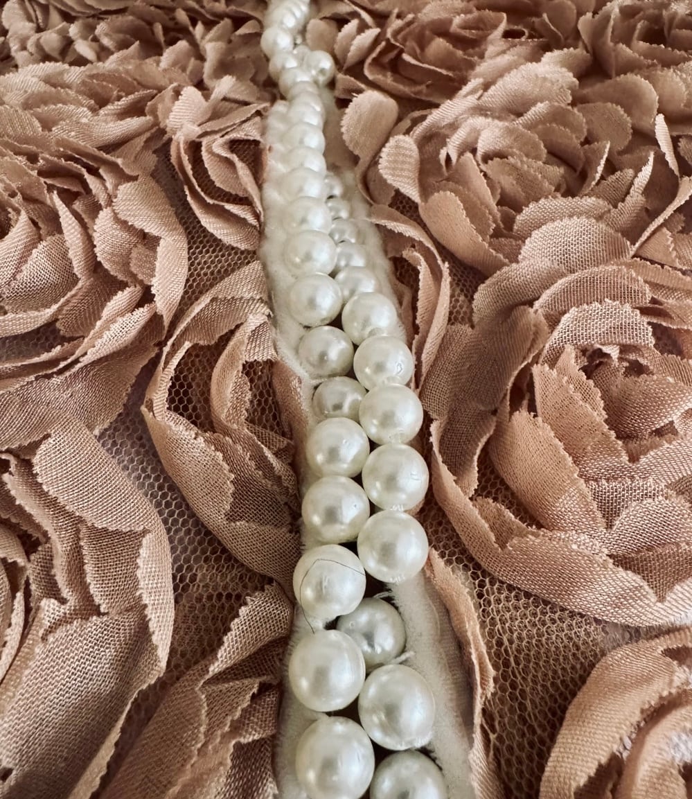 UK ヴィンテージ オーダーメイド パワーネット × ローズ , パール装飾 ジャケット