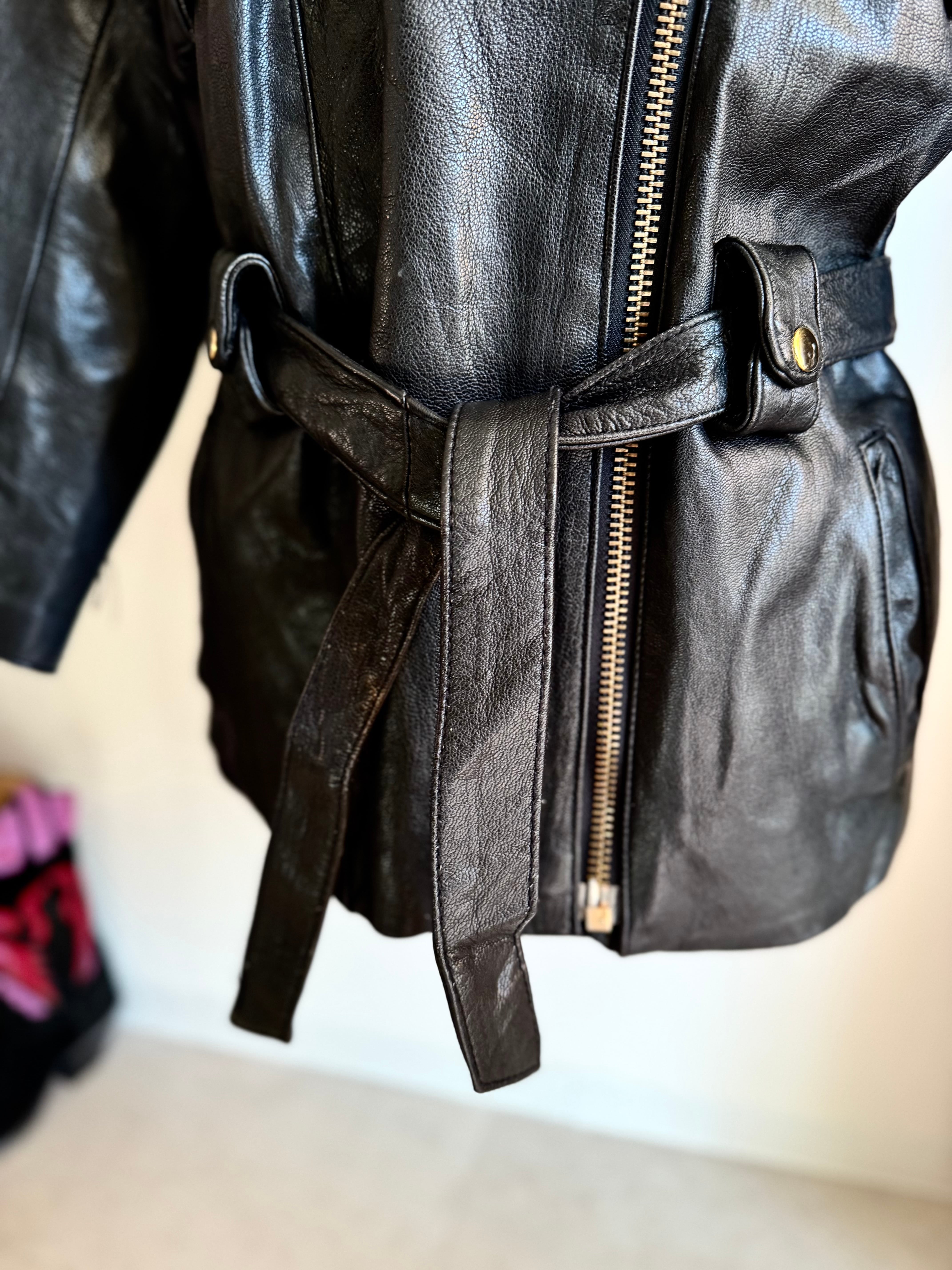 80s ヴィンテージ バッファロー レザー ベルト付き ダブル ライダース