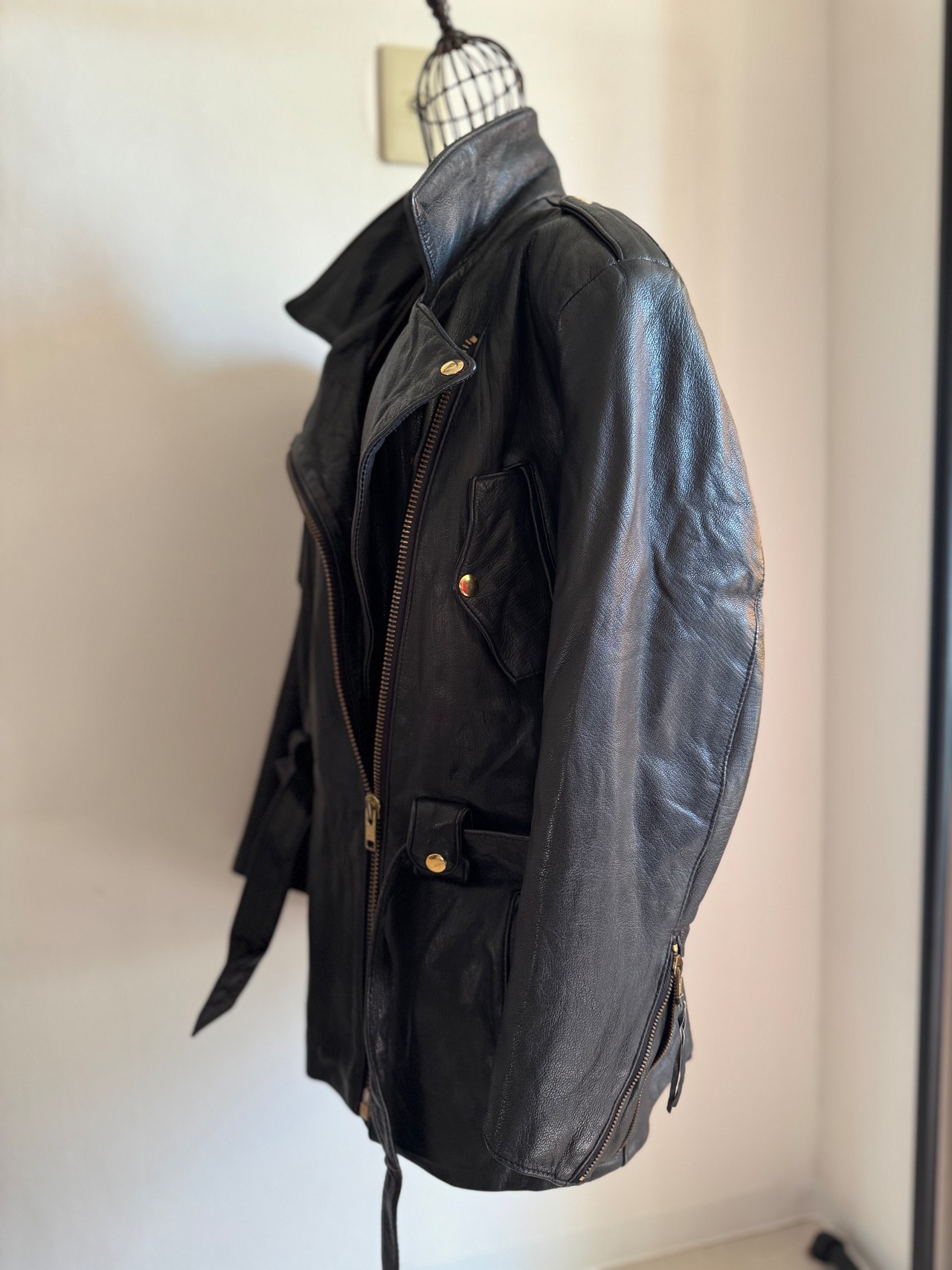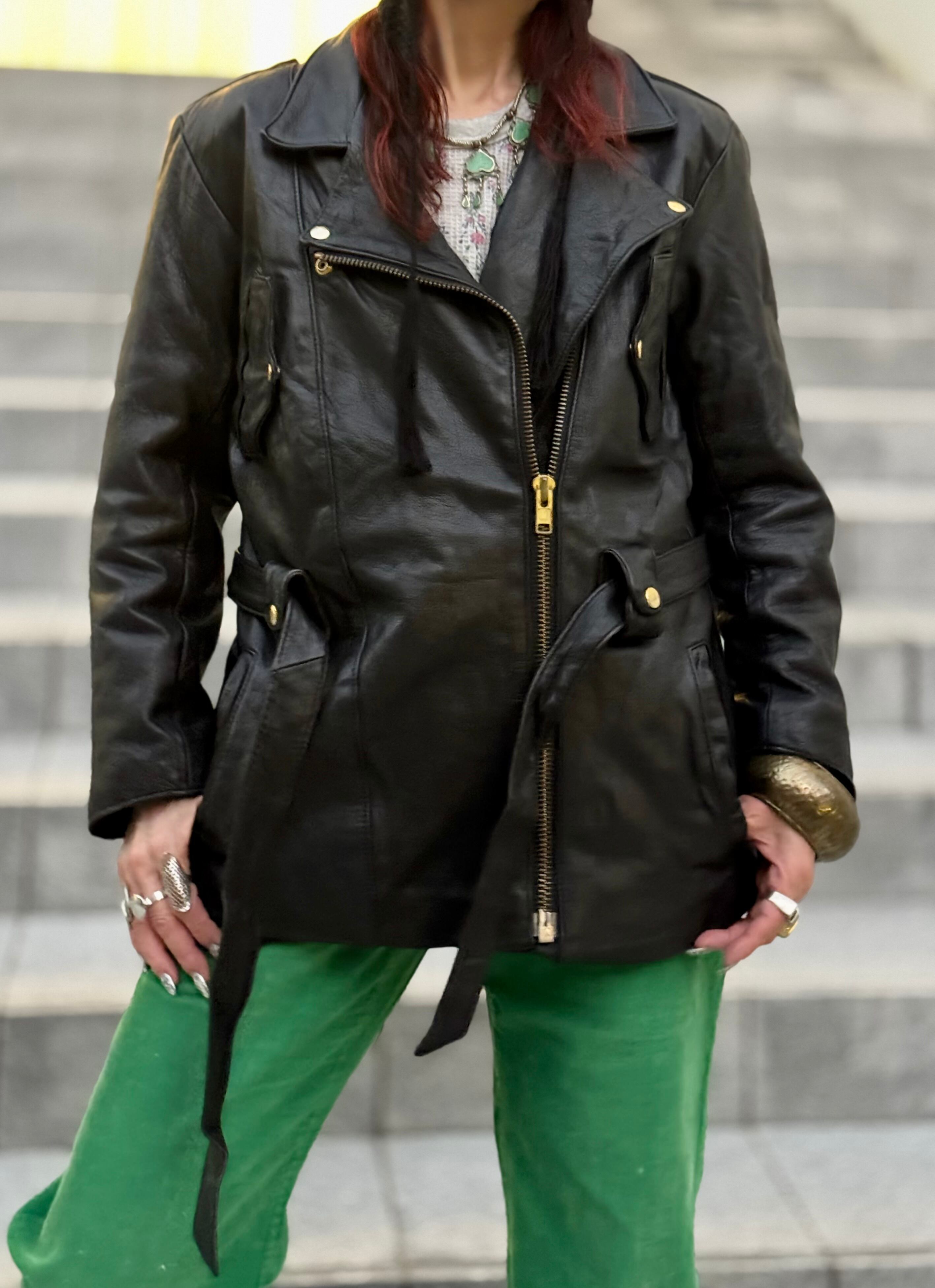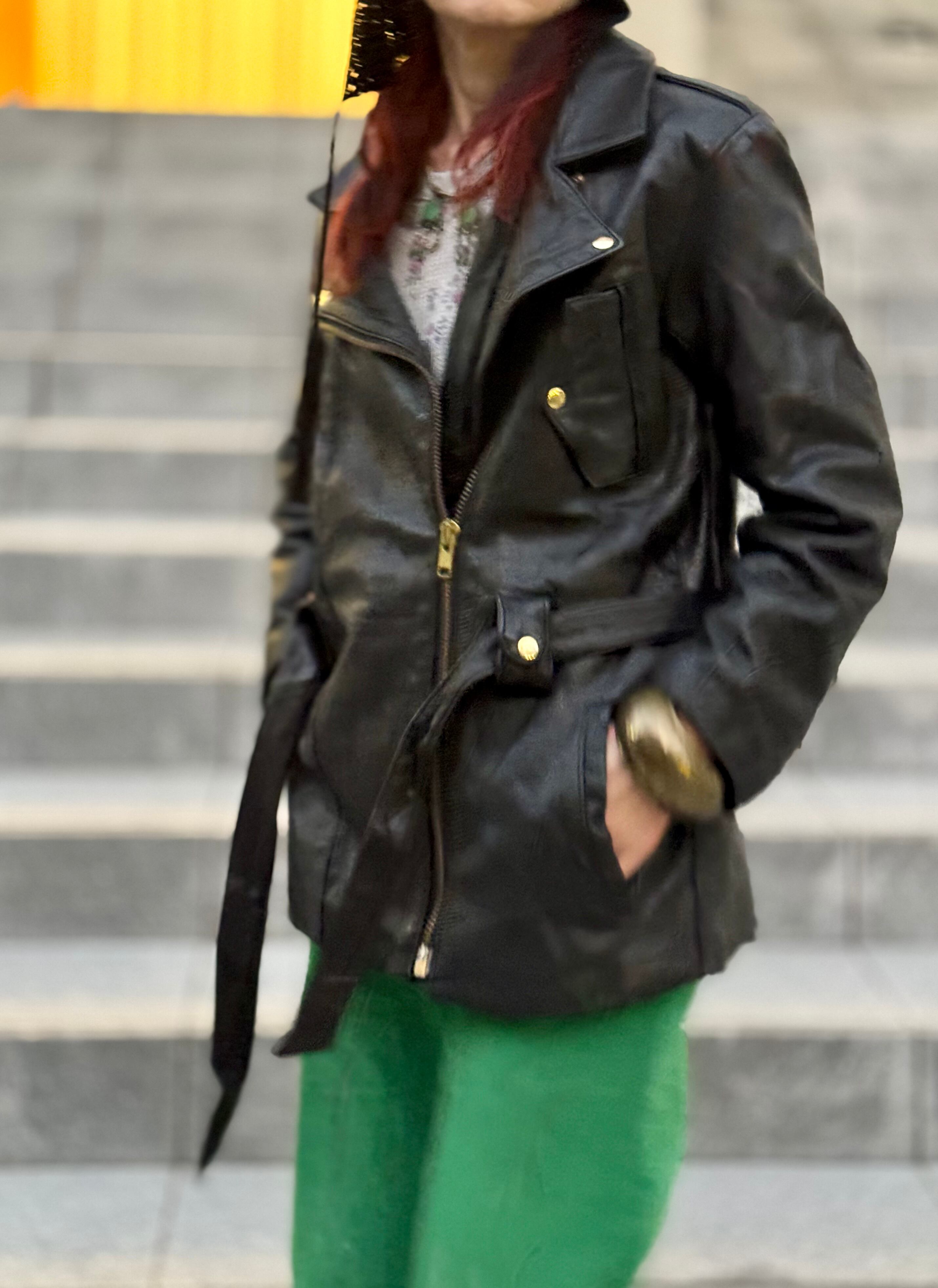 ゴールドのメタルとベルト付きディテールもまた良く、エレガントさとカジュアルさのどちらも兼ね備えたこの一点だからこそpicupしたライダースです。