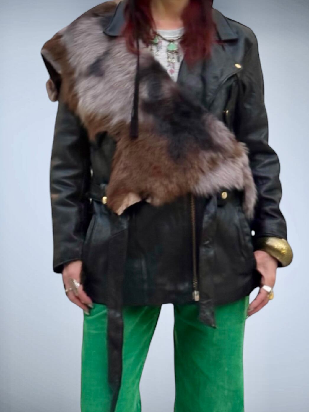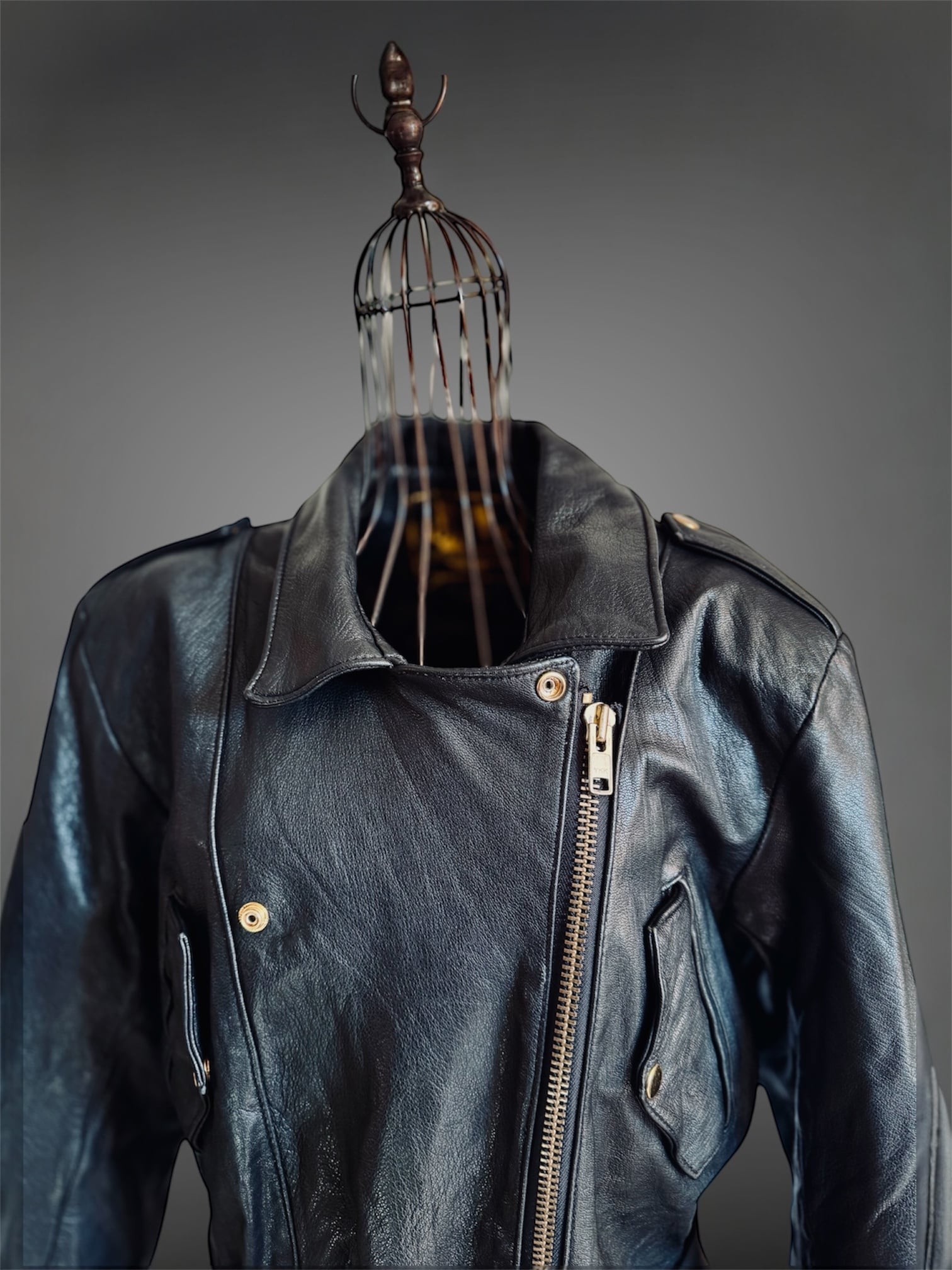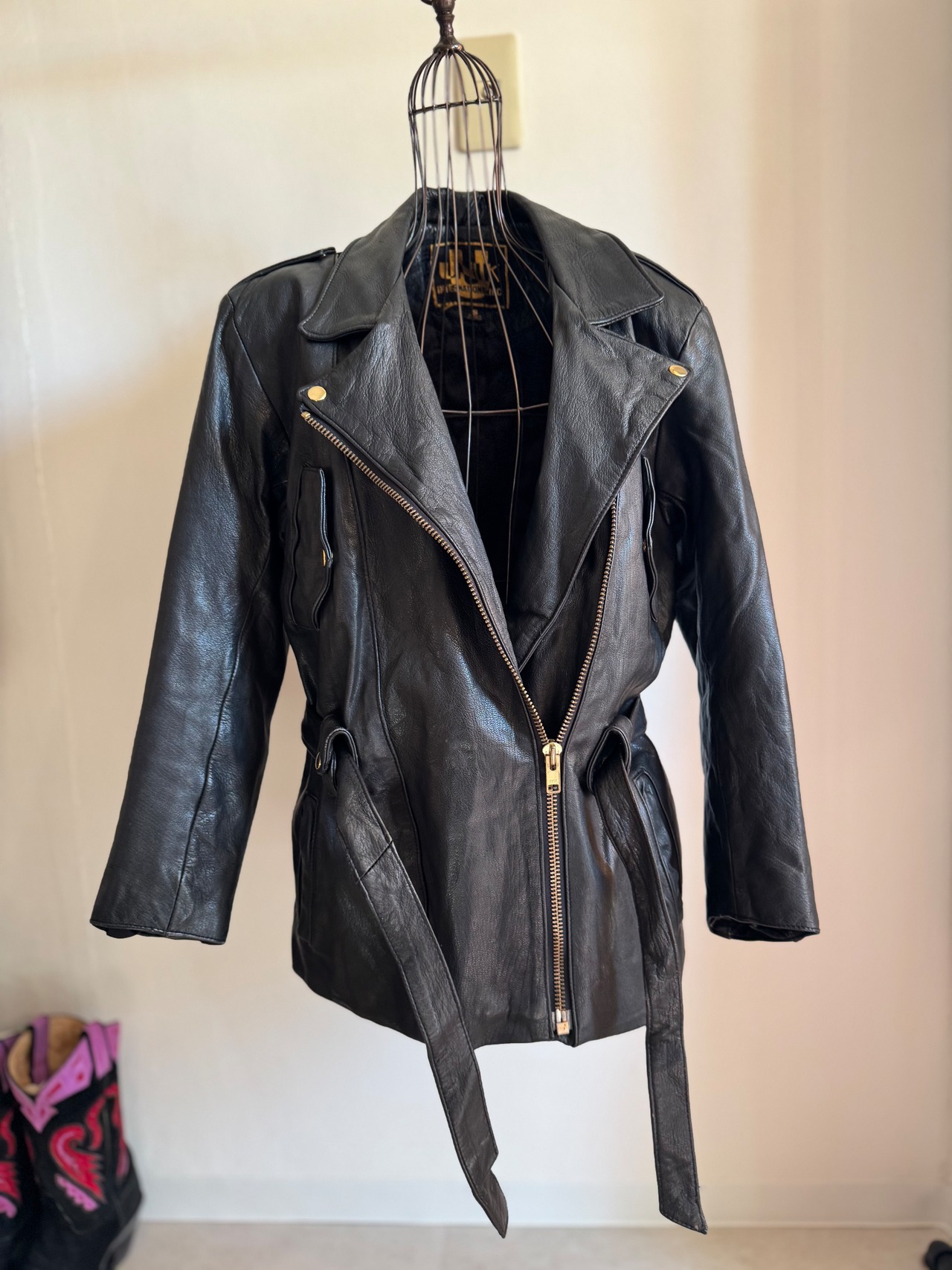 ゴールドのメタルとベルト付きディテールもまた良く、エレガントさとカジュアルさのどちらも兼ね備えたこの一点だからこそpicupしたライダースです。