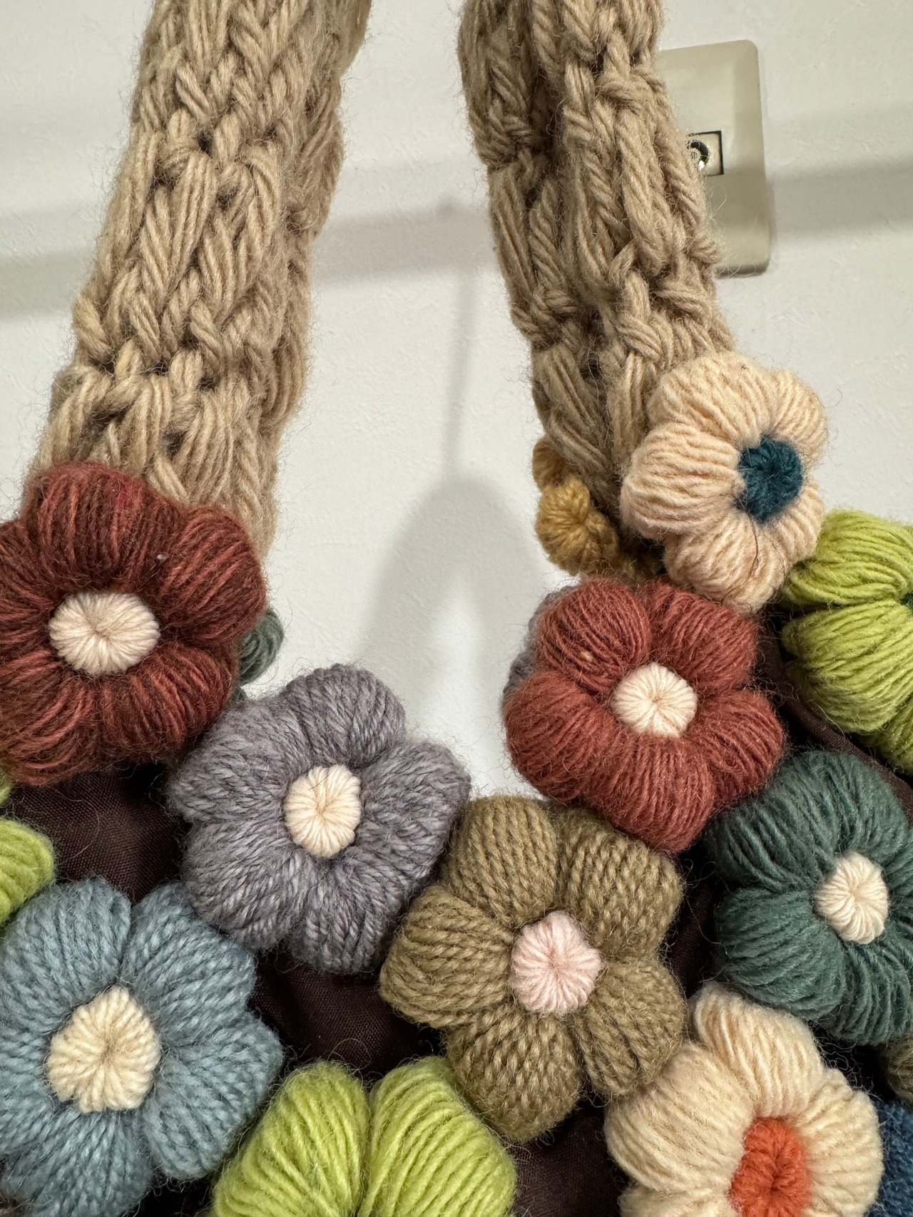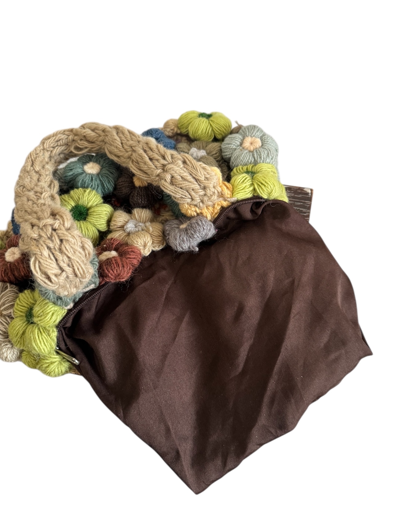 ユーロ ハンドメイド 3D モチーフ編み ショルダー バッグ