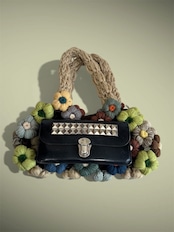 立体モチーフを繋ぎ合わせたとても手の込んだショルダー バッグです。
