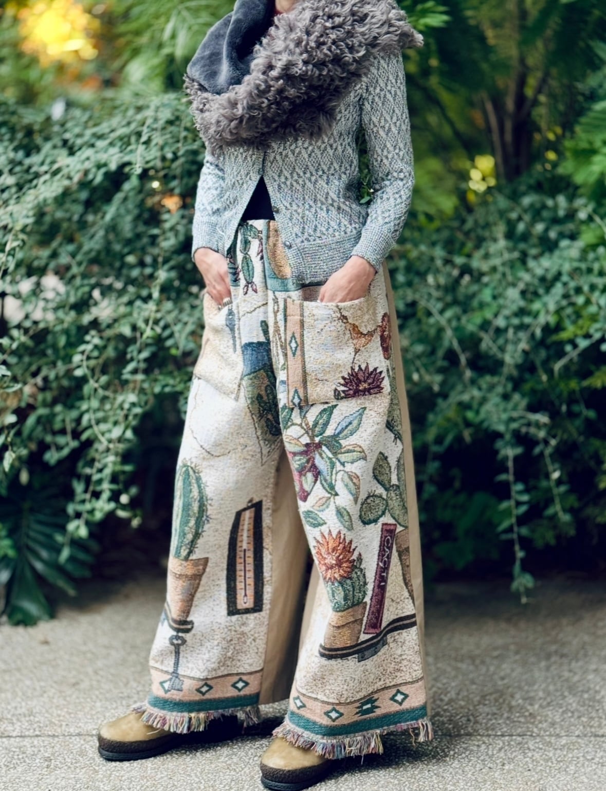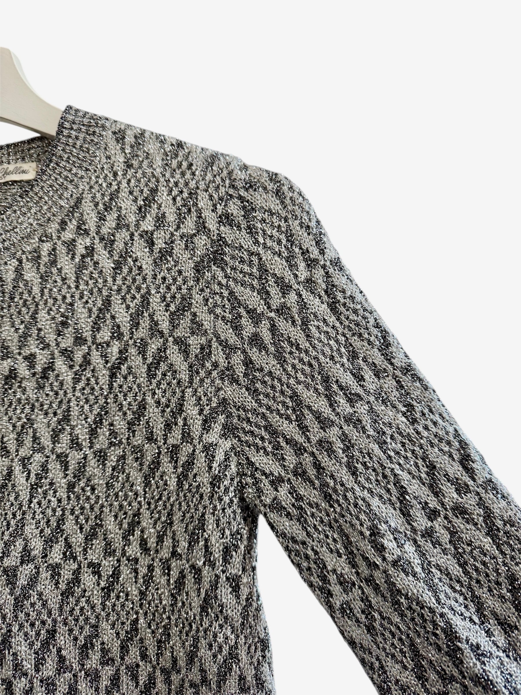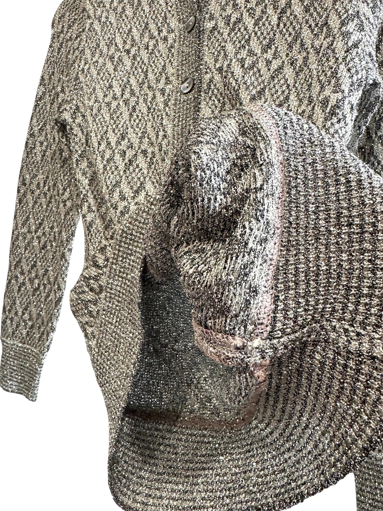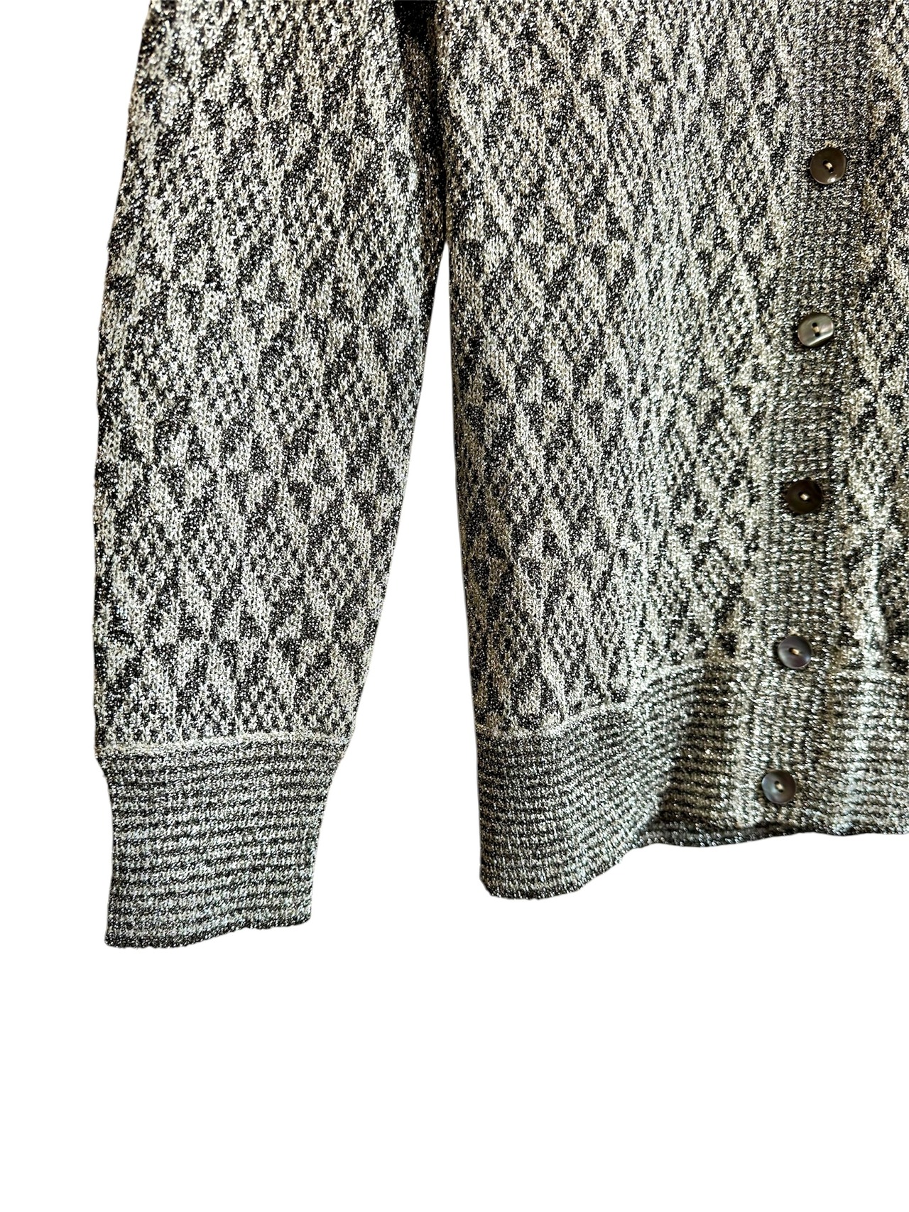 フレンチ ヴィンテージ シルバー メタリック ジャガード ニット カーディガン