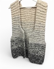 とても肉厚で上質なブークレー ヤーンをグラデーションに、直線的でざっくりと大きく開いたアームホールで、温かさも十分あり、アウターにもレイヤードできるこなれ感あるニット ベストです。