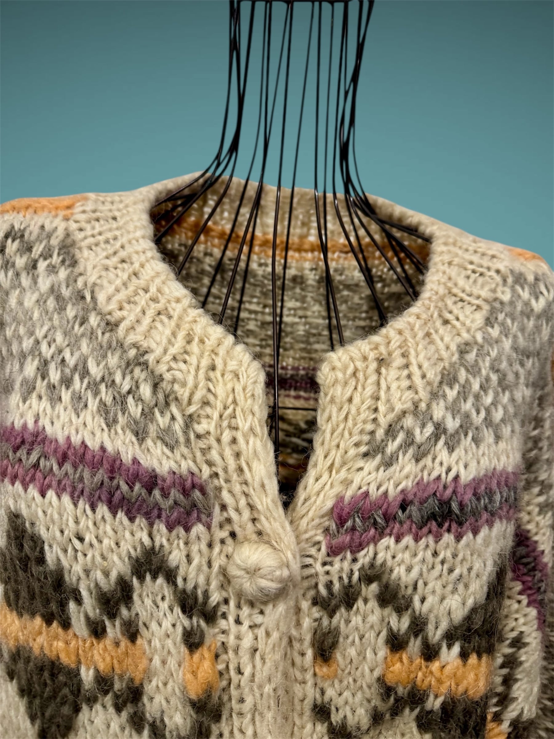 Euro vintage Handmade Shetland Wool jacquard Knit coat