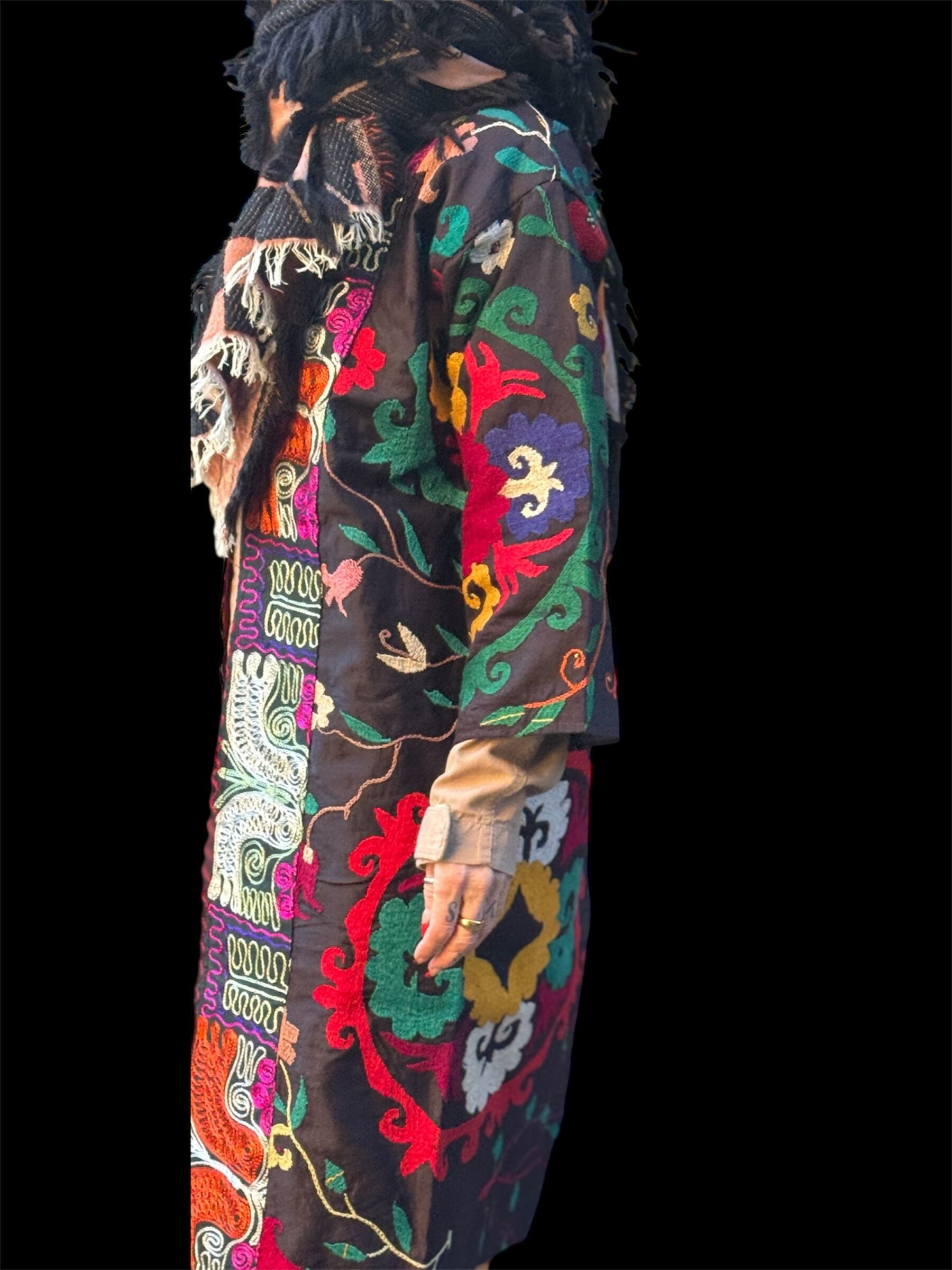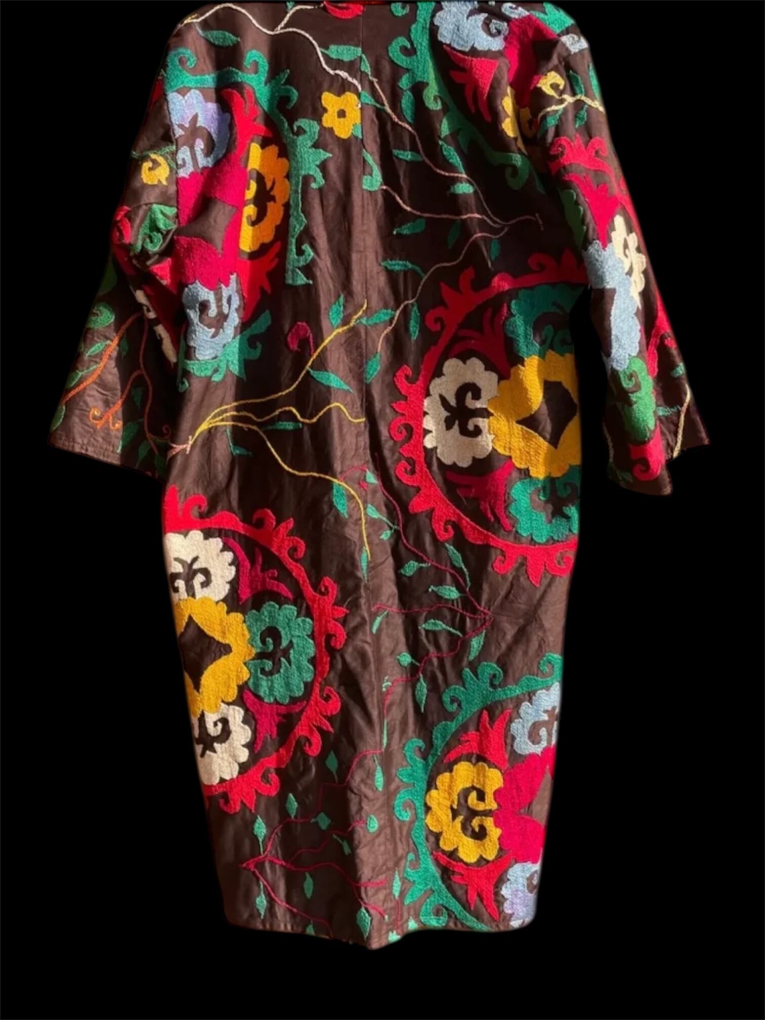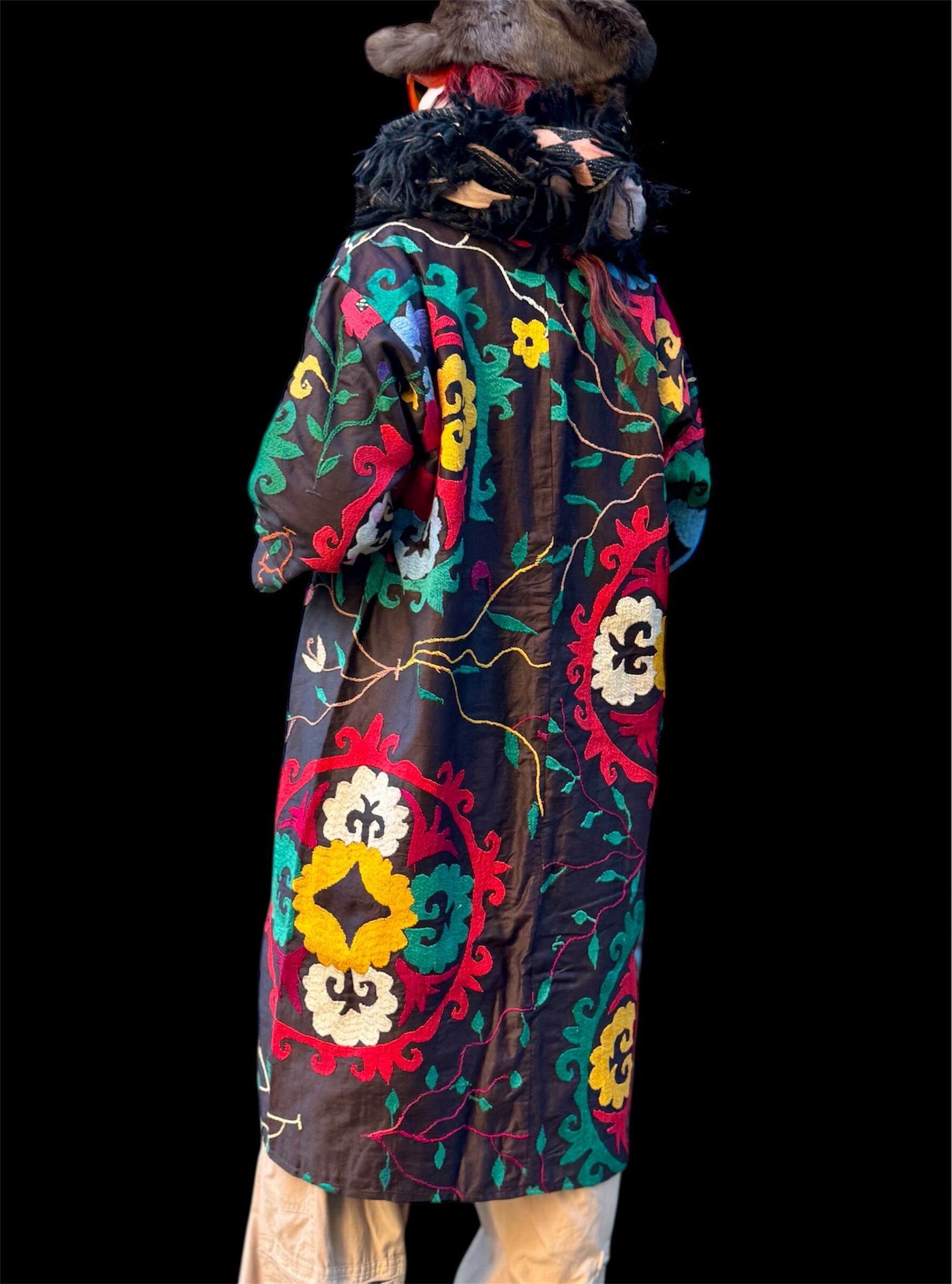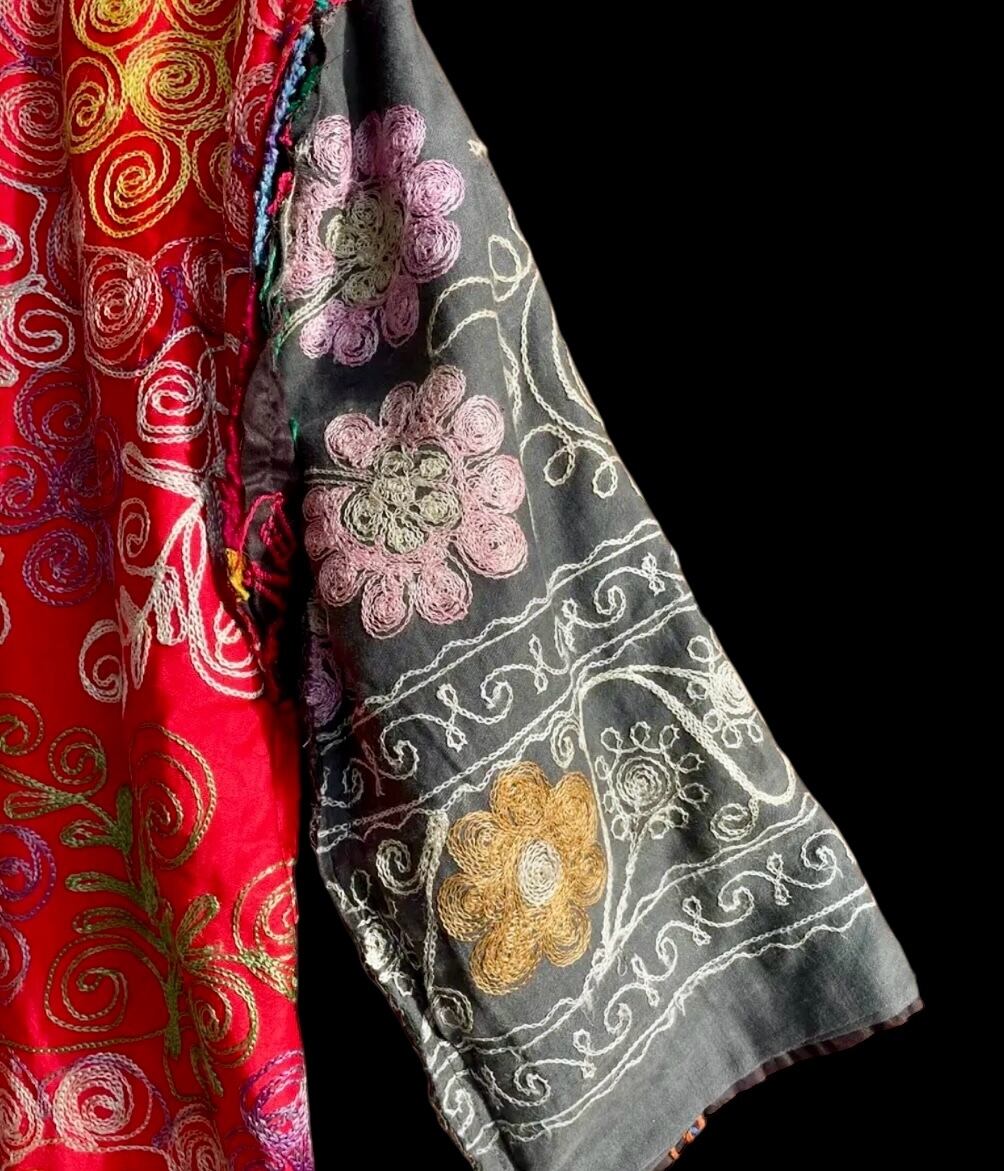 ベースのダーク カラーに刺繍と裏地の鮮やかさが別格なウズベク ヴィンテージの感性をとても感じる一着。