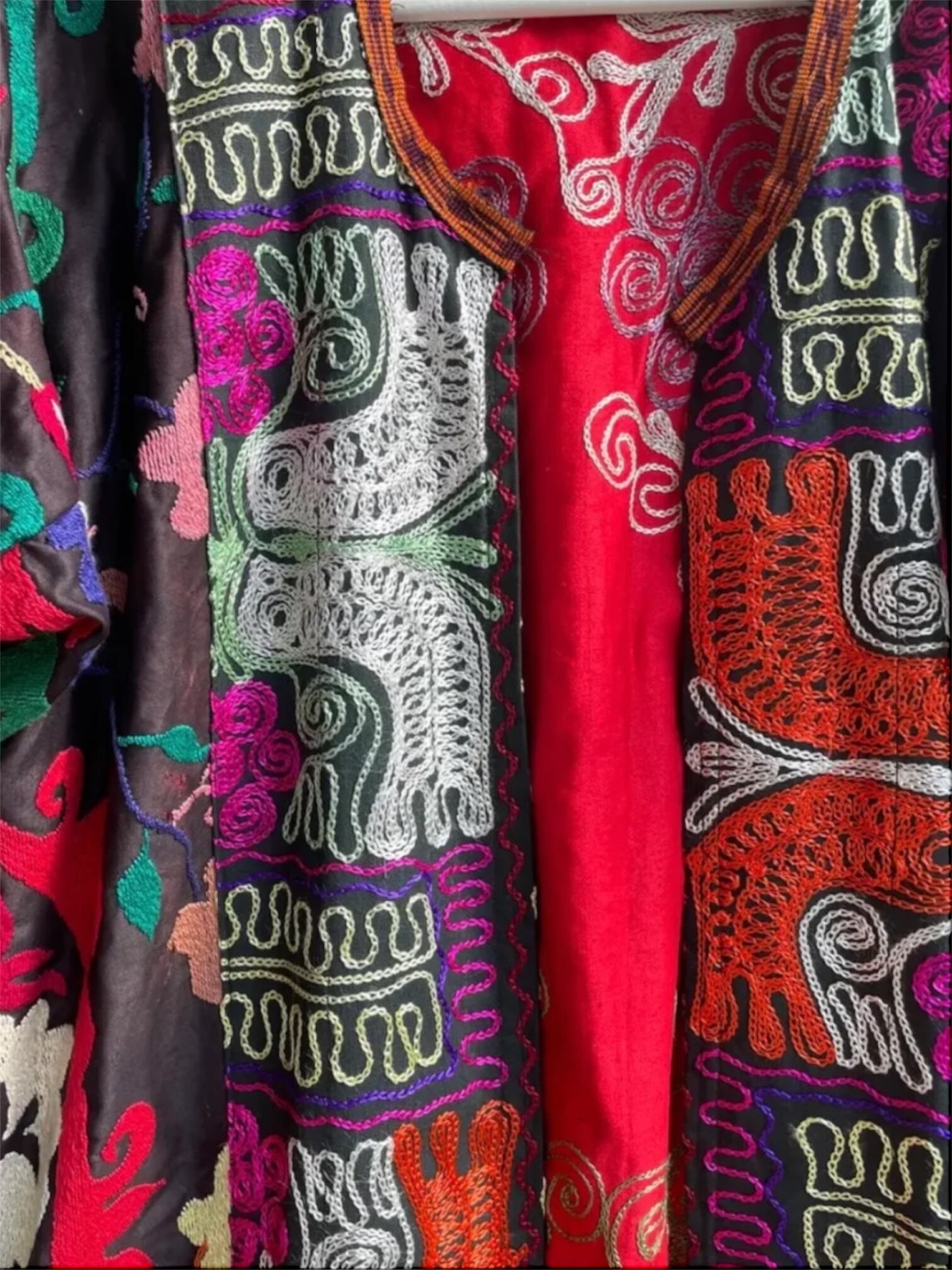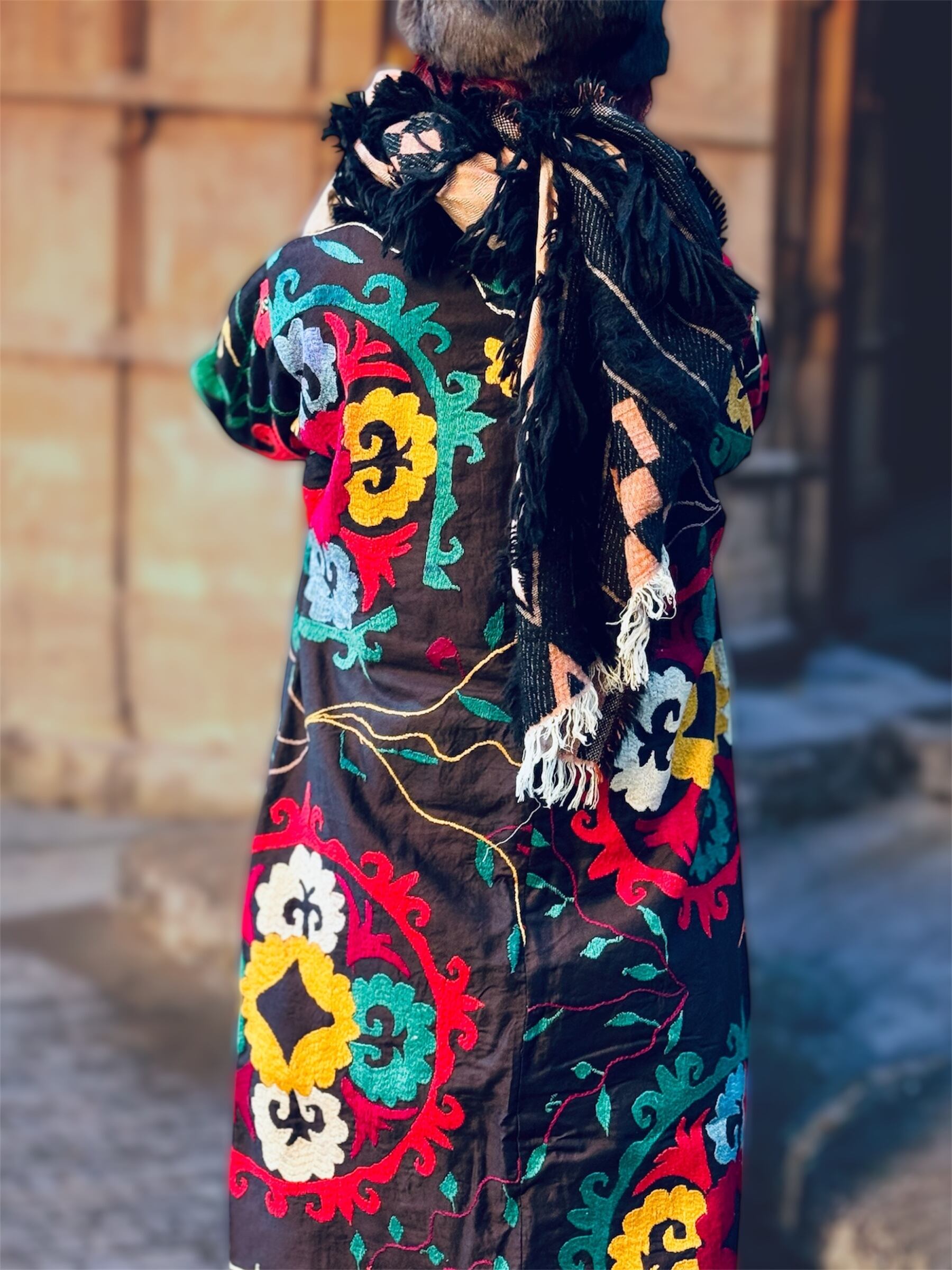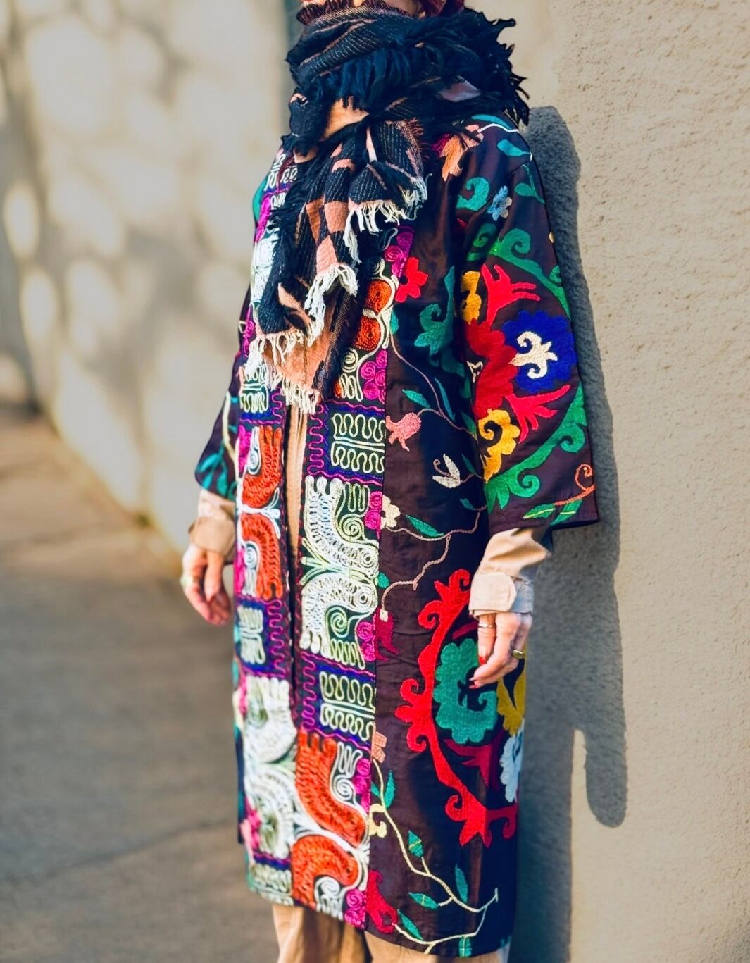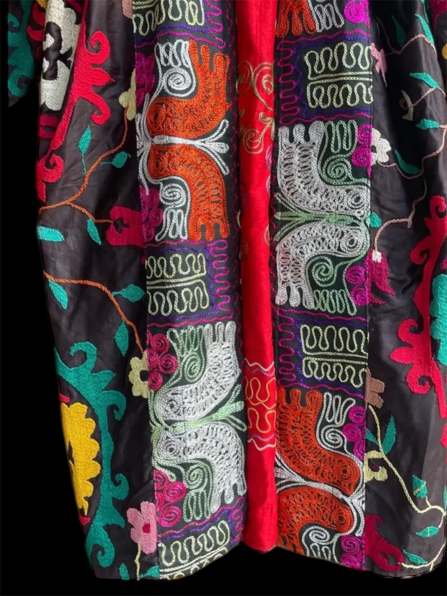 ベースのダーク カラーに刺繍と裏地の鮮やかさが別格なウズベク ヴィンテージの感性をとても感じる一着。