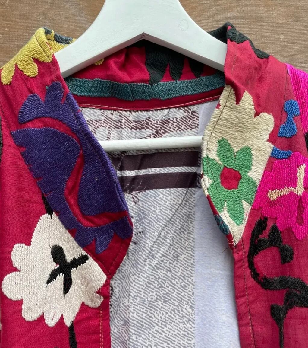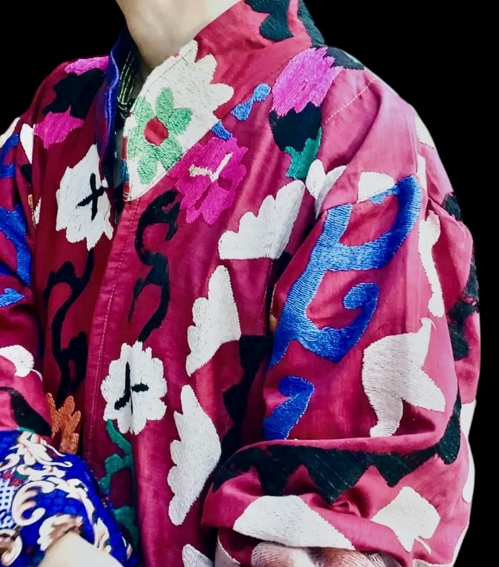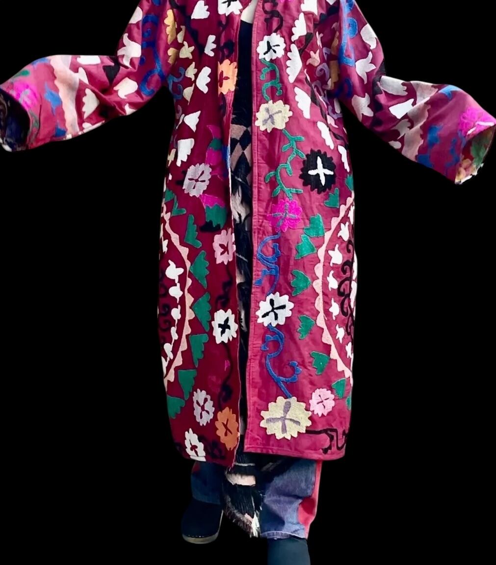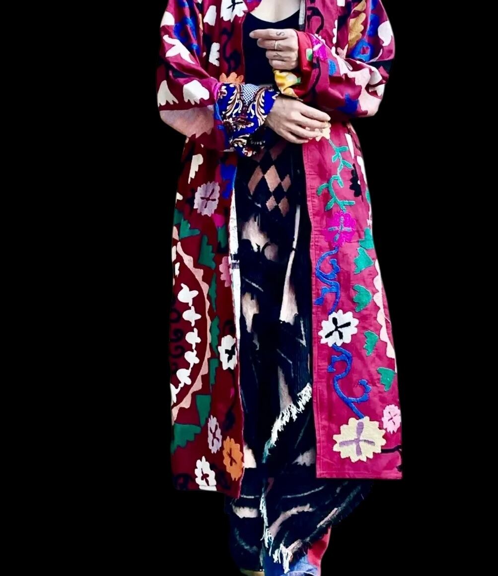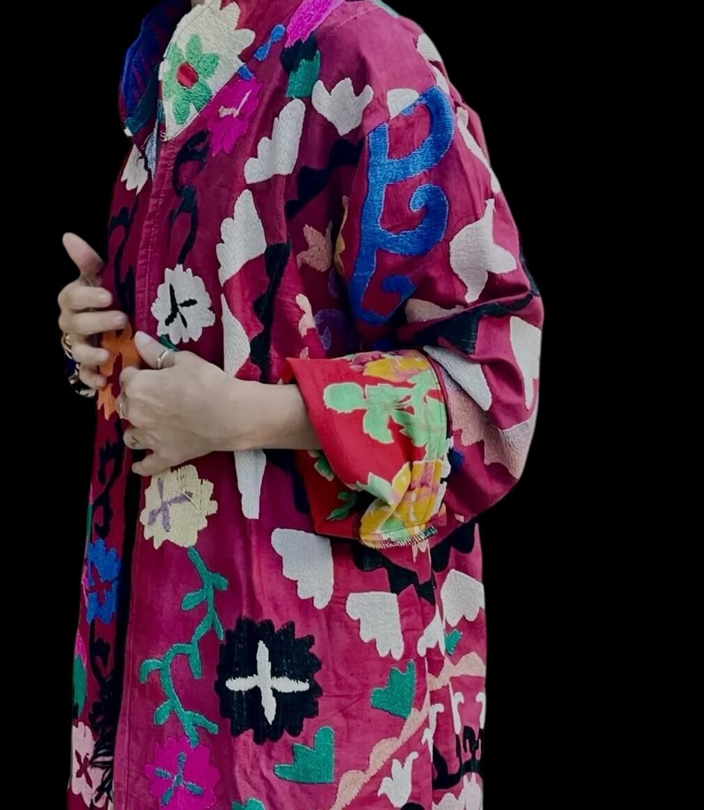 ウズベク ヴィンテージ ハンドメイド スザニ刺繍 ローブ _ ローズ ピンク