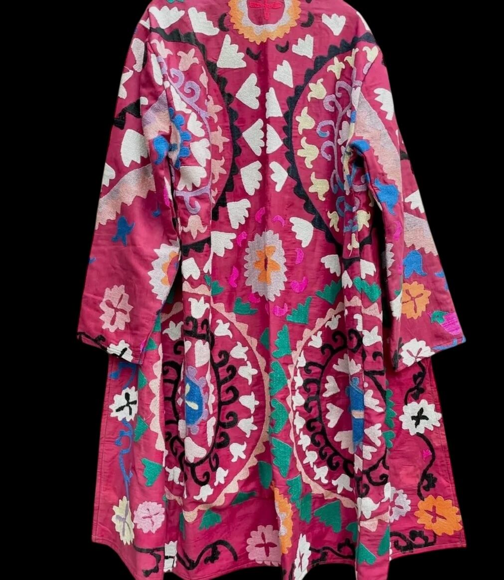 Uzbek vintage handmade embroidery SUZANI robe _ Rose pink