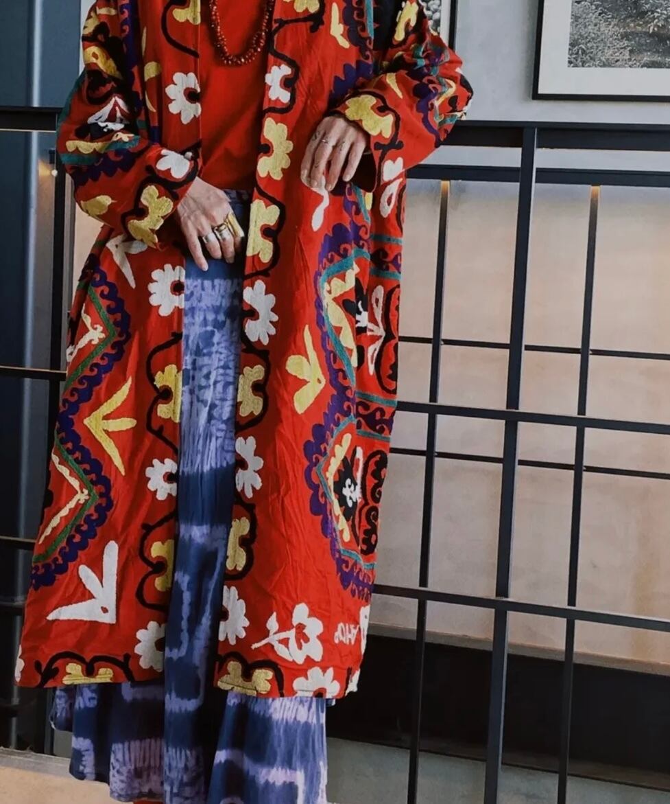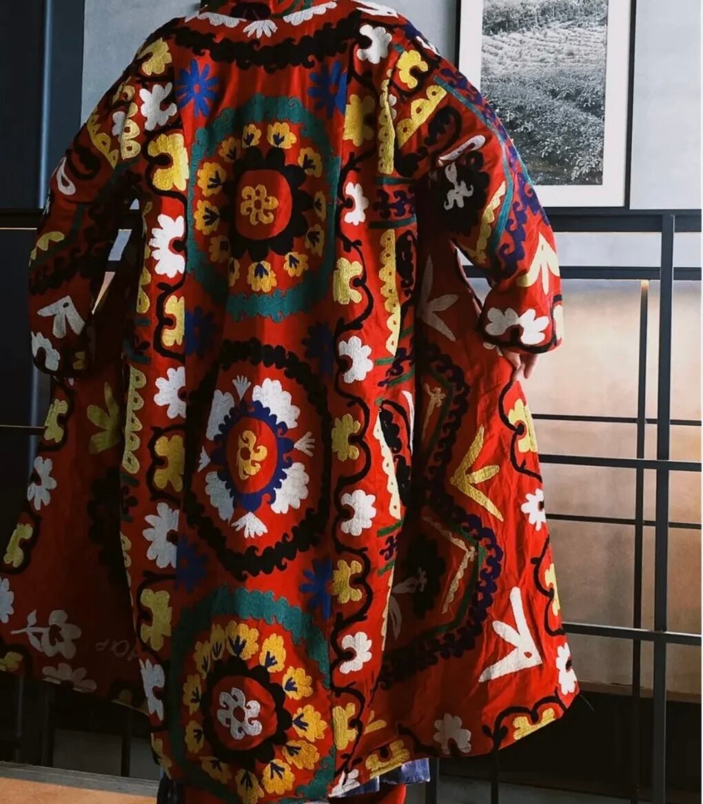 ウズベク ヴィンテージ ハンドメイド スザニ刺繍 ローブ _ ダーク オレンジ