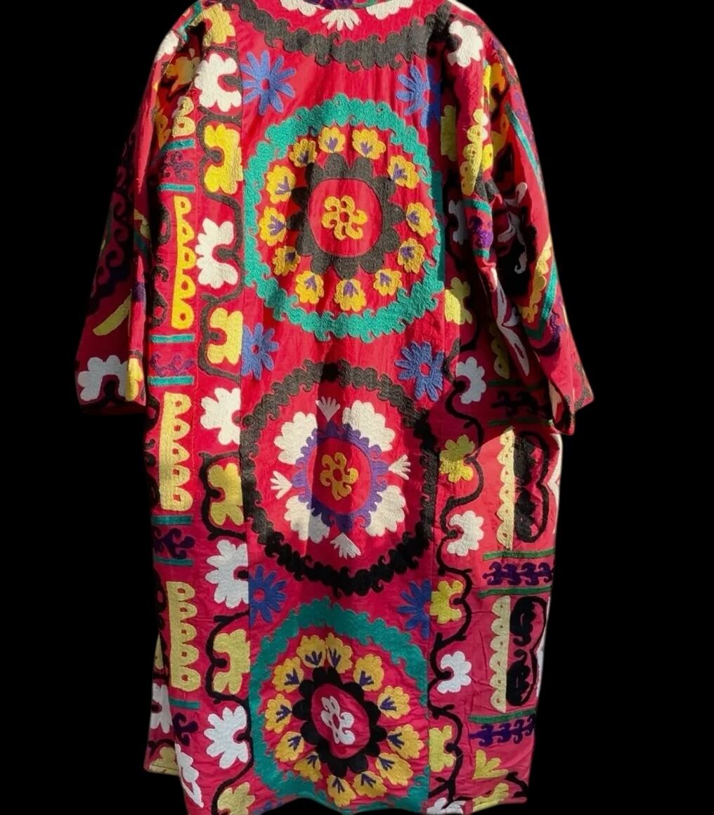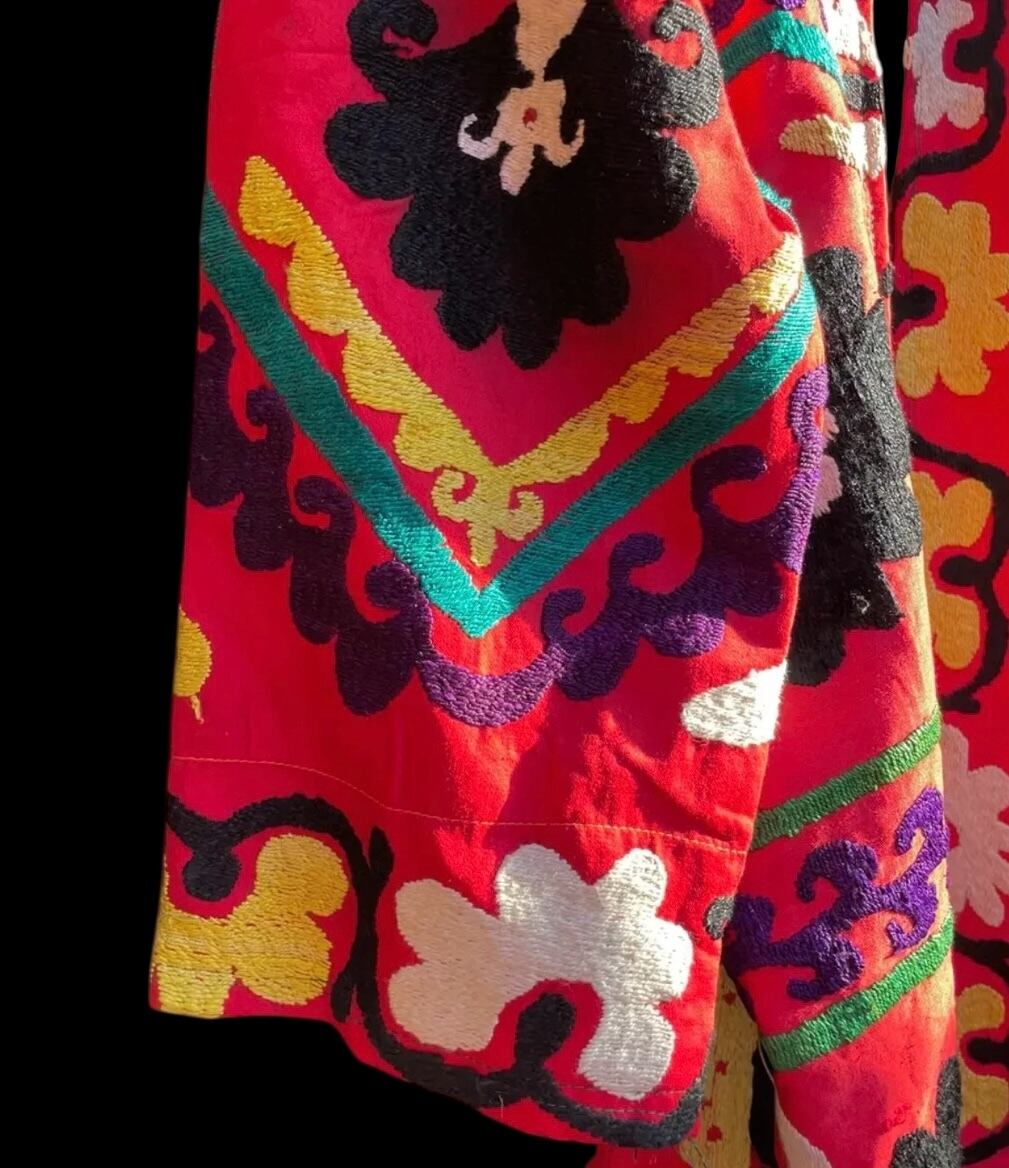 Uzbek vintage handmade embroidery SUZANI robe _ Dark Orange