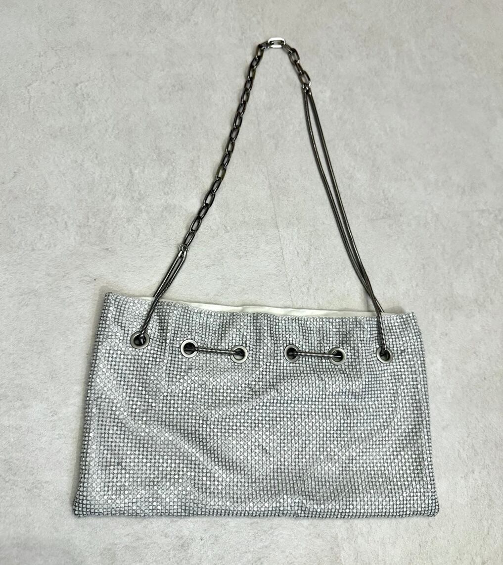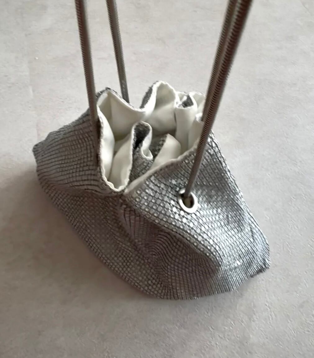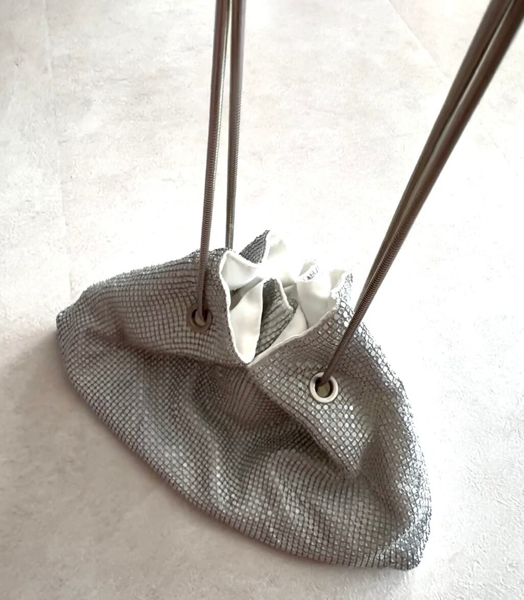 ホワイト メタリック 巾着スタイル ショルダー バッグ