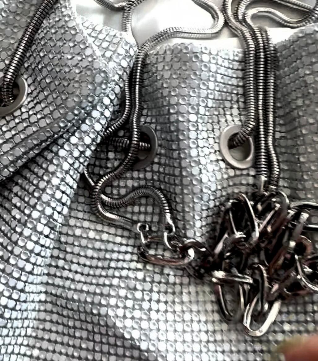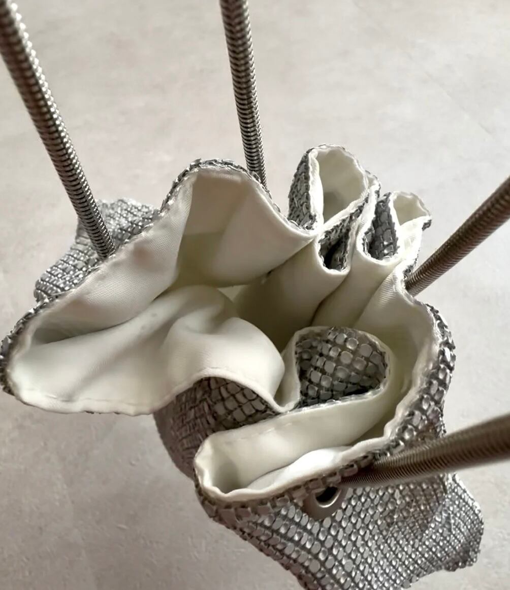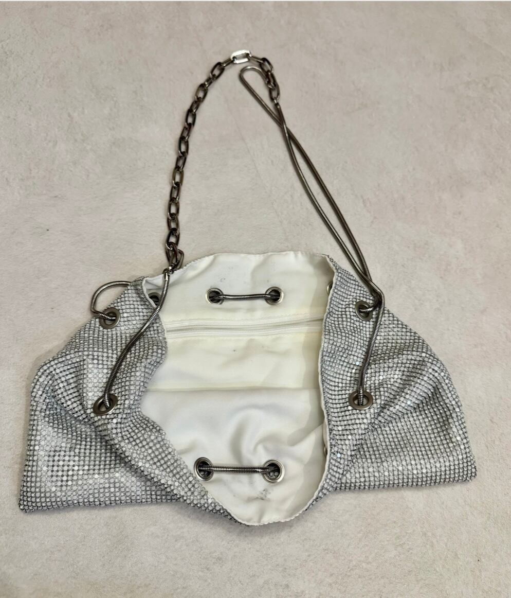 ホワイト メタリック 巾着スタイル ショルダー バッグ