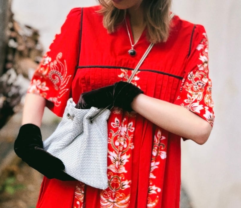 持つと自然にバッグ口が折り畳まれ、巾着型になる優れたデザイン。