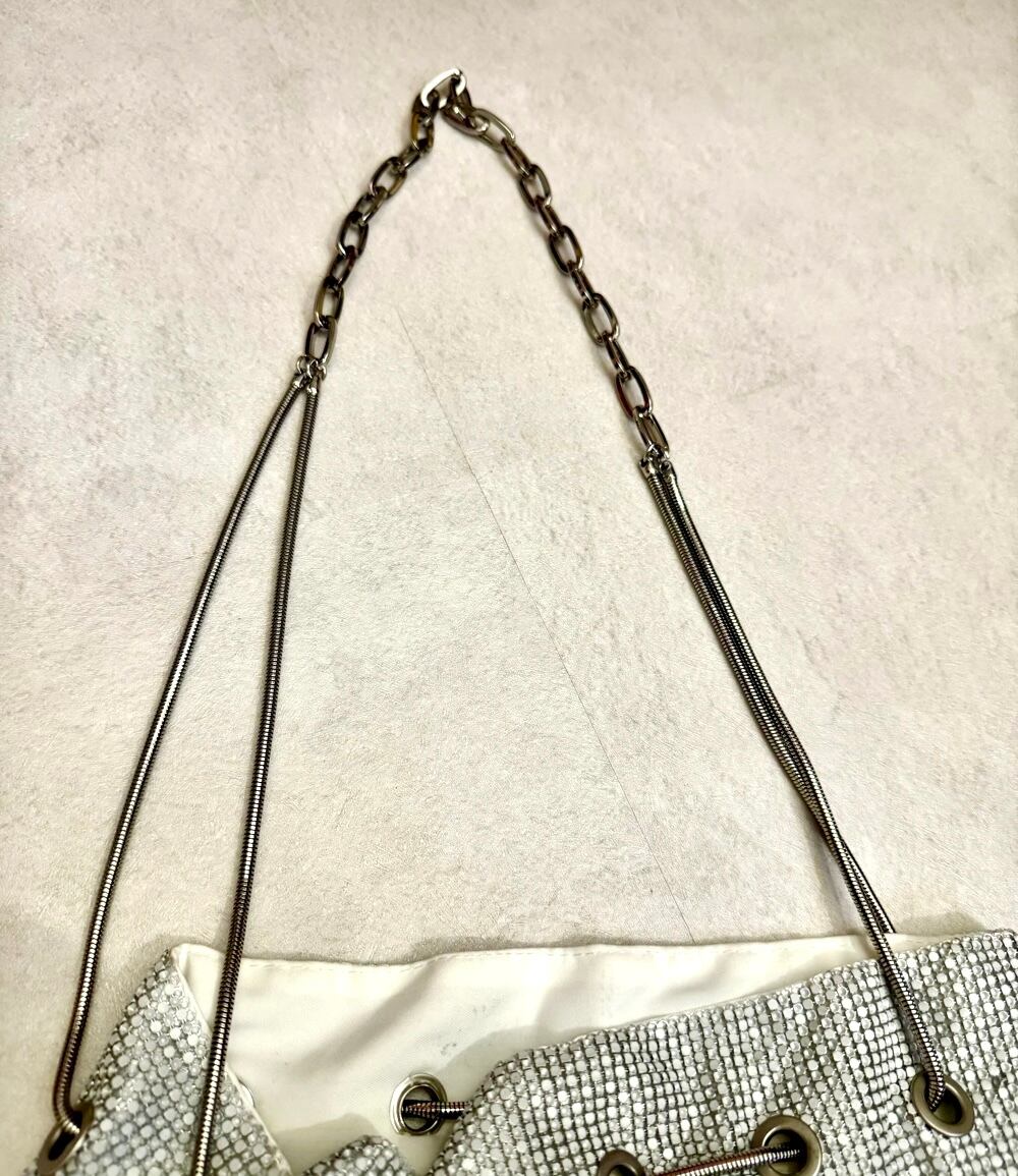 シルバーのスネーク チェーンがマッチしたアクセサリー感覚のショルダー バッグです。