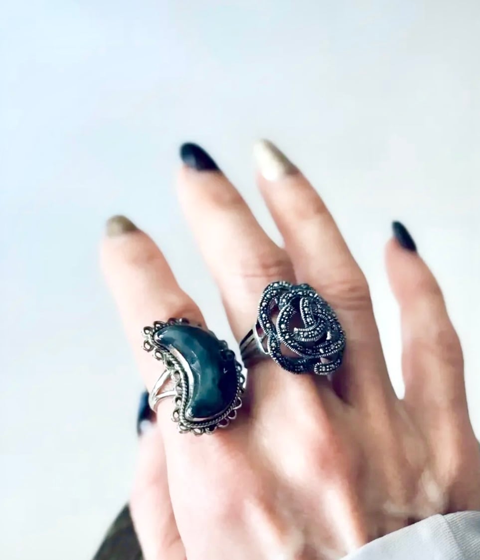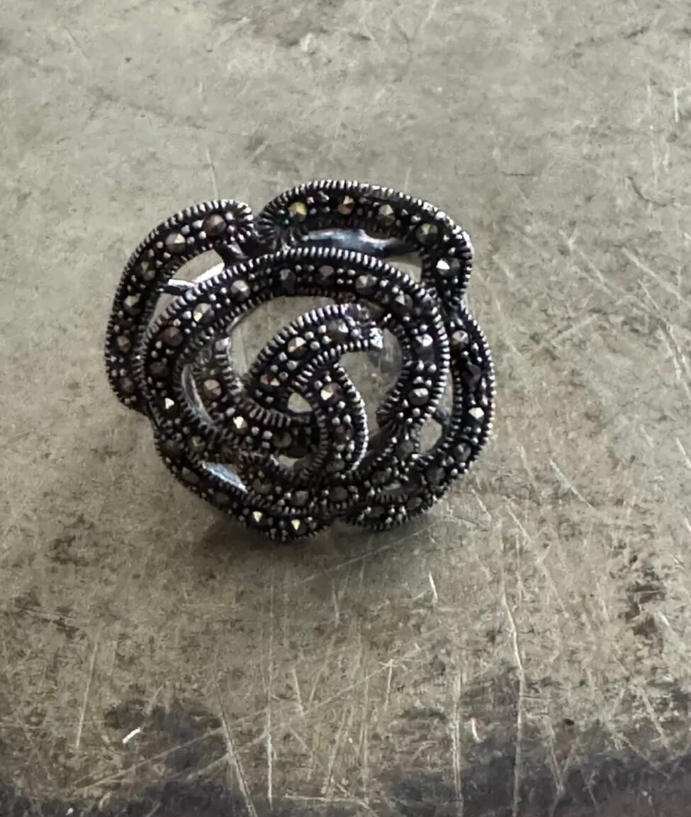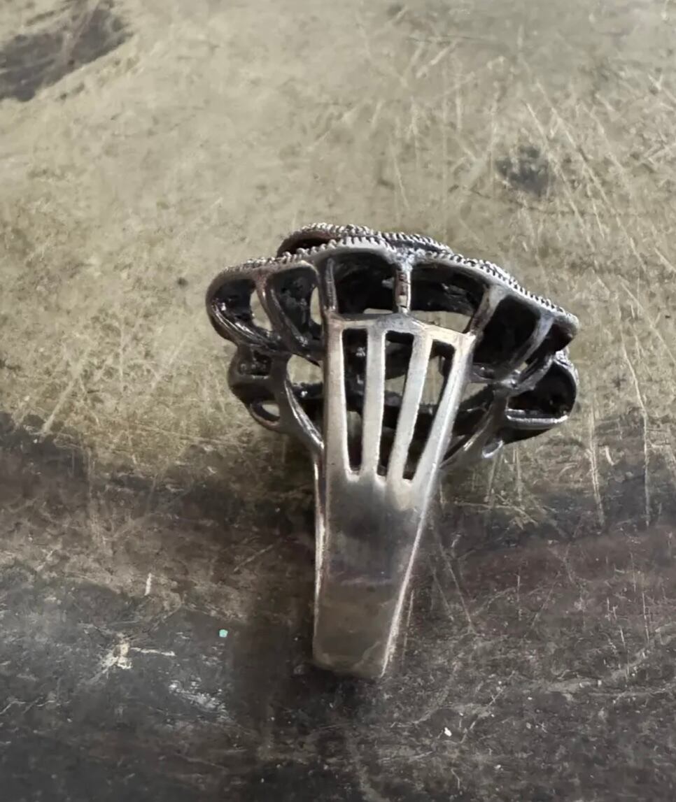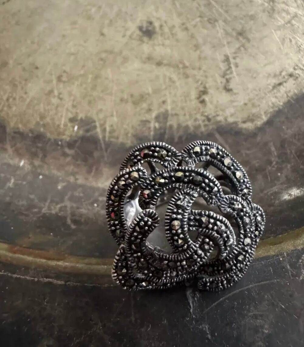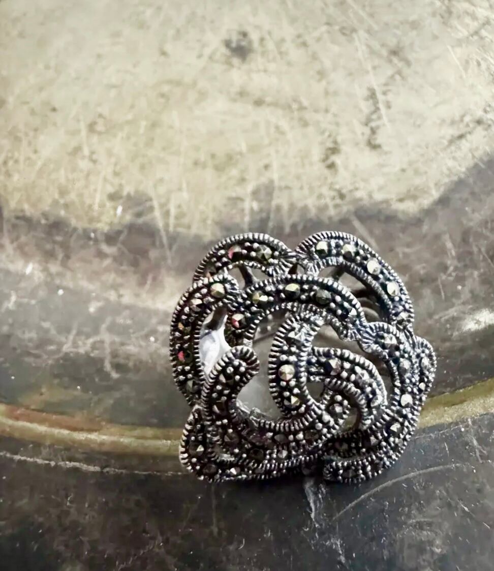 ユーロ ヴィンテージ マーカサイト × スターリング 925シルバー ビッグ フラワー リング