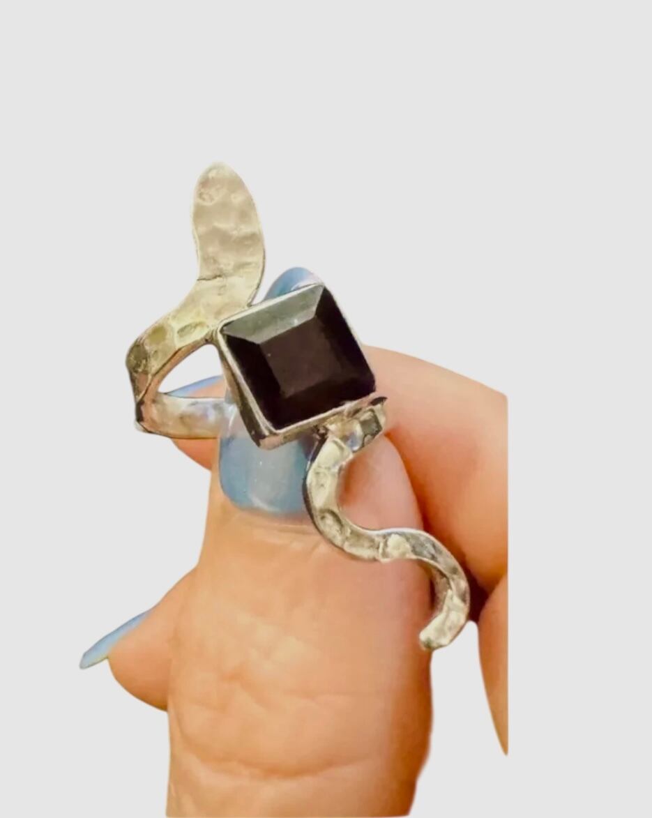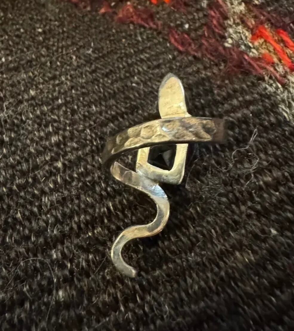 vintage 925silver × Red GARNET Snake ring