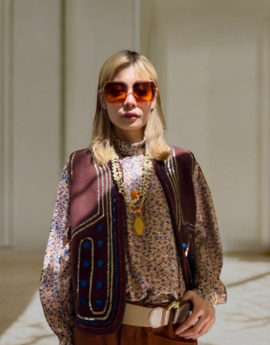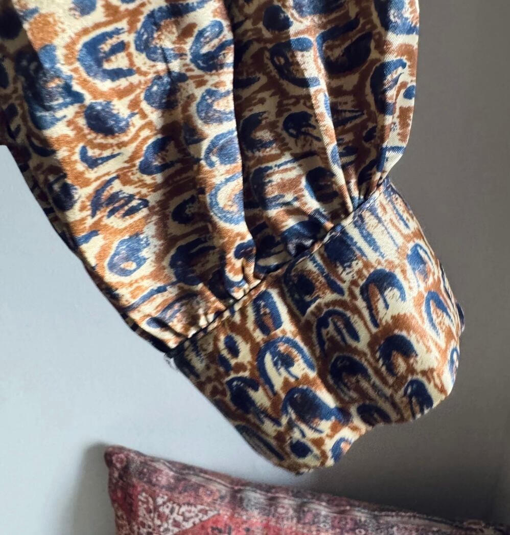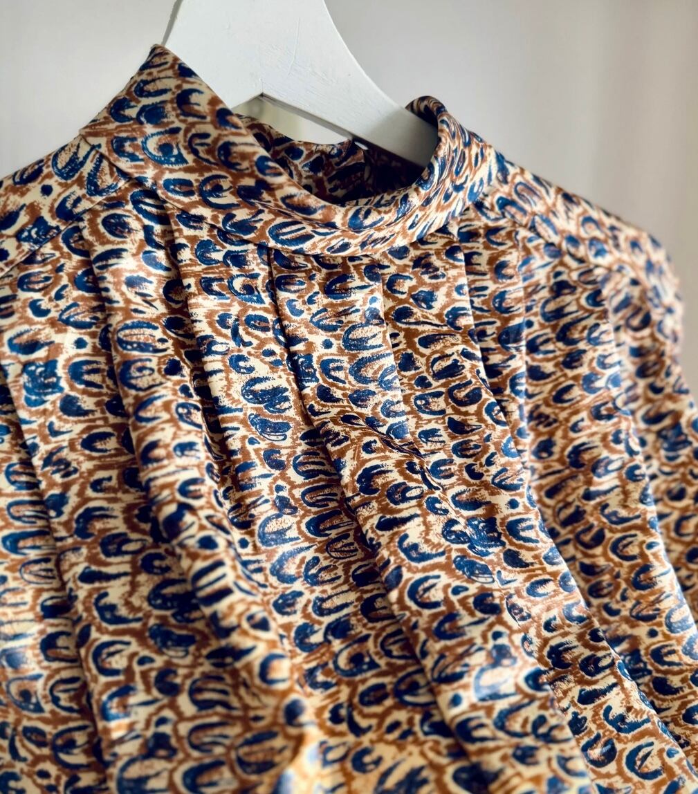 UK ヴィンテージ ハンドメイド ペイント プリント ロールネック ブラウス