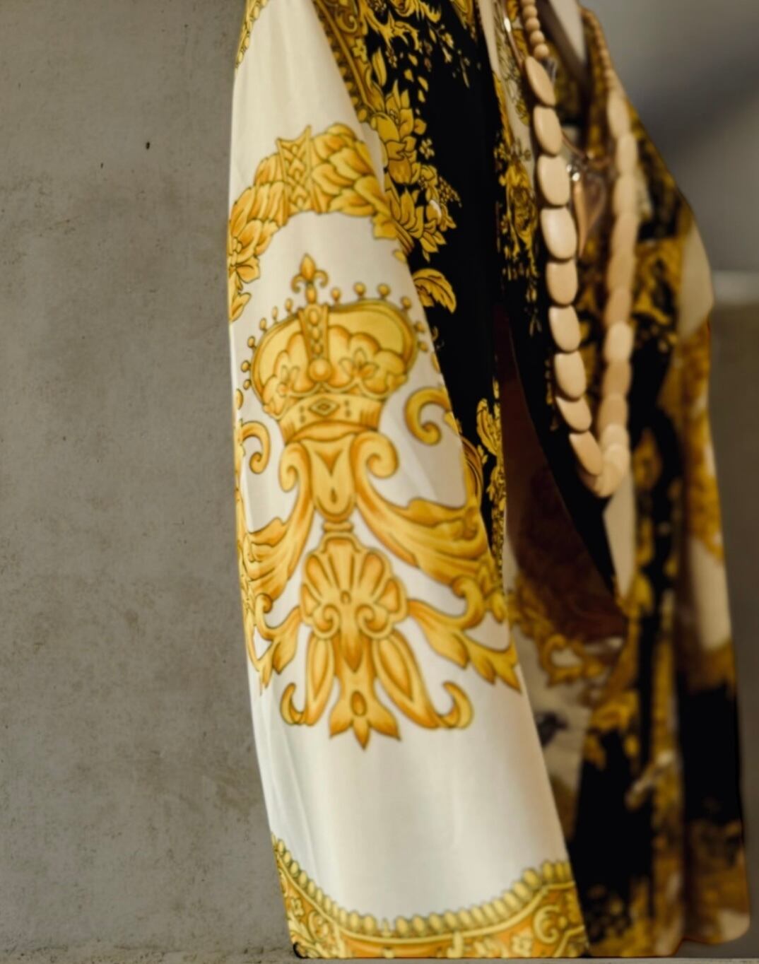 などと呼ばれるベルサーチを彷彿とさせる 豪華なバロック プリント ジャケット。
