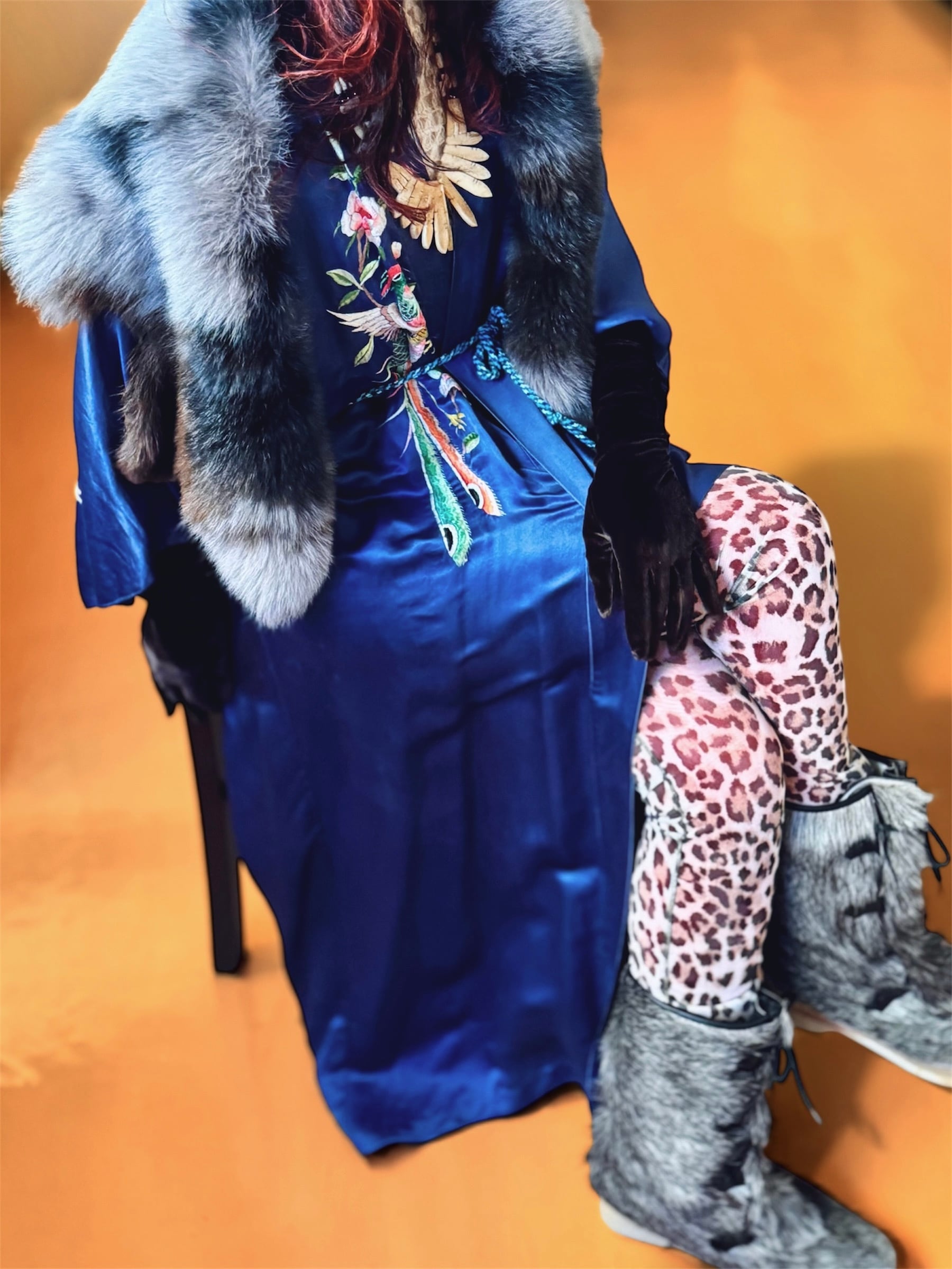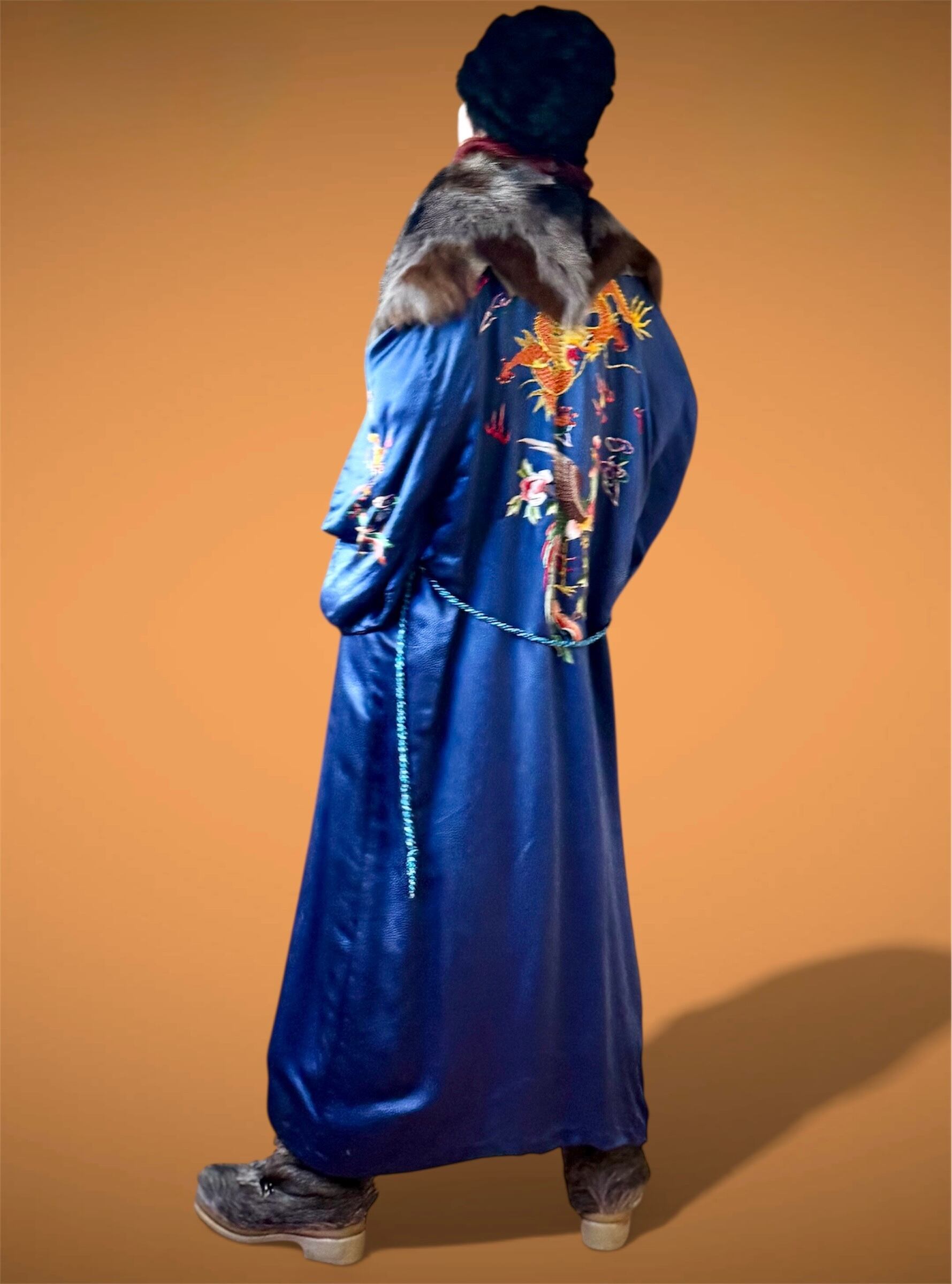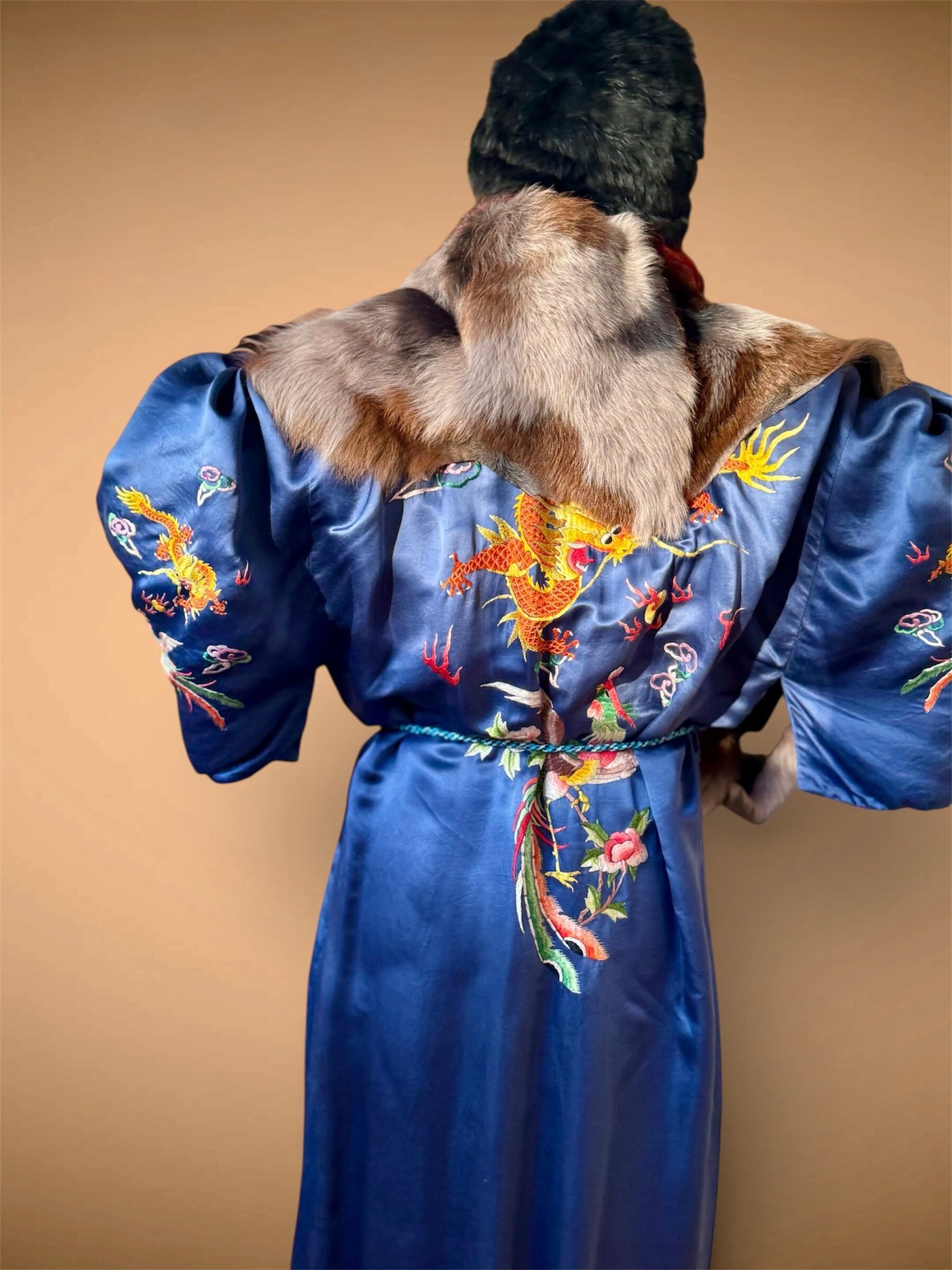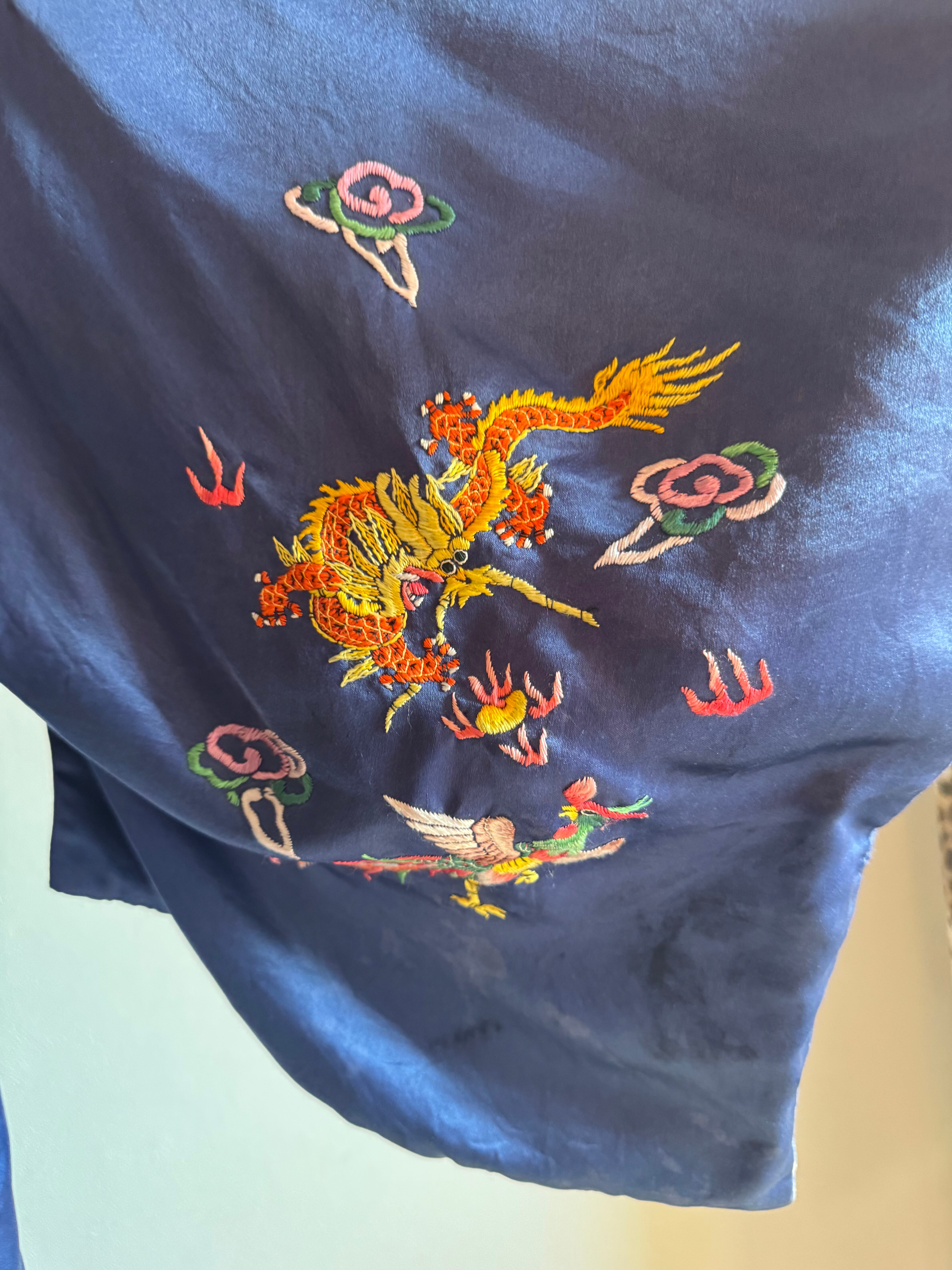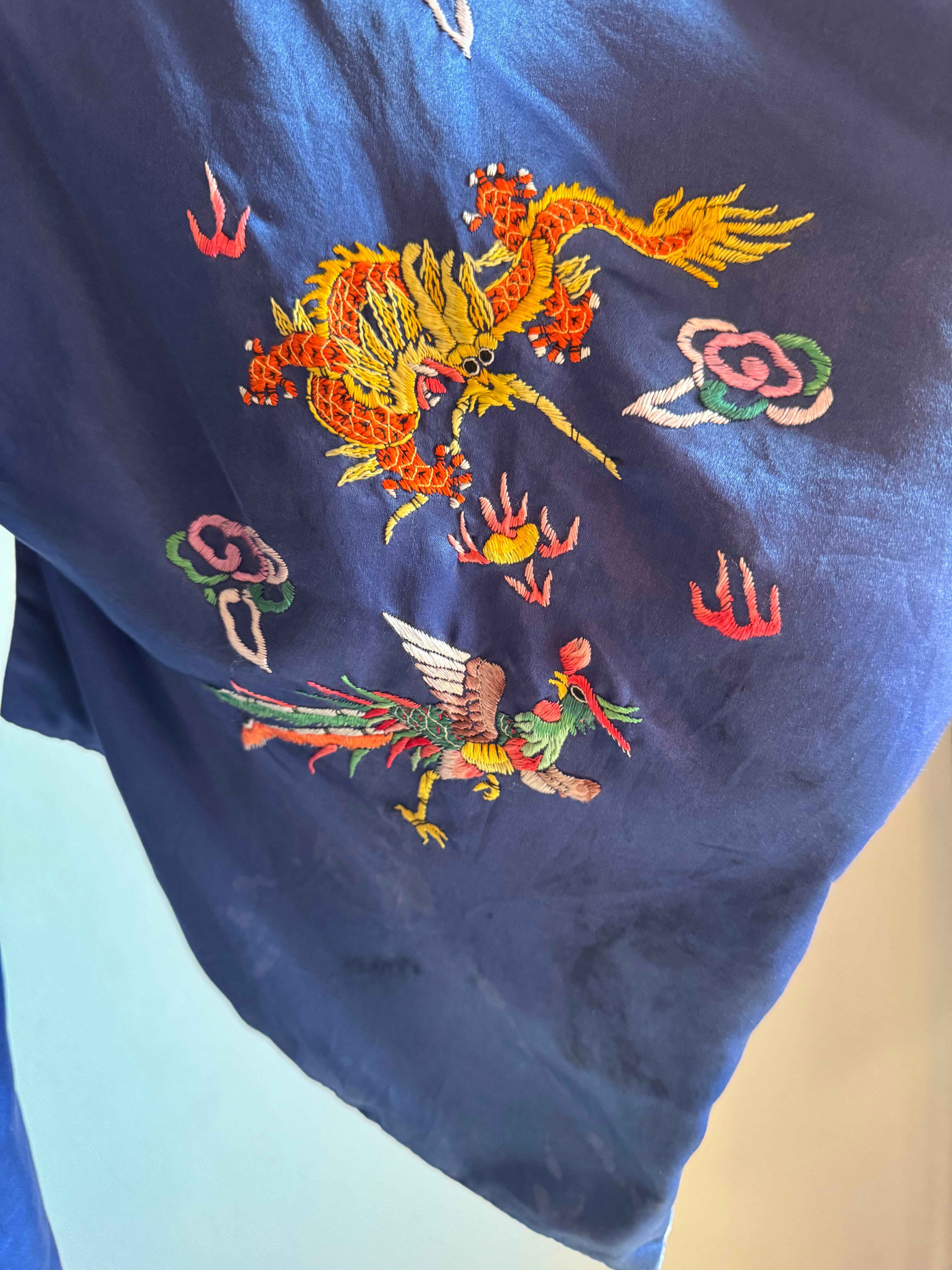 1940s ヴィンテージ シルク GOLDEN BEE ドラゴン & フェニックス ロング ガウン