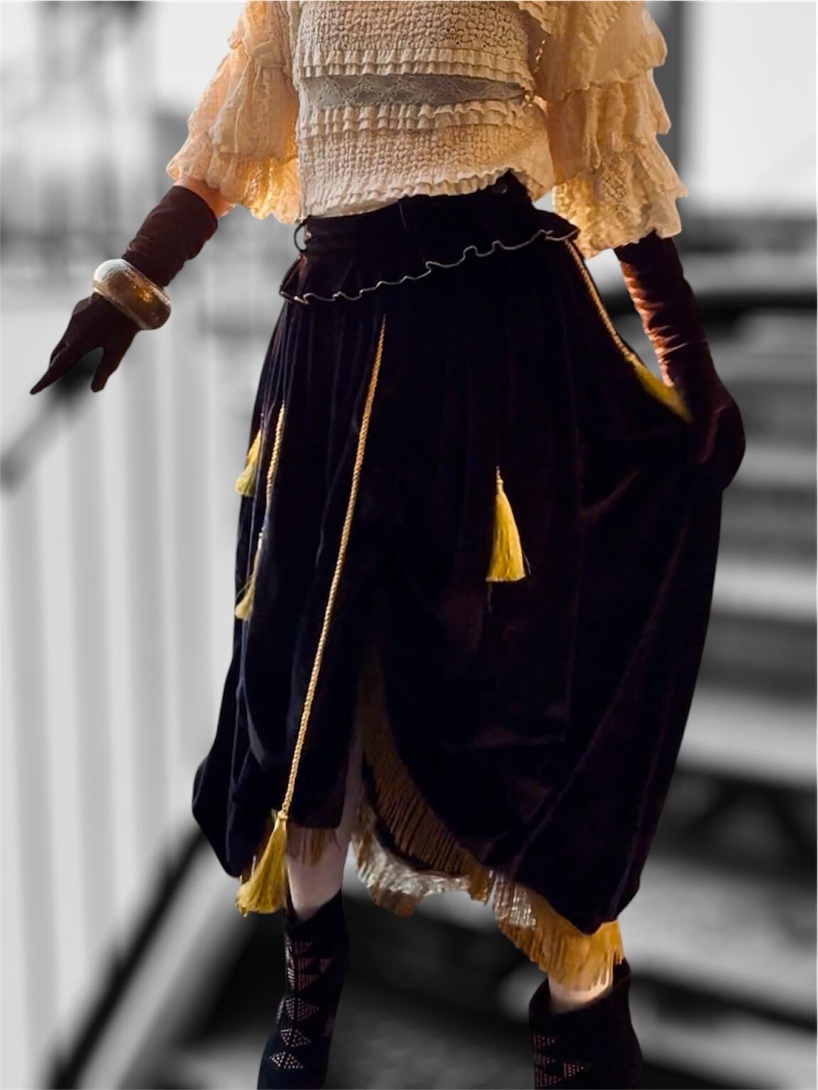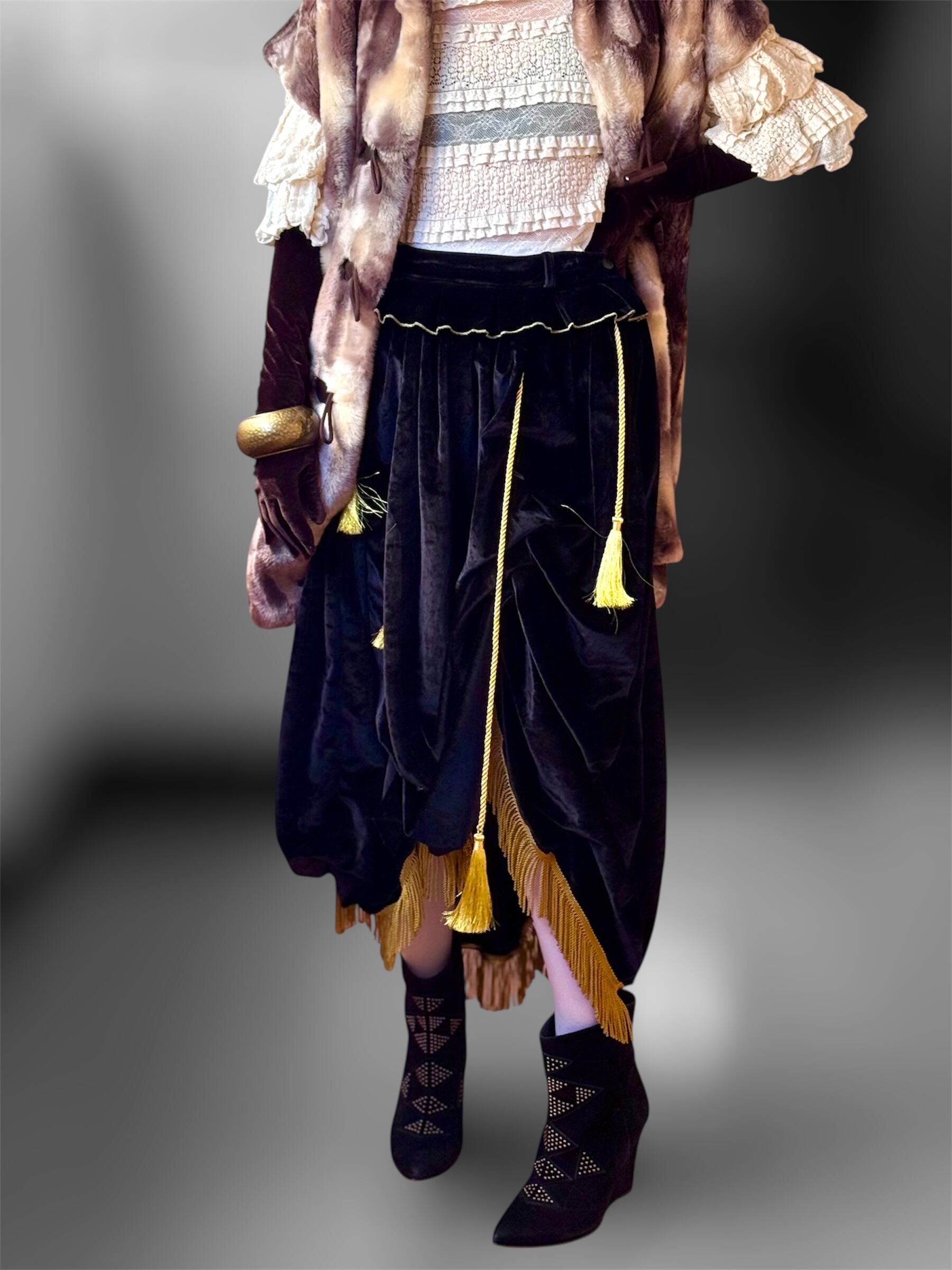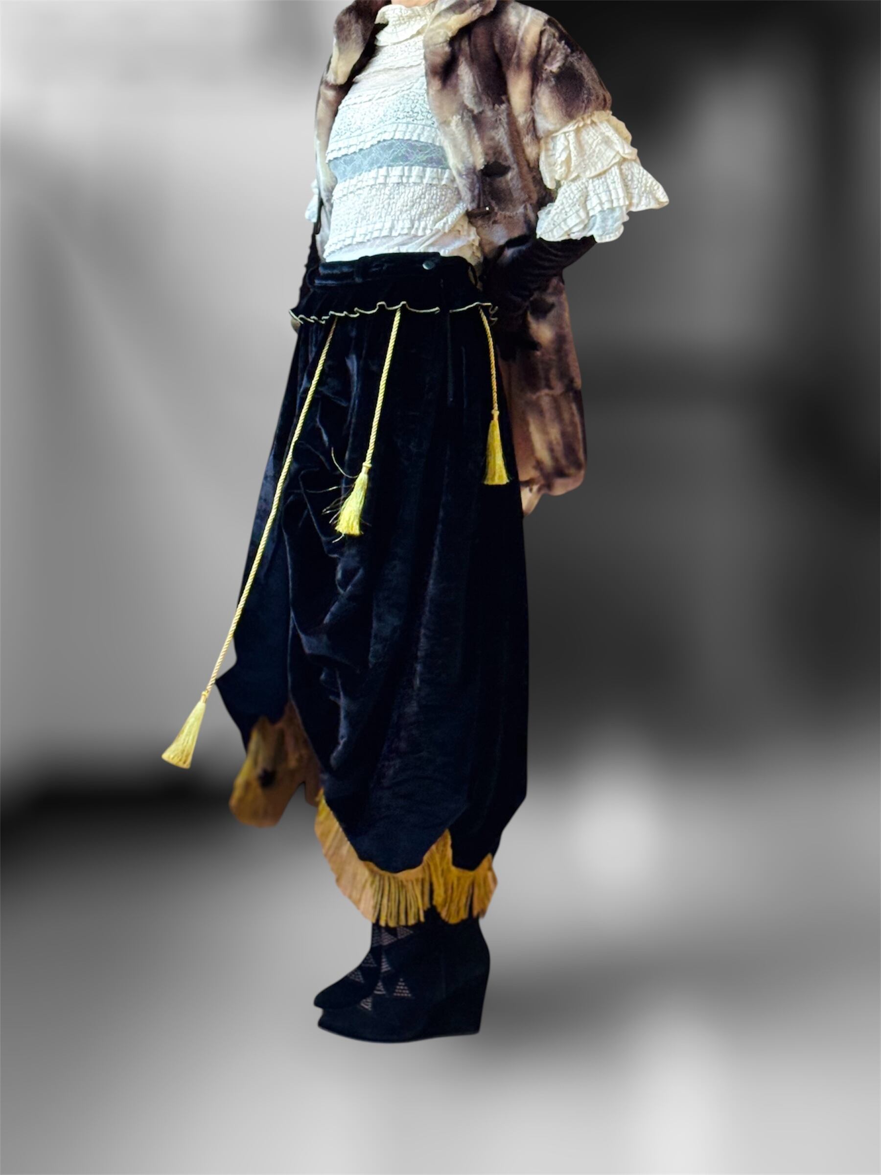 ベルベット アシンメトリー タッセル ギミック スカート