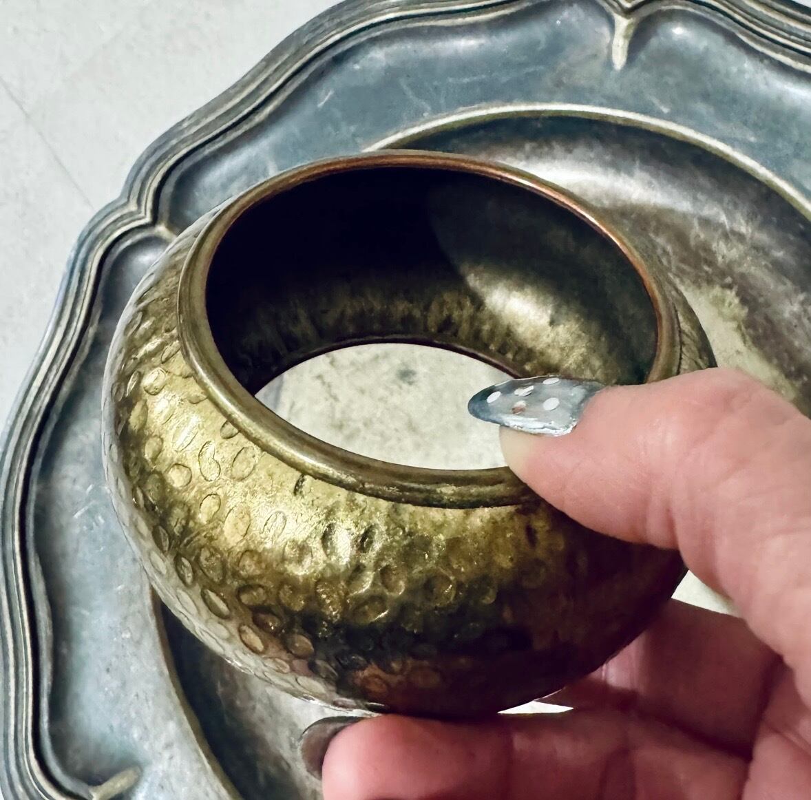 槌目加工の古き良き味のあるドーム型のチャンキー バングルです。