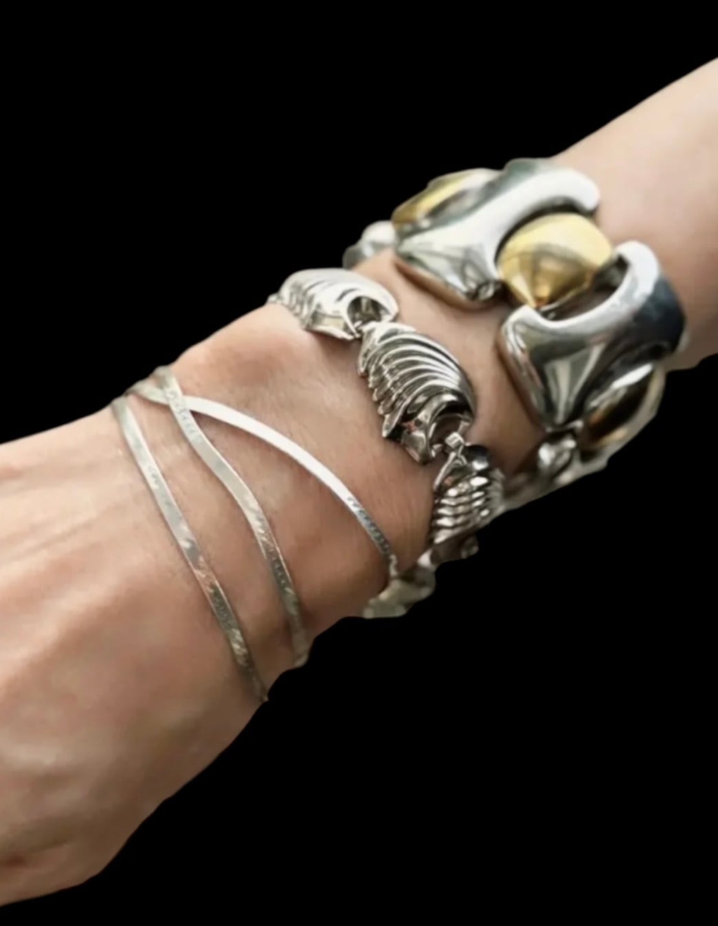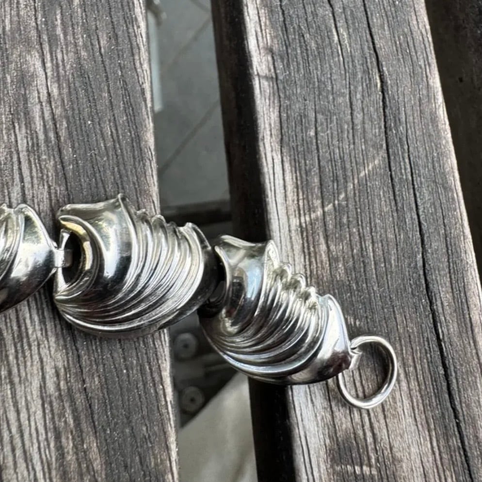 シェル デザインで立体感のあるパーツが連なったデザイン性のあるブレスレットです。