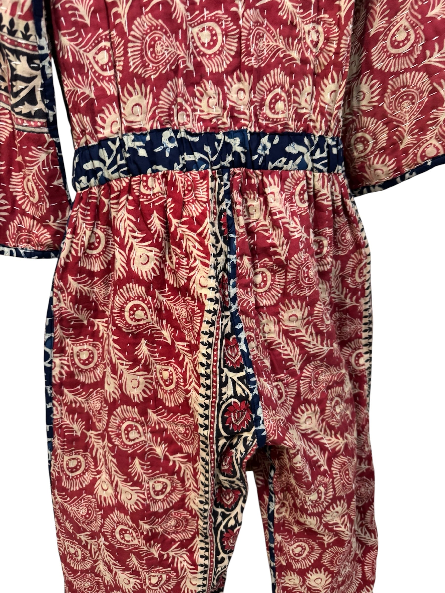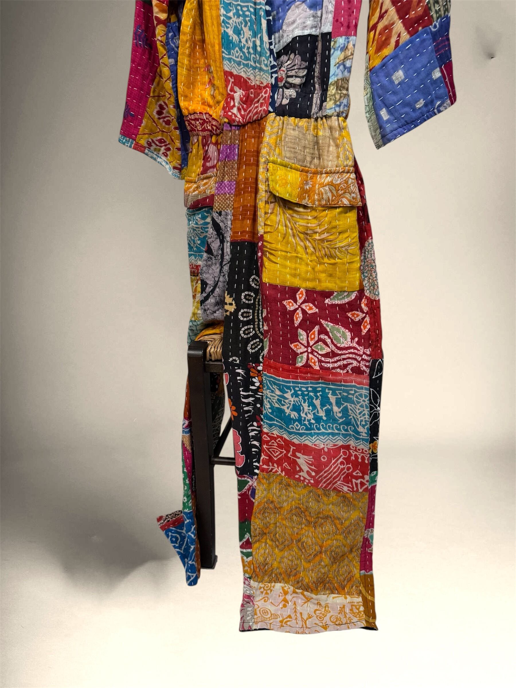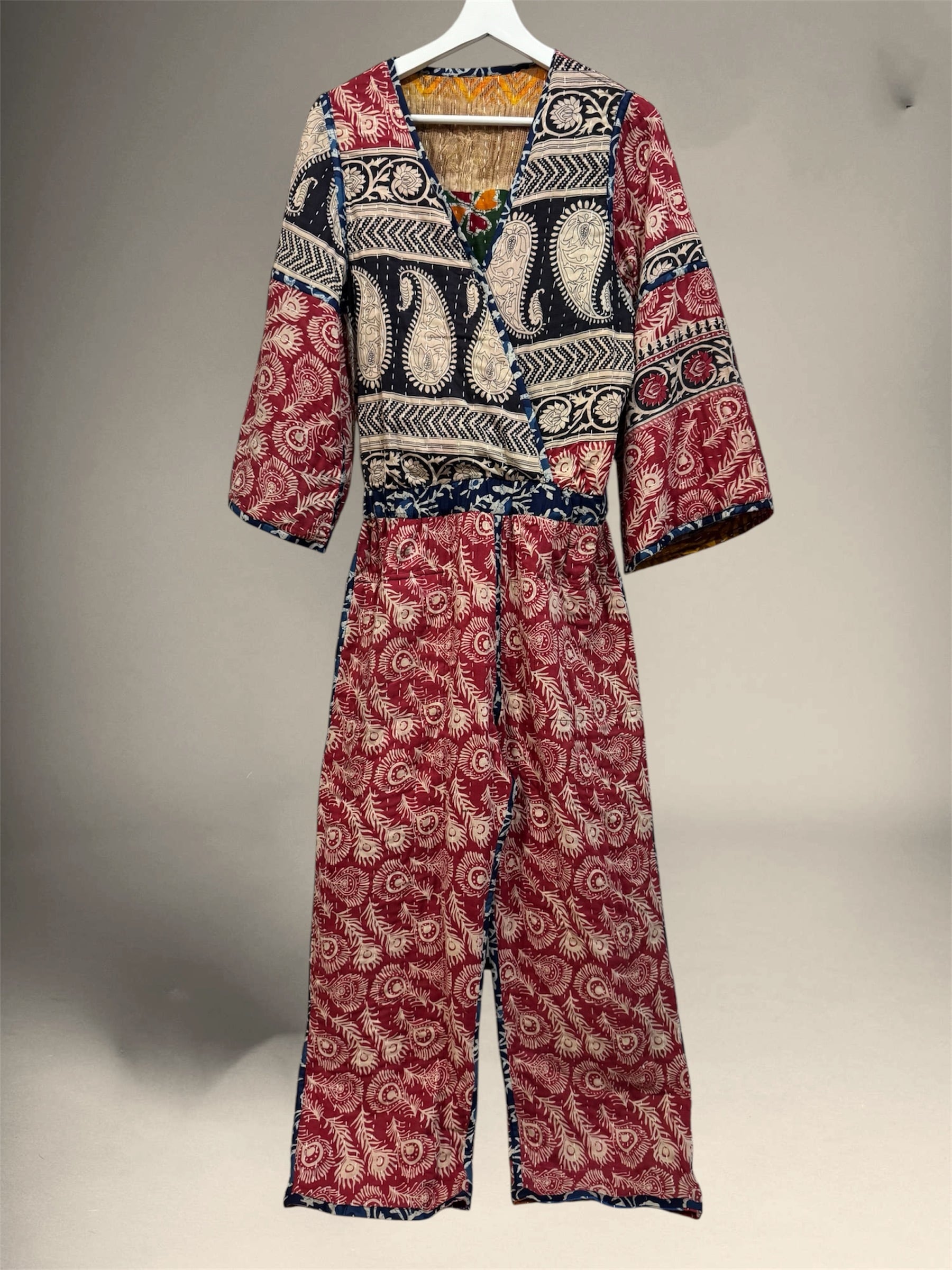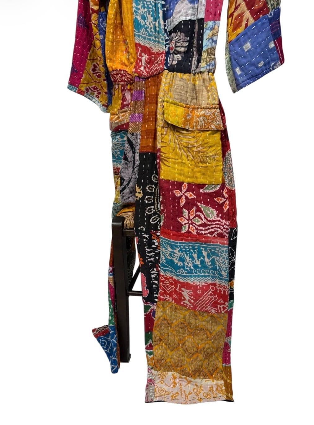 India Old cotton patchwork Kantha Quilt reversible jumpsuit ①